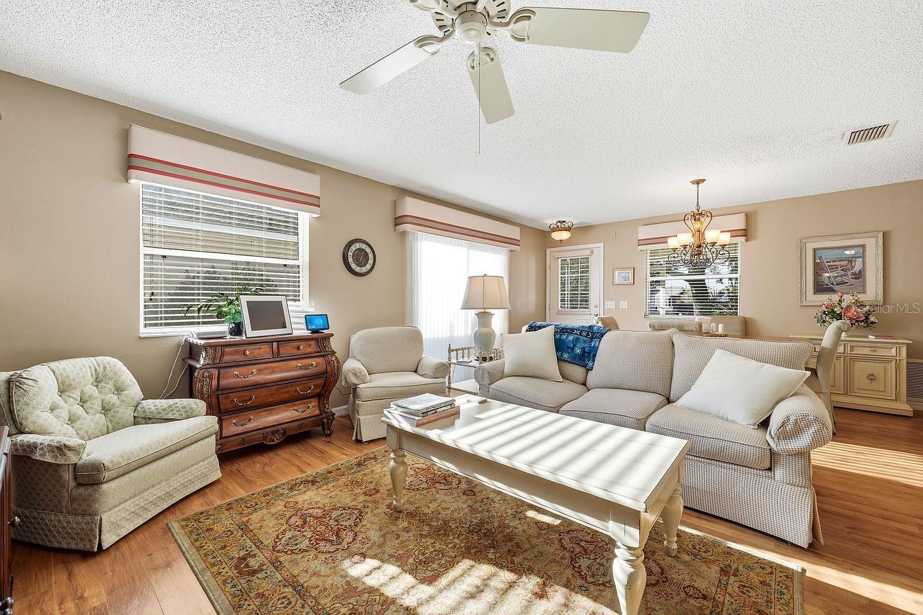 Welcome to this beautifully maintained Colony Villa in the desirable Village of Duval, ideally situated between 466A and 466 and just minutes from the neighborhood pool, Seabreeze and Duval Recreation Centers. This 2-bedroom, 2-bath home offers an open floor plan with tile flooring throughout for easy maintenance. The kitchen and bathrooms feature granite countertops. Enjoy outdoor living on the screened patio and appreciate the privacy of a homesite located at the end of the street. Schedule your showing today.