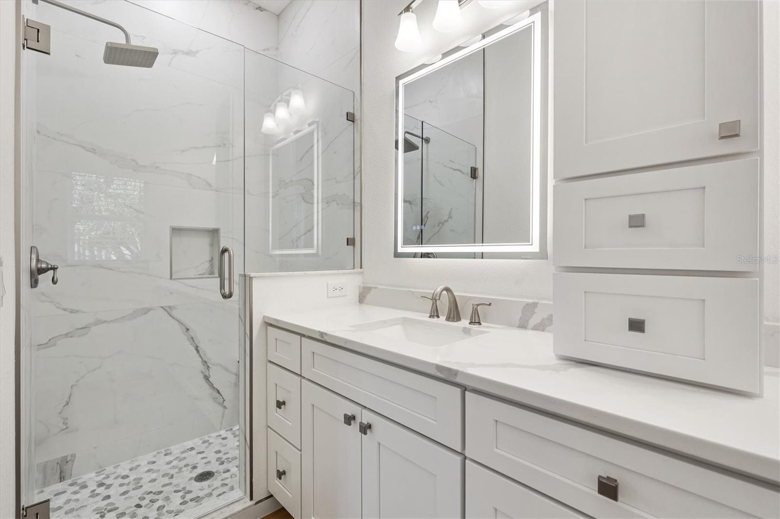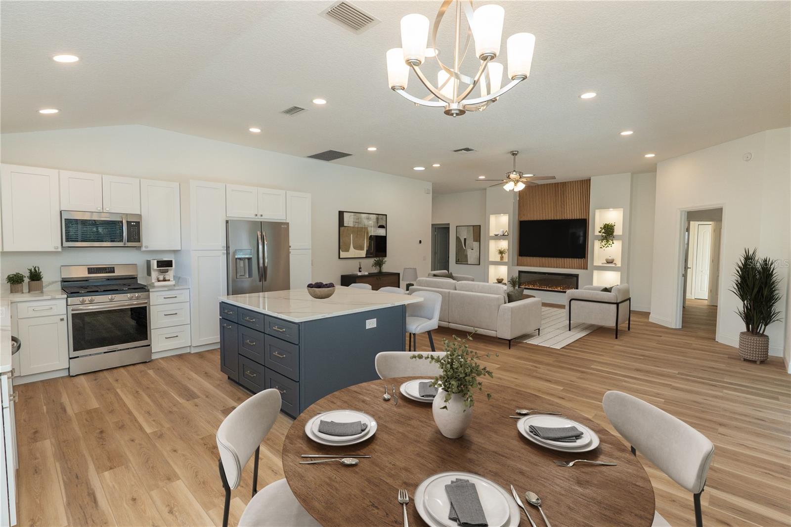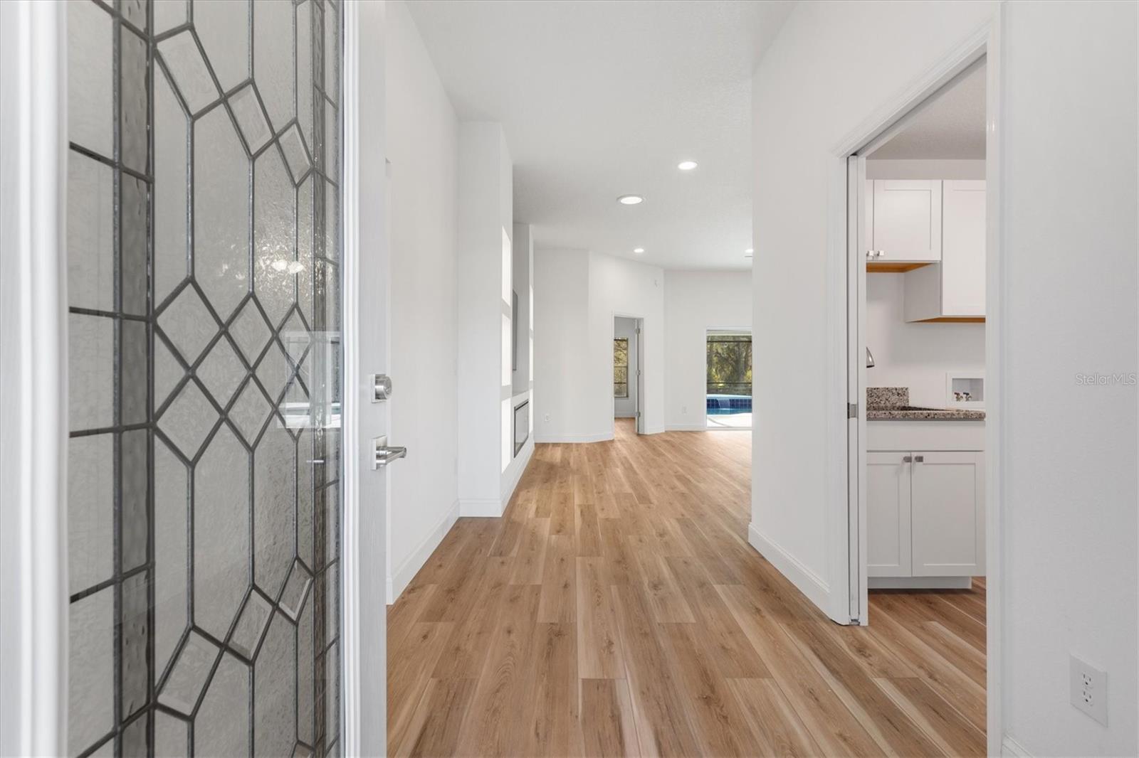 One or more photo(s) has been virtually staged. I am on a quiet cul-de-sac, and I’ve had a COMPLETE TRANSFORMATION, inside and out, and I honestly feel brand new, plus I come with NO BOND and a PRIVATE BACKYARD featuring a GORGEOUS RESURFACED POOL. Step through my LEADED GLASS FRONT ENTRY, and you’ll immediately notice the wide open feel. My LVP FLOORING runs seamlessly throughout, NO CARPET, NO PROJECTS, NO HONEY-DO LIST, and NO POPCORN CEILING. My kitchen was rebuilt from scratch with NEW CABINETS featuring SOFT-CLOSURE drawers and doors, upgraded QUARTZ COUNTERTOPS, and a full suite of brand new STAINLESS STEEL APPLIANCES. I’m ready for dinner parties, holiday gatherings, or just your morning coffee without a single update needed. Both bathrooms were completely renovated with a NEW SHOWER, NEW VANITIES, NEW TOILETS, and NEW LIGHT FIXTURES with LED lighting, clean, bright, and modern because everything is new. Don’t miss my CUSTOM ENTERTAINMENT CENTER, and yes, the TV and FIREPLACE STAY. Did you see my 5 1/4 inch BASEBOARDS? I’m not just pretty, I’m practical. My ROOF 2020, HWH 2021, and HVAC 2025. Translation: you get the upgrades without the surprise expenses. Now let’s go outside, because this is where I really show off. My POOL has been resurfaced and sparkles again, surrounded by a large BIRDCAGE so you can enjoy Florida living without the Florida bugs. The backyard opens to a peaceful PARK-LIKE SETTING with POLO GROUNDS behind me, which means NO REAR NEIGHBORS and real privacy. My PIE-SHAPED LOT gives you extra breathing room and the UPGRADED LANDSCAPING finishes the look. I even dressed up for you with FRESH EXTERIOR PAINT, a PAINTED DRIVEWAY, and an OVERSIZED 2 CAR GARAGE with EPOXY FLOORING that looks as clean as the inside of the home. I’m not a fixer-upper and not a someday project. I’m the home you move into and start living your Florida life right away. All I need now… is my next owner.