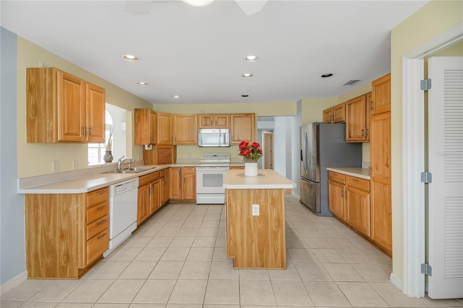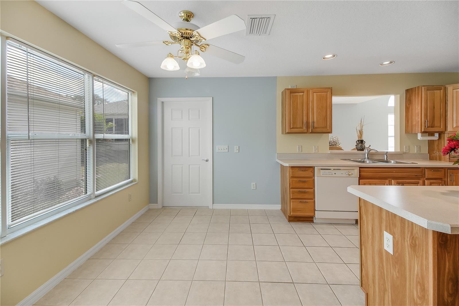 Lovely 3/2/2 Oleander Designer Model Home in the desirable Village of Woodbury! This home offers soaring ceilings, freshly painted interior and tons of natural light while boasting a generous 1640 sq ft heated. Peace of mind awaits as the following have been replaced: New Roof (04/2020), New HVAC (09/2020), tankless water heater and Solar Panels (around 2021-paid in full)! No Carpet here, just lovely laminate and tile flooring! Large Kitchen with pullouts and a convenient eat-in kitchen nook and for more formal dining, the separate dining room awaits. The primary bedroom has a very large walk in closet while the en-suite features dual sinks and a large walk in shower with a seat. The two guest bedrooms are a good size and the guest bathroom is a tub/shower combo. Another BONUS is the Laundry Room is INSIDE plus it has storage! Both the garage floors and the lanai floor have recently been painted. The lanai is quite spacious; its L-shape gives you privacy on one side. This is a BEAUTIFUL home on a quiet street with a lovely setting in the back. GREAT location close to Mulberry Grove shopping, Restaurants, Publix, VA Center, First Responders Recreation and so much more! ALL THIS AND THE CONVENIENCE OF A GOLF CART RIDE TO THE NANCY LOPEZ CHAMPIONSHIP GOLF COURSE, REGIONAL RECREATION CENTER AND MULBERRY PLAZA.