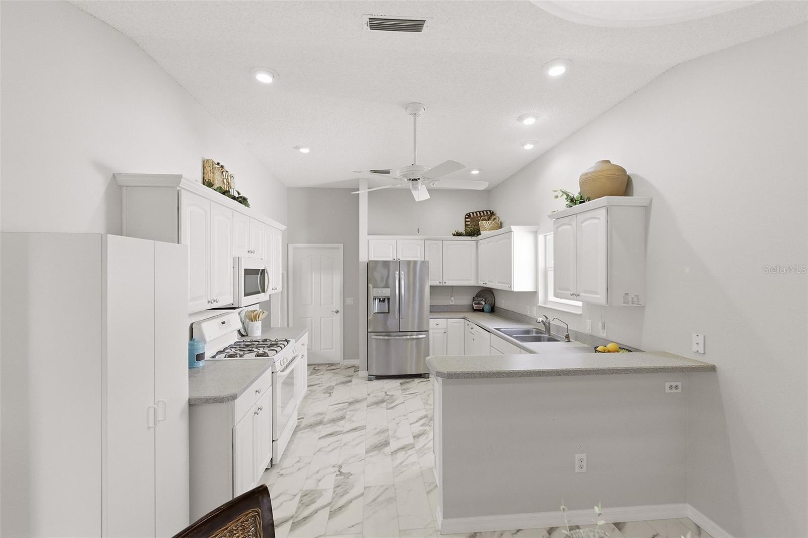 Welcome Home to this pristinely maintained Whispering Pine designer home ideally located in the Village of Tall Trees in The Villages. ROOF 2020. HVAC 2022. WH 2021. Situated on an expansive homesite with attractive landscaping and a welcoming front entry, this property offers both curb appeal and exceptional outdoor living space in one of the most convenient locations in the community. WATCH the VIDEO TOUR by clicking on the Tour Link above. Enjoy !! Step inside to an open and airy interior where volume ceilings and a soft, neutral color palette create a bright and inviting atmosphere. Luxury vinyl plank flooring flows throughout the main living areas and primary suite, adding both style and durability. The spacious living and dining areas connect seamlessly to the kitchen, making the layout ideal for both everyday living and entertaining. The kitchen features crisp white cabinetry, stainless steel appliances, and the added benefit of natural gas service, perfect for those who enjoy cooking on a gas range. Generous counter space and cabinetry provide excellent storage and functionality. The primary bedroom suite is spacious and comfortable, offering a relaxing retreat with continued luxury vinyl plank flooring and abundant natural light. Two additional guest bedrooms provide flexibility for visiting family, hobbies, or a home office, while the guest bathroom is conveniently located nearby. One of the standout features of this home is the exceptional outdoor living space. The oversized lanai creates a true backyard oasis and is equipped with automatic remote-controlled roll-down shades that allow you to adjust privacy and sunlight throughout the day. Here you will find a swim spa and hot tub, perfect for relaxing or entertaining guests year-round. Enjoy the sunset in the front of the home where you'll find an open patio with a lighted seating area, creating the ideal setting for evening gatherings under the Florida sky. Inside the home, automated remote-control sheer shades on the windows allow for additional light control while maintaining an elegant look. For peace of mind, several major updates have already been completed, including a new roof in 2020, water heater replaced in 2021, and HVAC system replaced in 2022. The Village of Tall Trees is known for its beautifully established surroundings and its incredibly convenient location. Residents enjoy quick access to shopping, dining, and everyday conveniences along the 466 corridor, while Lake Sumter Landing Market Square is just minutes away. Spanish Springs and Brownwood Paddock Square are also easily accessible, offering live entertainment, restaurants, boutiques, and the vibrant lifestyle that makes The Villages so special. This beautifully maintained Whispering Pine offers a rare combination of space, updates, outdoor luxury, and an outstanding central location. It is a wonderful opportunity to enjoy the very best of The Villages lifestyle.