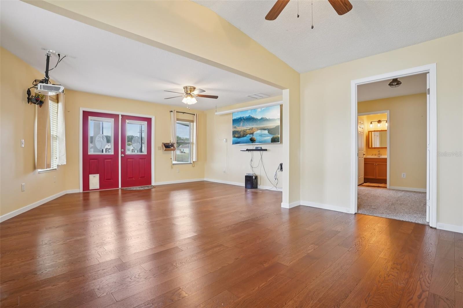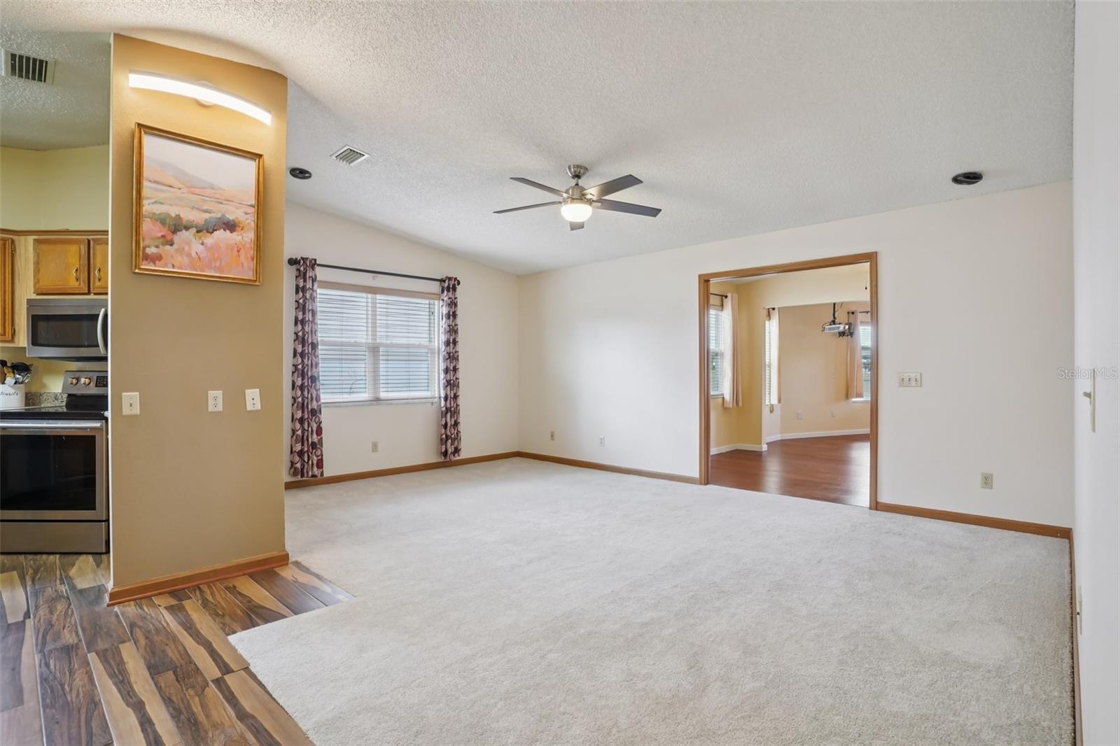 One or more photo(s) has been virtually staged. Welcome to your next chapter in The Villages, where comfort, connection, and carefree living come together in perfect harmony! This 3-bedroom, 3-bath SITE-BUILT HOME with a 2-CAR GARAGE plus a GOLF CART GARAGE offers 1,830 square feet of thoughtfully designed living space made for gathering, relaxing, and enjoying every moment. Renovated with love and intention for multi-generational living, the home features a private third bedroom and bath—ideal for an elderly parent or long-term guest—along with a separate second living space complete with projector and big-screen setup. Movie nights, big games, family celebrations—this flexible bonus area makes every occasion special. Outdoor living shines here! Enjoy **TWO SCREENED-IN LANAIS—one in the front and one in the back—**giving you the best of both worlds. Sip your morning coffee on the front lanai as the neighborhood comes to life, then unwind in the rear lanai overlooking peaceful privacy with no rear neighbors and a tranquil seasonal water view. It’s your own private oasis. The seller is adding even more value with a HOME WARRANTY at closing for peace of mind and a $3,500 FLOORING ALLOWANCE so you can personalize the finishing touches to your style. And when you're ready to explore, enjoy the endless shopping and dining along U.S. Route 441, or take a quick ride to Spanish Springs Town Square, where live music and entertainment light up the square 365 nights a year. Space for everyone. Porches for every season. Close to the action. Privacy, flexibility, and the vibrant Villages lifestyle—all wrapped into one unforgettable home. Schedule your private showing today! No Bond. Roof 2024, Hot Water Heater 2022, HVAC 2017.