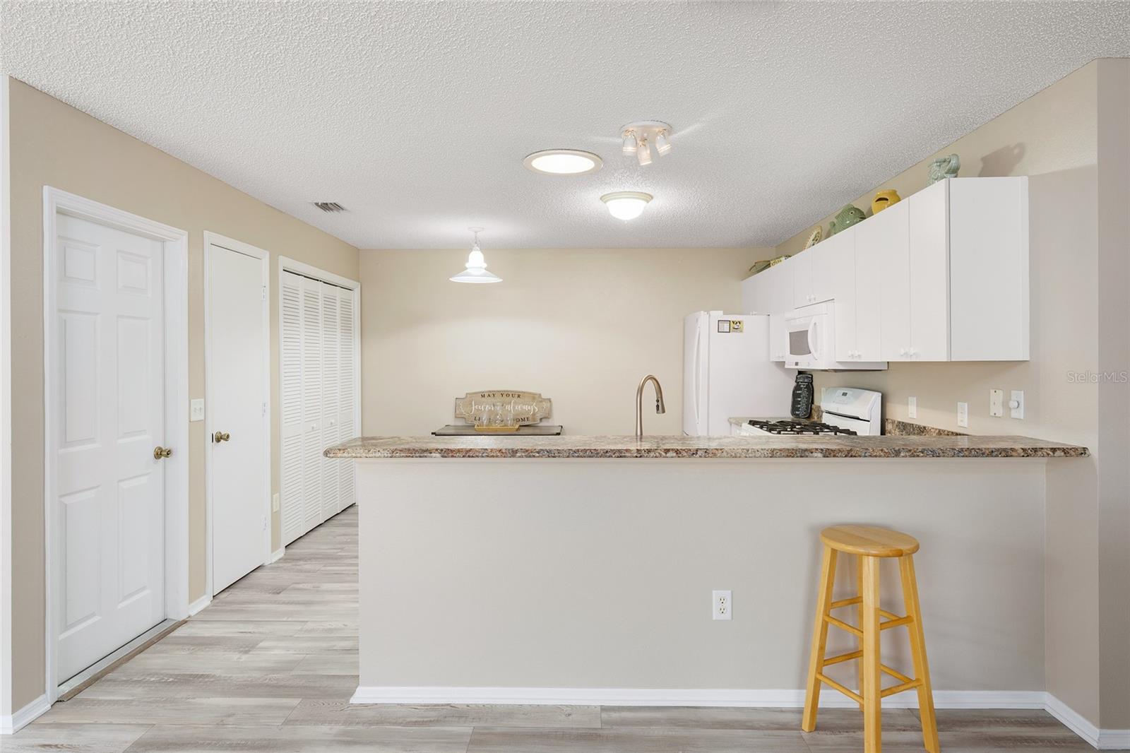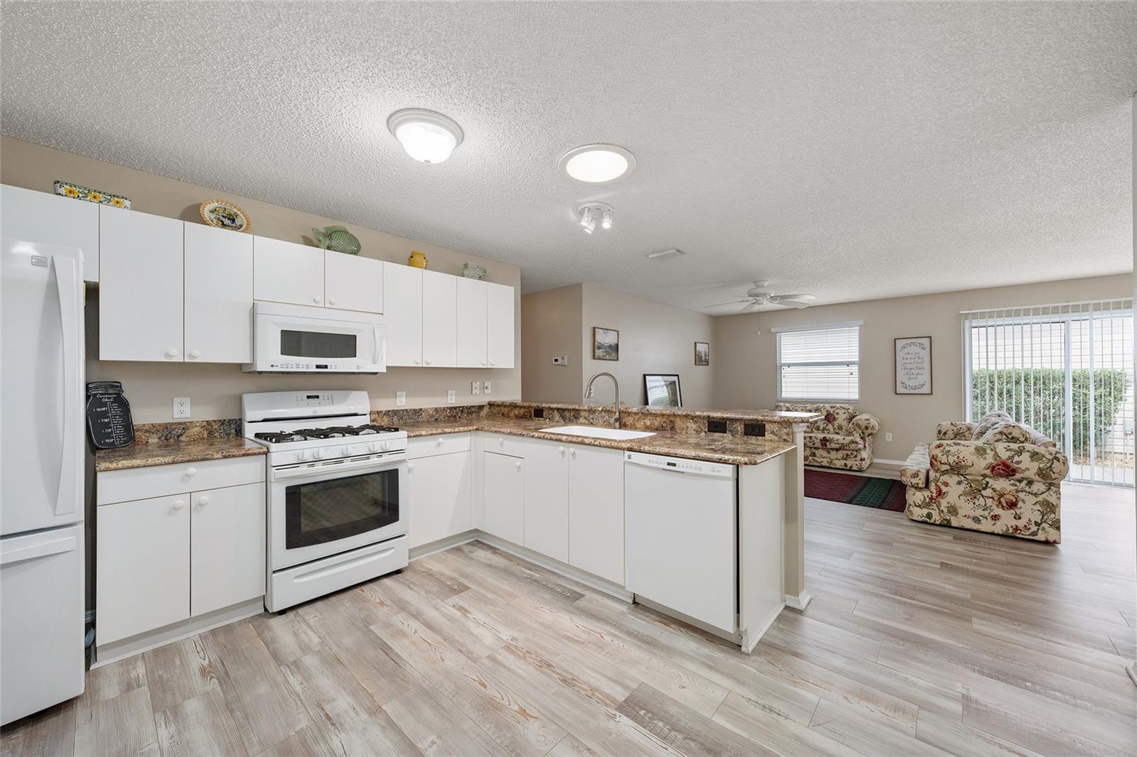 Enjoy easy Florida living in this beautifully maintained 2-BEDROOM, 2-BATH COLONY PATIO VILLA featuring NO BOND BALANCE — BOND PAID and true low-maintenance comfort. Designed for both seasonal and full-time living, this home blends outdoor enjoyment with bright, functional interior space. Your experience begins with attractive CURB APPEAL AND A LOW-MAINTENANCE YARD create a welcoming first impression, as you approach, you will enter through the covered LANAI WITH RIVER ROCK FLOORING, complete with sliders and screens to enjoy a true Florida room feel or fresh air year-round. While an additional uncovered patio offers the perfect space for grilling, relaxing, or soaking up the Florida sunshine. Inside, the OPEN AND SPACIOUS LIVING ROOM AND DINING ROOM COMBINATION creates an inviting setting for entertaining or everyday living. The home features NO CARPET, with LUXURY VINYL PLANK FLOORING and tile in both bathrooms, creating a clean and LOW-MAINTENANCE lifestyle. SOLAR TUBES AND UPDATED LIGHTING enhance the natural brightness throughout the home. The open kitchen includes room for eating space and features breakfast bar seating, GAS RANGE, HD LAMINATE COUNTERTOPS, UPDATED APPLIANCES, interior laundry, and convenient access to the 1.5-CAR GARAGE. The primary suite offers a walk-in closet and private bath with WALK-IN SHOWER, while the guest bedroom is located near a guest bath with TUB/SHOWER COMBINATION. Additional features include a 2023 ROOF, 2017 HVAC, and 2017 WATER HEATER. Previously used as a rental property, RENTAL INCOME HISTORY IS AVAILABLE UPON REQUEST. Conveniently located a 1/2 mile from CHATHAM RECREATION CENTER and the executive golf courses OAKLEIGH AND AMBERWOOD, this home also offers an estimated 5 minute golf car ride TO NANCY LOPEZ LEGACY COUNTRY CLUB. MULBERRY GROVE RECREATION CENTER AND MULBERRY SHOPPING PLAZA, featuring dining, shopping, and the VA CLINIC. Enjoy the convenience and active lifestyle that make The Villages so desirable. SCHEDULE YOUR PRIVATE SHOWING TODAY.