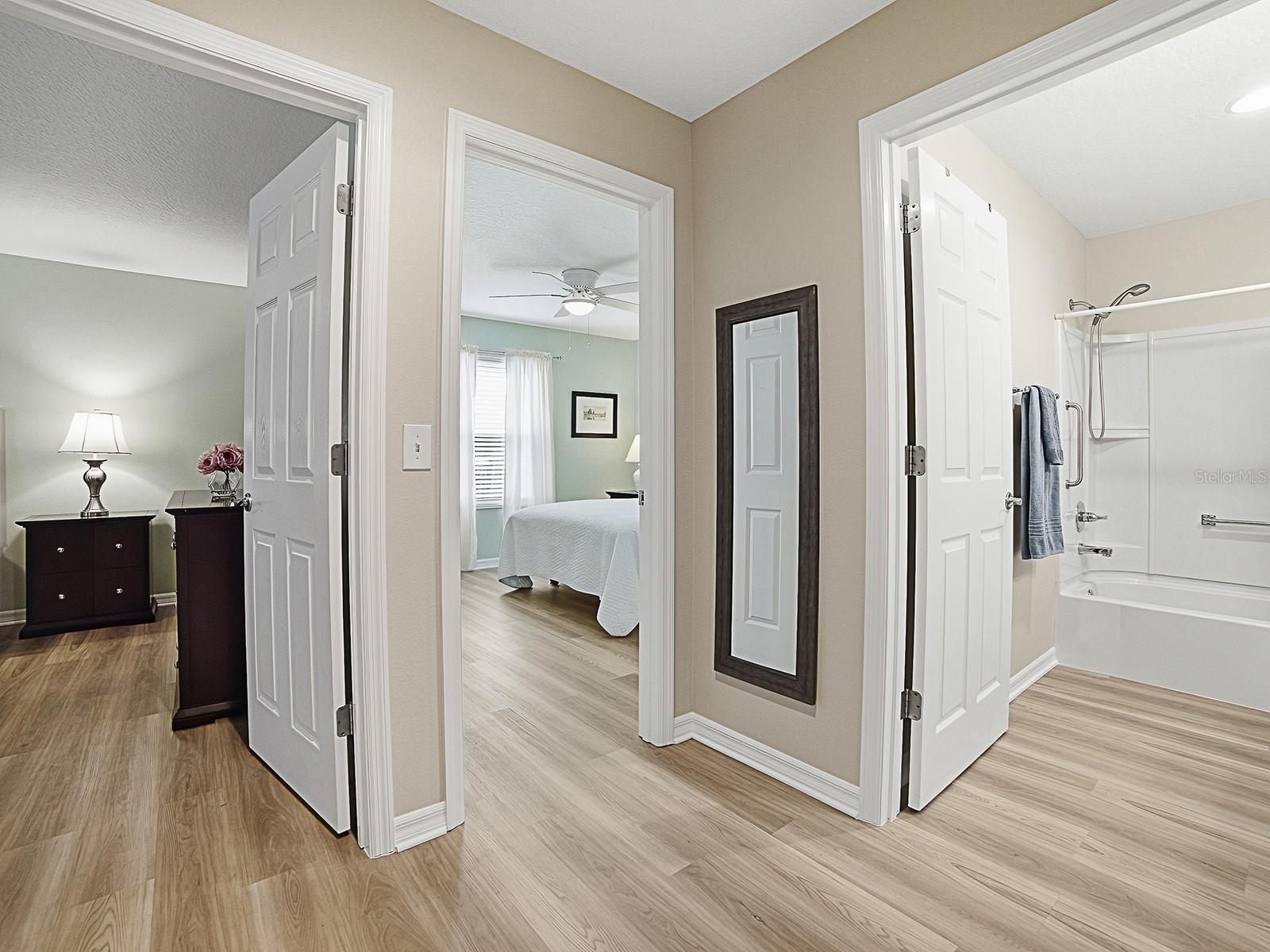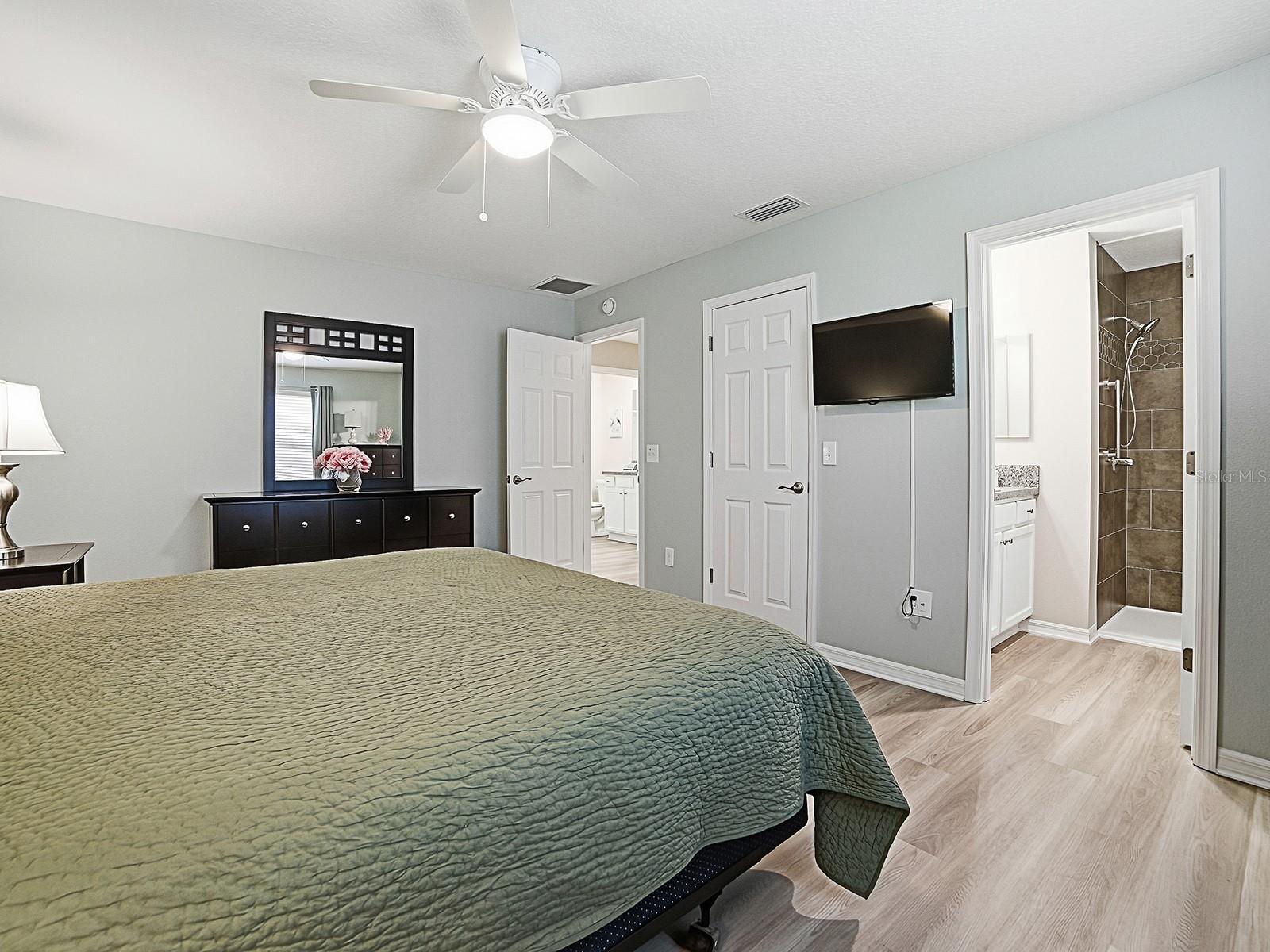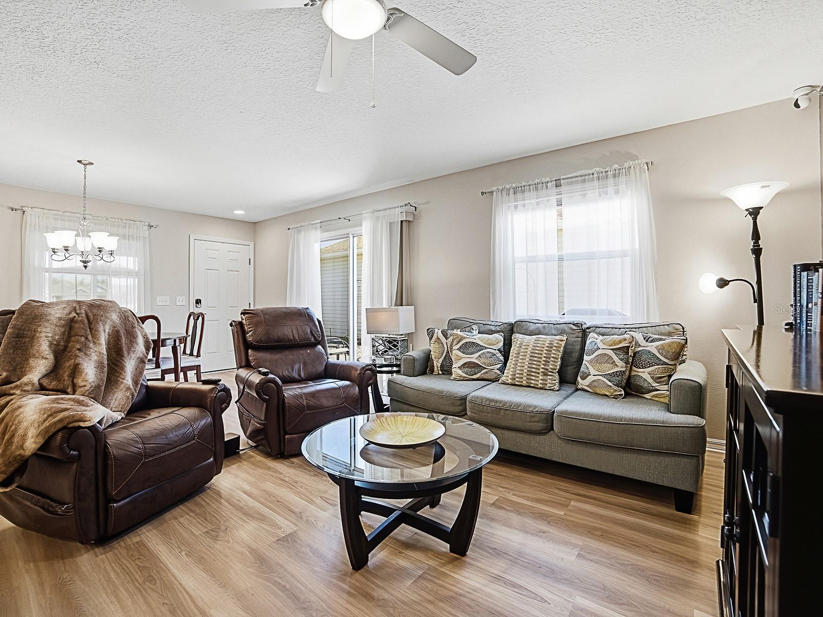 Ever hear the phrase “Priced to Sell”? Well…this one is TRULY PRICED TO SELL! This "TURNKEY" 2/2 COLONY Patio Villa was gently and seasonally used by the original owners and is ready for a QUICK CLOSE! Located in the highly sought-after Village of OSCEOLA HILLS, this beautifully maintained home offers upgrades you’ll truly appreciate from the moment you walk in. The Primary Shower has been thoughtfully retrofitted and customized for WHEELCHAIR ACCESSIBILITY, complete with SAFETY GRAB BARS and a convenient FOLD-UP MOUNTED SEAT — a rare and valuable feature! This LIGHT & BRIGHT home features LUXURY VINYL PLANK FLOORING throughout (NO CARPET!), Knockdown Ceilings, Granite-look Laminate Countertops, STAINLESS APPLIANCES, and an Indoor Laundry — just to name a few of the special touches. Enjoy your NE-Facing Acrylic ENCLOSED LANAI — the perfect spot for morning coffee — plus a lovely side patio ideal for grilling or simply relaxing outdoors. The OPEN FLOORPLAN enhances the spacious feel with an Eat-In Kitchen offering abundant counter space, plenty of cabinetry with Pull-Out Shelves, and a Large Breakfast Bar that creates a cozy gathering space. The Living and Dining areas provide excellent flow and flexibility for furniture placement. Whether you’re looking for SEASONAL USE or a smart INVESTMENT opportunity, this home checks the boxes! The Primary Suite offers a spacious Walk-In Closet and En-Suite Bath (wheelchair accessible), while the Guest Bedroom and separate Guest Bath with Tub/Shower combo are perfect for visiting family and friends. The Inside Laundry (with a NEW LG Dryer) features double doors and ample storage space. Additional extras include window blinds and treatments, newer garbage disposal, gutters, recently repainted interior, and a current Termite Plan in place with Massey. Only 10 years young and lovingly cared for — nothing to do but move right in! 2007 Gas Club Car Precedent Golf Cart may be negotiated separately. Tax line reflects property taxes only ($3,587.63). CDD line reflects the combined annual bond, maintenance, and fire district ($1,392.60). Bond Balance: $7,968.02. So, what are you waiting for? If not now, when?
