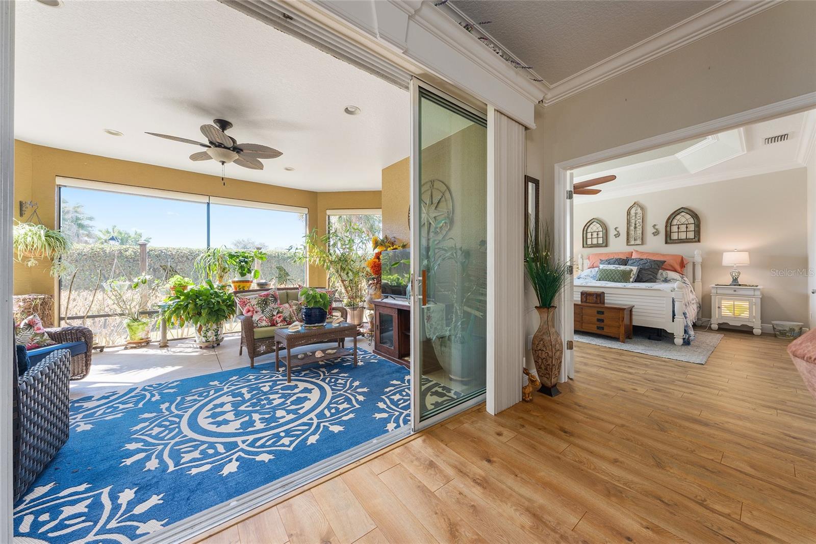 BOND PAID on this beautifully maintained BLOCK/STUCCO designer home in The Village of SANIBEL, one of the most desirable areas in The Villages! The ORIGINAL OWNERS of this home have replaced the systems most important to you: HVAC (2025), HWH (2026), ROOF (2026, scheduled before closing). The STUNNING 3-bedroom, 2-bath MODIFIED BRIDGEPORT MODEL has no back neighbors and offers a perfect blend of style and comfort featuring TRAY CEILINGS, CROWN MOLDING (2021) and professionally painted interior/exterior. Luxury vinyl plank flooring (2024) flows throughout most of the home including in the spacious PRIMARY SUITE which features 2 walk-in closets, a tray ceiling and bay window. The Primary Bathroom offers a tiled ROMAN SHOWER and dual vanities. The 2nd Bedroom fits a King-sized bed and has its own walk-in closet. The expansive KITCHEN has an abundance of cabinets and DOUBLE OVENS, along with a built-in DESK. The lush hedge landscaping creates a private feel with NO BACK NEIGHBORS. The 2-CAR GARAGE plus GOLF CART GARAGE has two separate work areas and a pull-down attic. And every day you are welcomed home with a painted driveway and a compass rose. CALL NOW for your private showing, the location can’t be beat - just one minute from Morse Blvd., 4 Championship Golf Courses close by, between Lake Sumter Landing and Brownwood Square, multiple recreation centers, Bonifay Country Club and a quick walk to the Captiva pool. WELCOME HOME!