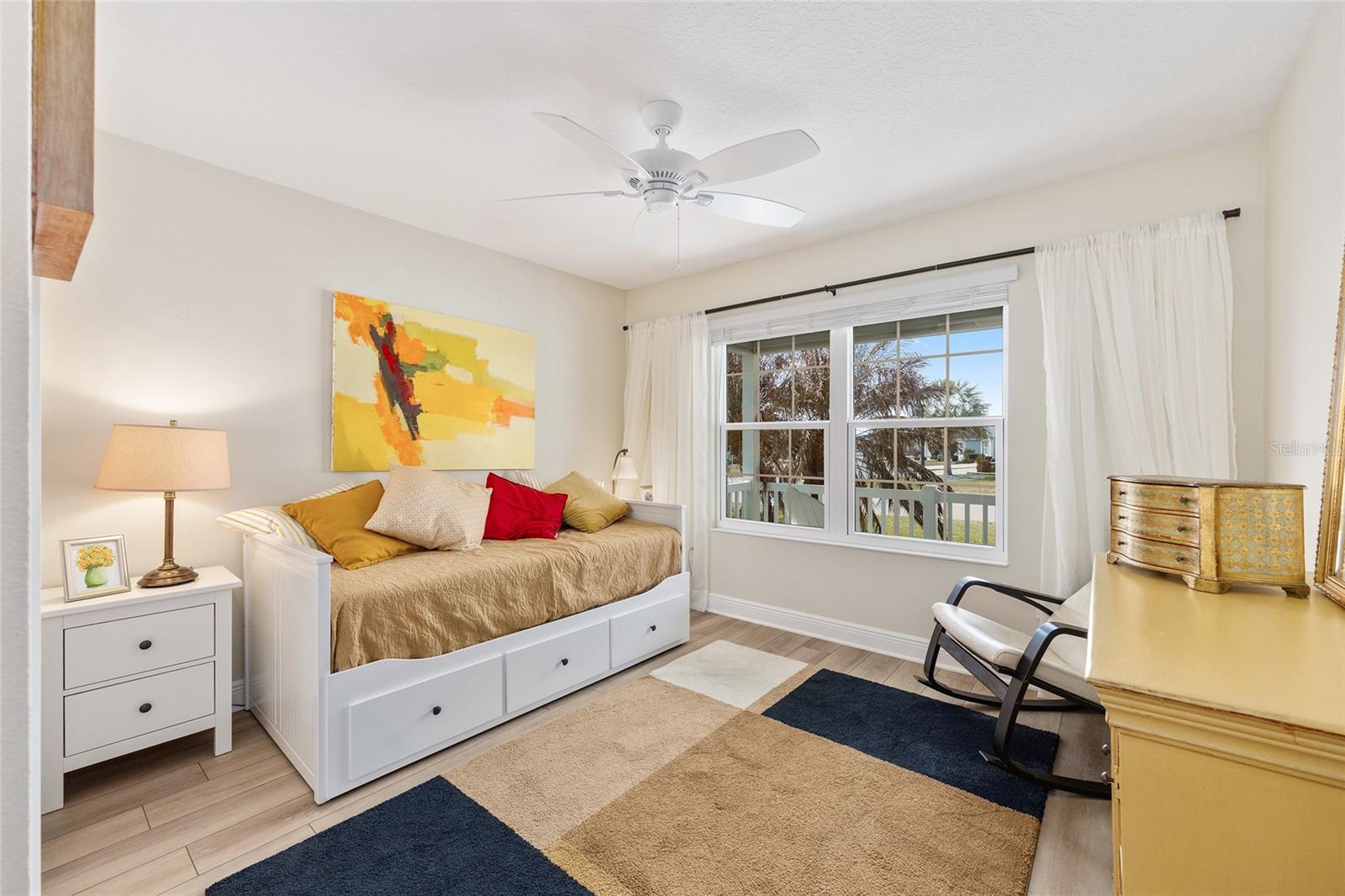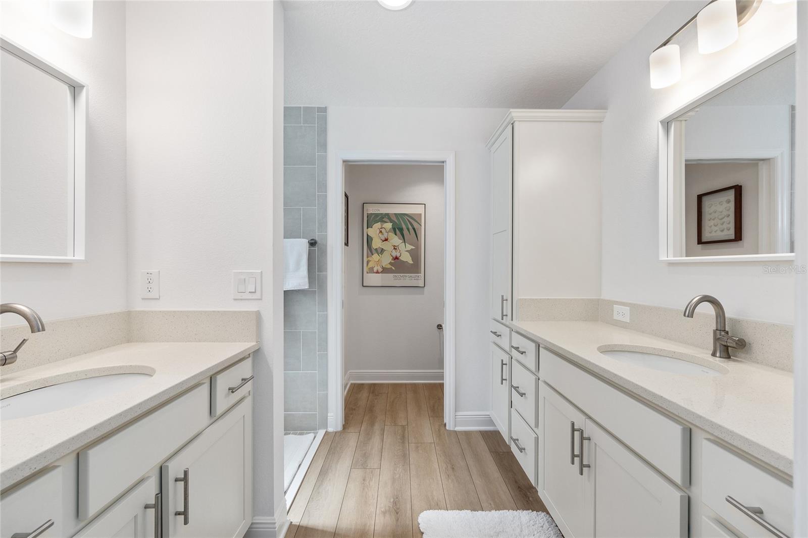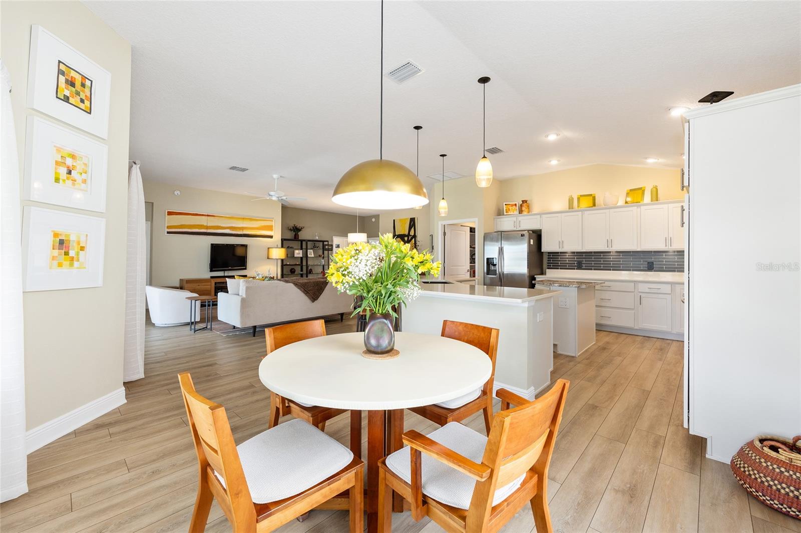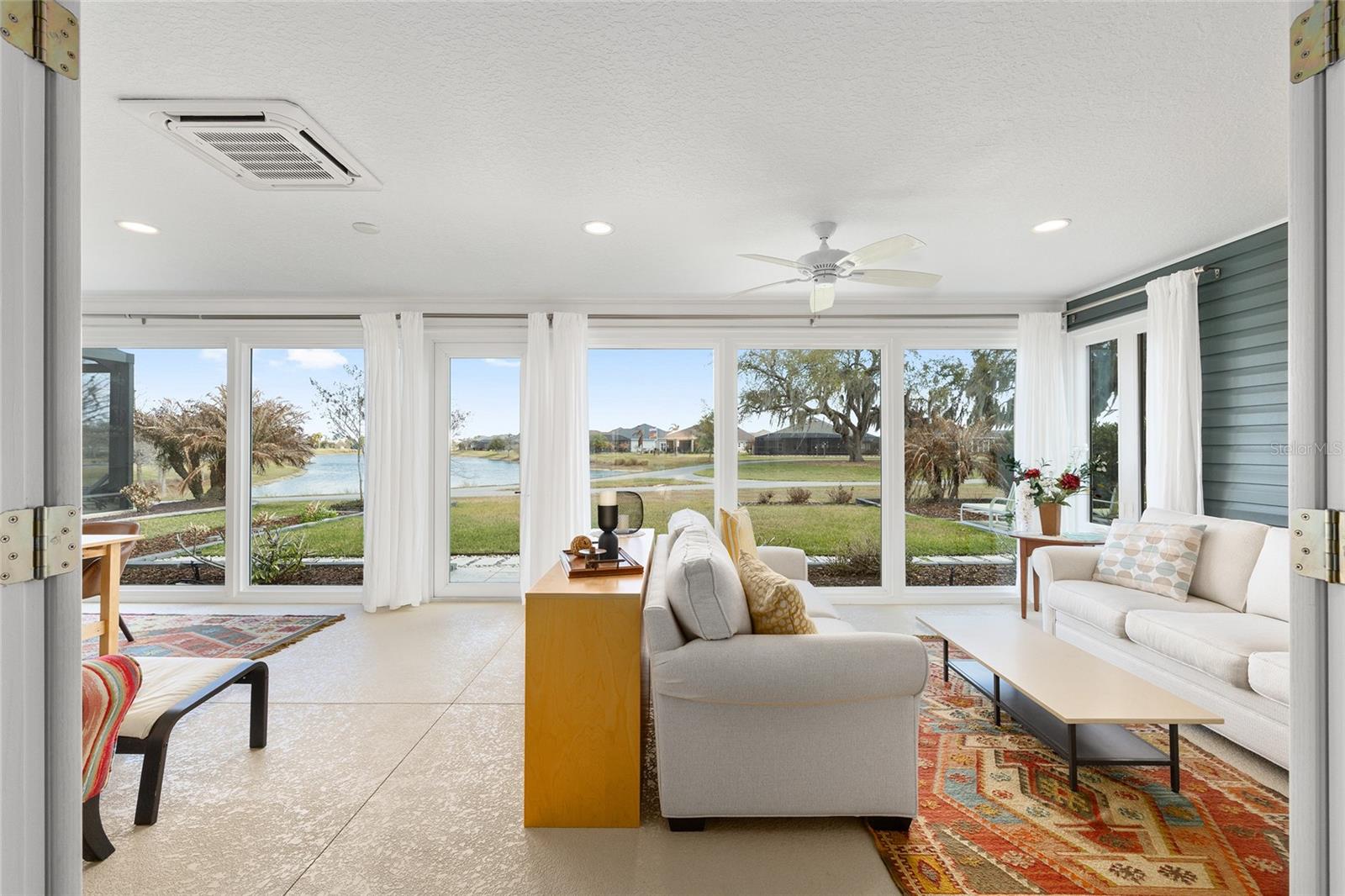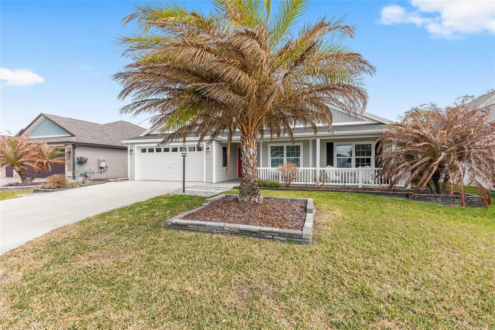 ~2020 ROOF, HVAC, HOT WATER HEATER~ ~WATER VIEW~ ~ROOM FOR A POOL~ ~BEAUTIFUL FRONT PORCH~ ~2’ STRETCH~ Welcome to this beautifully appointed STRETCHED SYCAMORE model in the sought-after Village of LINDEN! Perfectly positioned with a tranquil WATER VIEW and a charming FRONT PORCH, this home offers the ideal setting to enjoy the Florida lifestyle. Inside, LUXURY VINYL plank flooring flows seamlessly throughout the entire home, creating a cohesive and modern feel. The inviting living room features a ceiling fan and opens effortlessly to the main living spaces. The stunning kitchen is designed for both function and style, showcasing QUARTZ countertops, a LARGE ISLAND, SAMSUNG STAINLESS-STEEL appliances, TILE BACKSPLASH, under-cabinet and over-cabinet lighting, recessed lighting, and a bright EAT-IN AREA. The adjacent dining room features HIGH CEILINGS that enhance the home’s spacious and airy ambiance. The primary suite is a true retreat with a high TRAY CEILING and 2 CUSTOMIZED WALK-IN CLOSETS. The spa-like primary bath offers a TILED ROMAN SHOWER, DUAL sinks, HIGH QUARTZ countertops, and a PRIVATE COMMODE area. Guests will appreciate 2 well-appointed guestrooms, each with CUSTOMIZED BUILT-IN CLOSETS and ceiling fans. The guest bath includes a tiled tub/shower combination, linen closet, and HIGH QUARTZ countertops. The INSIDE LAUNDRY ROOM is equipped with LG appliances, a utility sink, shelving, and cabinetry for added storage. An ADDITIONAL PANTRY was thoughtfully created by converting the former coat closet, enhancing kitchen storage and functionality. Relax year-round in the EXPANDED LANAI featuring textured painted flooring, ENCLOSED DOUBLE-PANE GLASS WINDOWS, heat and air, and 2 ceiling fans—perfect for enjoying the beautifully landscaped backyard with room to ADD A POOL. Custom FRENCH DOORS add an elegant touch and easy access to outdoor living. Additionally, the 2-car garage includes a convenient work bench. This exceptional home combines thoughtful upgrades, beautiful views, and a prime location in The Villages. Minutes from March Bend Plaza with shopping and dining. Close to the Riverbend Rec Center and well as a short golf cart ride to Fenney, Sawgrass, Brownwood AND Eastport.