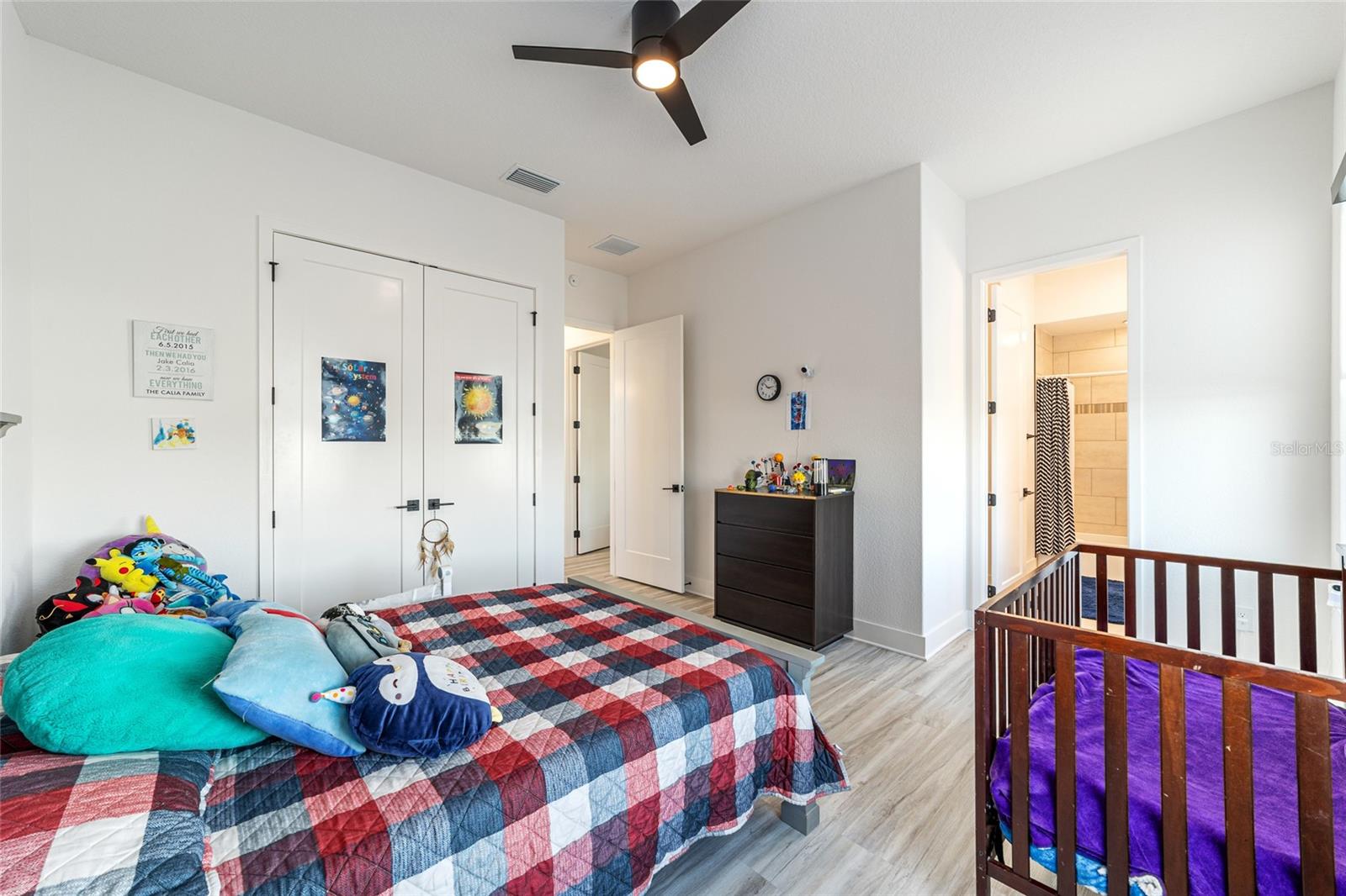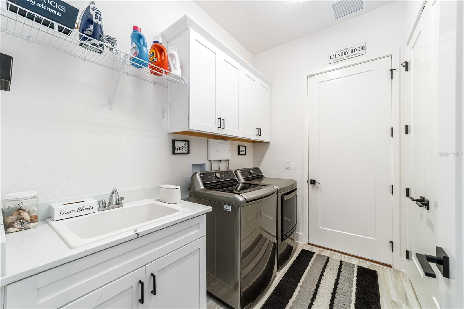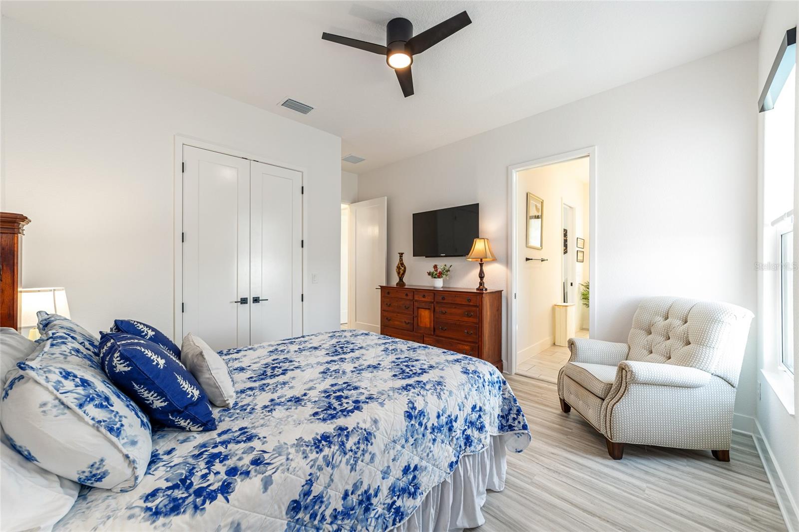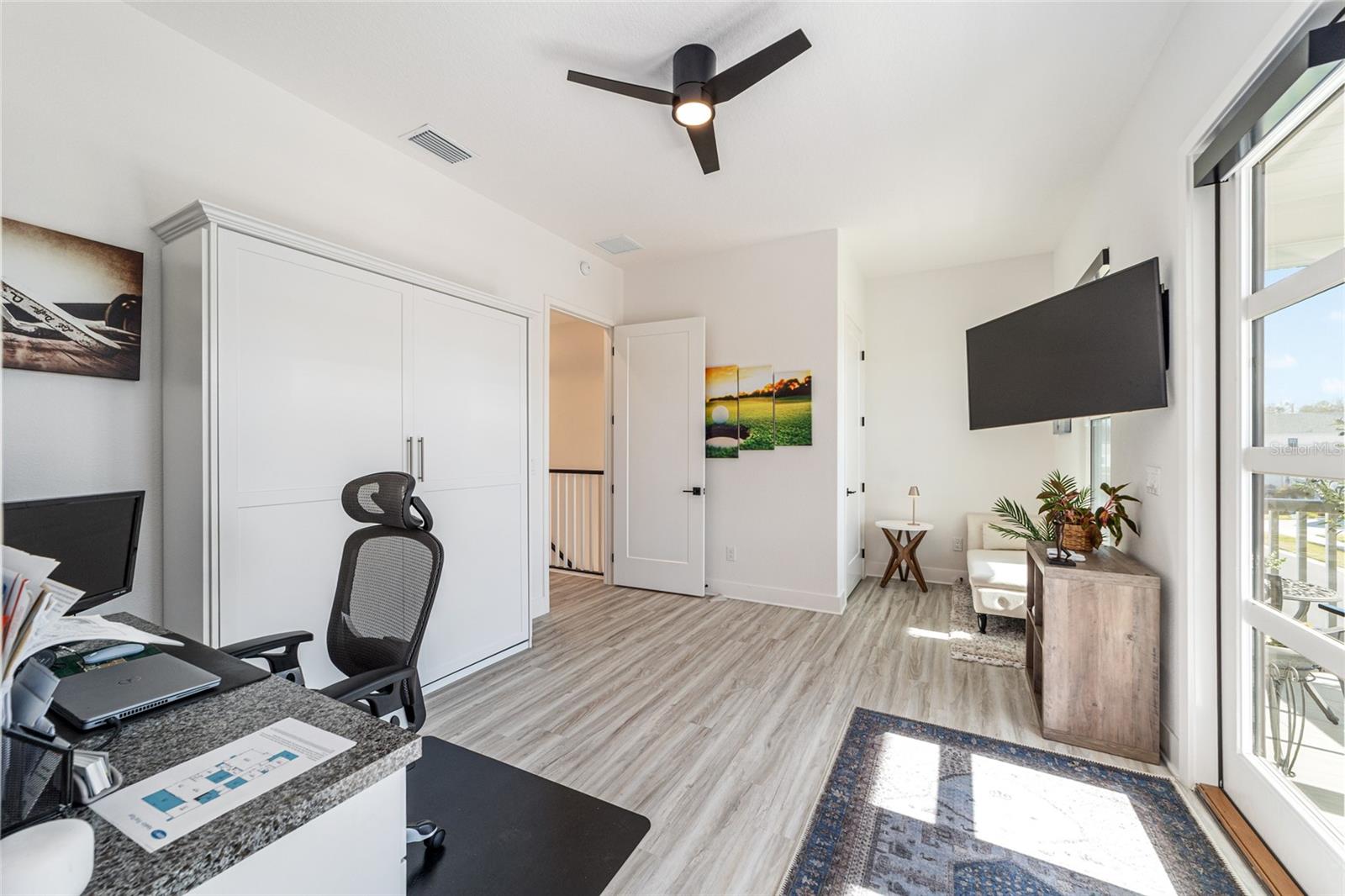 ~2023 ROOF/HVAC/HOT WATER HEATER~ ~HEATED SALTWATER POOL~ ~GOLF CART GARAGE~ ~WATER VIEW~ ~10’ CEILINGS~ Welcome to this stunning Double Play model in the Village of MIDDLETON in The Villages—an exceptional 2-story POOL home offering WATER VIEWS, upscale finishes, and impressive upgrades throughout. Situated on beautifully landscaped grounds with BRICK PAVER DRIVEWAY and WALKWAYS, this home delivers outstanding curb appeal and resort-style living. Ten-foot ceilings throughout the home enhance the open, airy feel, while LUXURY PLANK FLOORING spans the entire living space except for the 2 upstairs baths. The living room showcases UPGRADED LIGHTING, ceiling fan, and custom 3-way ELECTRIC FIRELPLACE with striking TV entertainment wall featuring decorative backsplash and recessed lighting. The dining room also features upgraded lighting, creating an elegant space for gatherings. The gourmet kitchen is beautifully appointed with UPGRADED CABINETRY, QUARTZ countertops, STAINLESS-STEEL appliances, TILE BACKSPLASH, and a large CENTER ISLAND—perfect for cooking and entertaining. Conveniently located on the main floor, the primary suite offers high ceilings, ceiling fan, FITTED WINDOW SHADES, CUSTOM CLOSET SHELVING in a walk-in closet. The luxurious ensuite bath features LVP, a TILED WALK-IN SHOWER, private commode area, UPGRADED CABINETRY, and QUARTZ countertops. Upstairs are 4 bedrooms, each pair connected by a JACK & JILL BATH providing flexibility for family and visitors. Every bedroom includes high ceilings, a ceiling fan, LVP flooring and built-in closet. Baths sport ceramic tile floors, QUARTZ countertops, and UPGRADED CABINETRY. One bath offers tiled tub/shower combination while the other has a tiled walk-in shower. The front bedroom, currently used as an office, opens to a screened balcony and houses a MURPHY BED. Additional interior highlights include a main-floor HALF BATH with upgraded finishes, an INSIDE LAUNDRY ROOM with luxury utility sink, custom frosted glass FRENCH DOORS, motion-sensor stairway lighting with a carpet runner, ELECTRIC WINDOW SHADE controls, a RETRACTABLE SCREEN on the balcony, air purification systems, Air Masters in both AC units, and an Eaton whole-house SURGE PROTECTOR. Outdoor living is equally impressive. SCREEN BIRDCAGE LANAI featuring an AWNING over a portion of the space and a sparkling 15-x 30 HEATED SALTWATER POOL with safety gate. The backyard is enhanced by custom landscaping, whole-house GUTTERS, irrigation flow filter, RainSoft water softening system, reverse osmosis water system, and fruit trees including mango and lime. spacious 2-car garage plus GOLF CART GARAGE features an insulated door, attic stairs, and 2 SOLAR ATTIC FANS for added efficiency. From second floor, there is another access to attic space. This extraordinary home combines space, luxury, and thoughtful upgrades in one of The Villages’ newest FAMILY communities. Don’t miss the opportunity to experience exceptional Florida living at its finest! You're near The Villages schools, Shallow Creek and Woodlands Championship Golf Courses. Eastport with live entertainment, shopping and restaurants is very convenient!