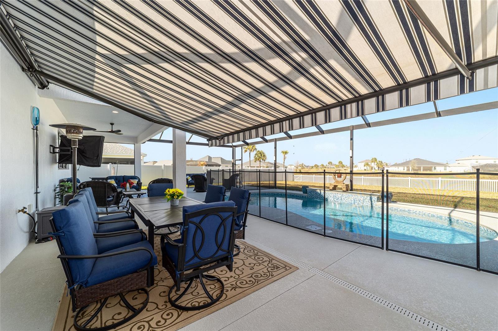 Child Safety Fence, Gunite, Heated, In Ground, Lighting, Salt Water, Screen Enclosure, Solar Cover, Tile