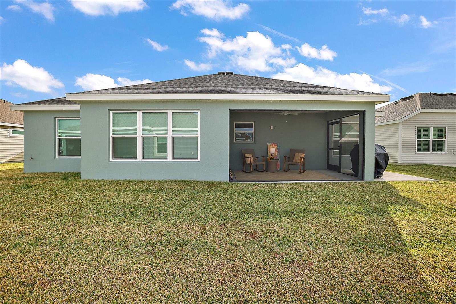 WELCOME to this charming FURNISHED / TURNKEY 3 Bedroom home, which includes 2019 Yamaha Golf Cart. This gorgeous home is nestled in The Village of Newell, located minutes away from the highly sought after Sawgrass Grove Area where you will enjoy nightly entertainment and restaurants along with shopping at the nearby Magnolia Plaza. Golf lovers will enjoy the easy access to nearby golf courses, as well as many other activities that The Villagers come to enjoy such as Pickleball, Tennis, Hike and Bike Trails not to mention the various daily activities at the nearby recreation centers and swimming pools. Come and enjoy this lovely split open floor plan. Large Master suite features private bath and roman tiled shower, double sinks and two walk-in closets. This Professionally decorated Designer home offers quartz countertops in both kitchen and bathrooms, ceiling fans, sink in Utility room, enclosed Florida / Bonus room, with lots of light. Exterior features screened in lanai for outdoor entertainment and a grilling pad just outside the lanai. Luxury Vinyl Plank flooring in Main Living areas, white cabinetry in Kitchen and Baths. With this TURNKEY home, all you need is your toothbrush to start living the dream of a Villager. Do not miss the opportunity to make this Fully Furnished home yours in a great location of The Villages, Come and Enjoy all that the Villages Has to Offer, it's more than a Home it's a LIFESTYLE.