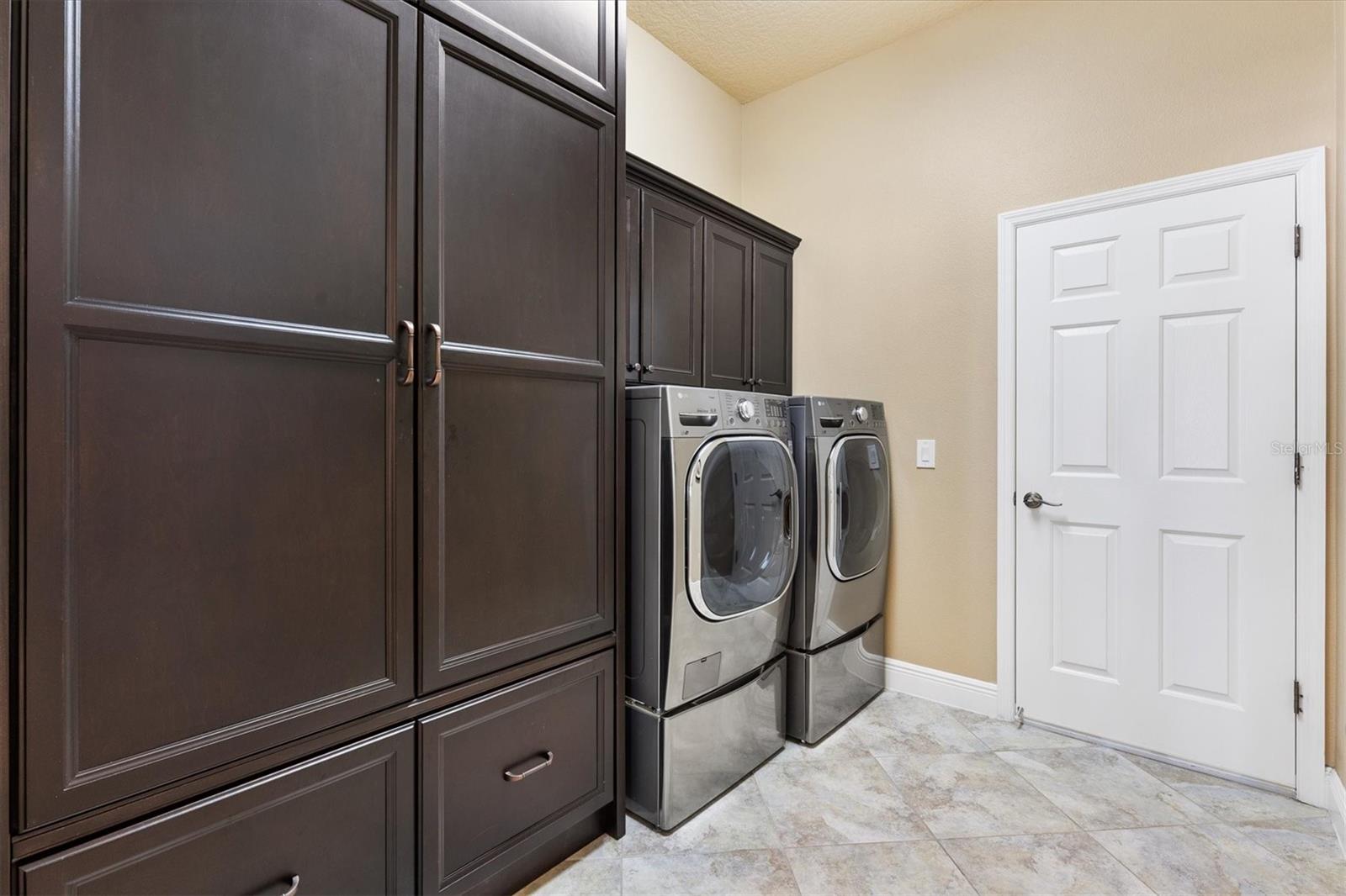 Welcome to this beautiful and spacious SANIBEL Model home in the sought after VILLAGES of BRIDGEPORT at LAUREL VALLEY. This 3 BR 2 BA home is perfectly situated on a meticulously maintained lot and boasts over 3600 square feet of under air living space. It combines elegance with modern comfort creating a perfect setting for entertainment and relaxation. As you enter through the front door, you are greeted by high ceilings, wide open living and dining areas, and expansive view of the pool. As you pass through the living room and out the sliding glass doors you will enter another separate family room with lots of room for entertaining or just relaxing with awesome views of the pool! At the touch of a button the privacy shades can be lowered on all the windows or each individual window as well. The kitchen boasts generous amounts of cabinet space and more than ample counter space which makes entertainment and food prep magically simple! The home features a dual filter KINETICO water filtration system providing filtered water for the whole house, as well as a reverse osmosis drink station at the kitchen sink and ice maker for refrigerator. This is a great alternative to buying bottled water! After passing through the spacious laundry room you will enter the over sized garage with enough room to house 2 cars, a golf cart with room left over for work benches and all your favorite tools. The garage is climate controlled and is lined with an abundance of overhead storage cabinets that can easily be accessed by a movable commercial grade ladder system. There are 12 overhead cabinets (35"H x 32"W) and offers an incredible amount of additional storage! The best part is yet to come! At the touch of a button, the "Majic Stair" all metal motorized stair system descends from the ceiling. This staircase has dual handrails and non skid treads for safe and easy access to the attic. For the heavier items there is a 200 lb capacity cable lift system that can be used to lift items up or down from the attic. Once up in the MEGA sized attic there is plenty of room to stand and walk around and there is over 200 sq ft of reinforced flooring for even more storage! Out back the giant pool deck has been freshly painted is totally screen enclosed. The pool and outside lighting are all computer controlled for your comfort and convenience. Come view this beautiful home today and see for yourself the features this home has to offer!