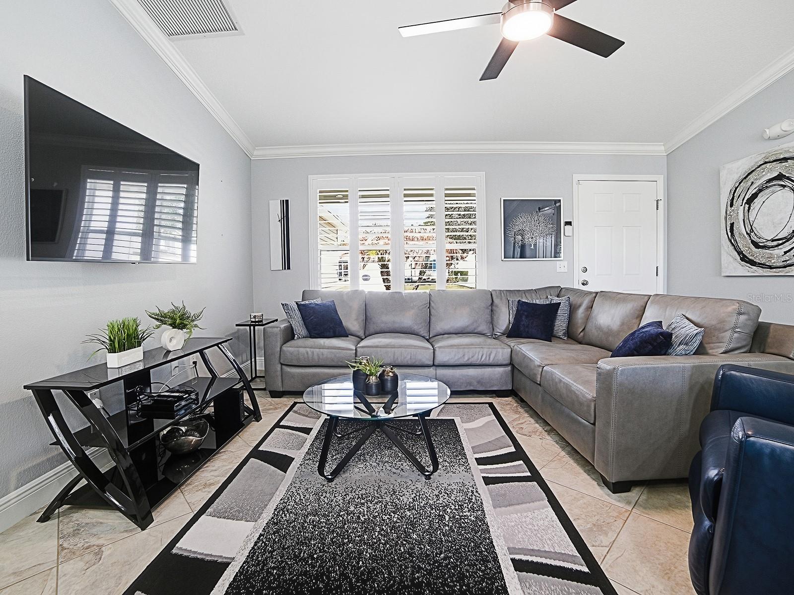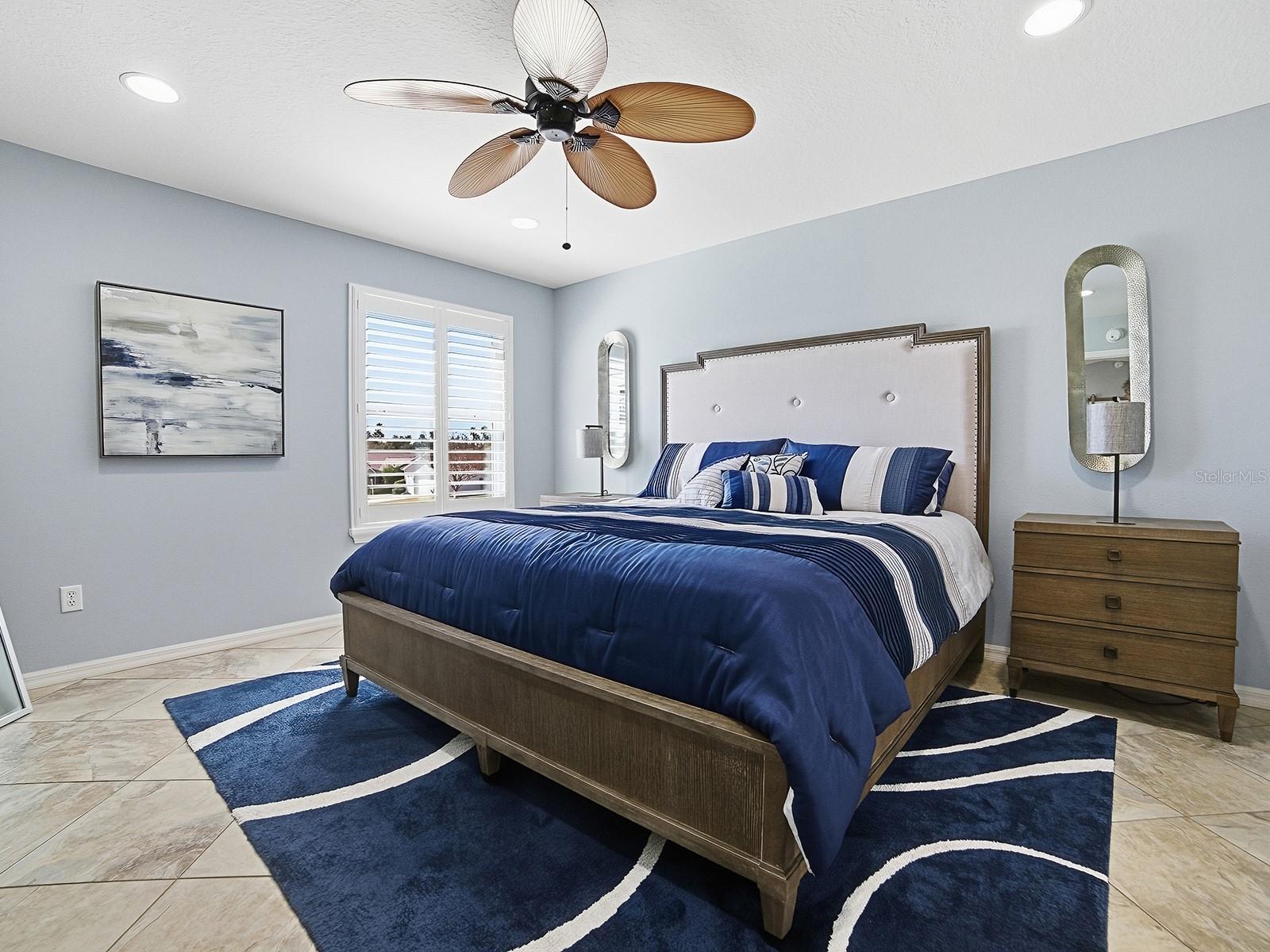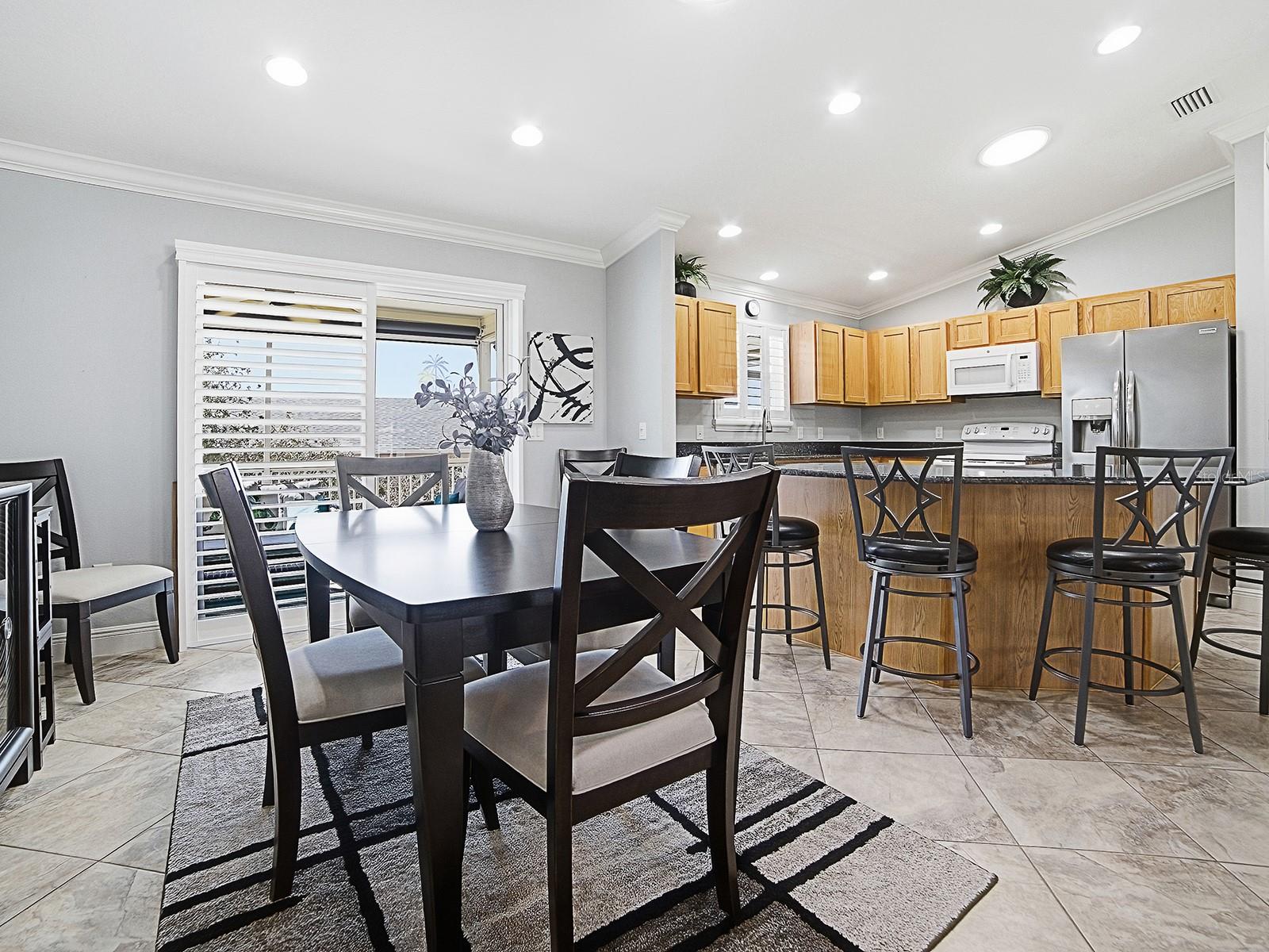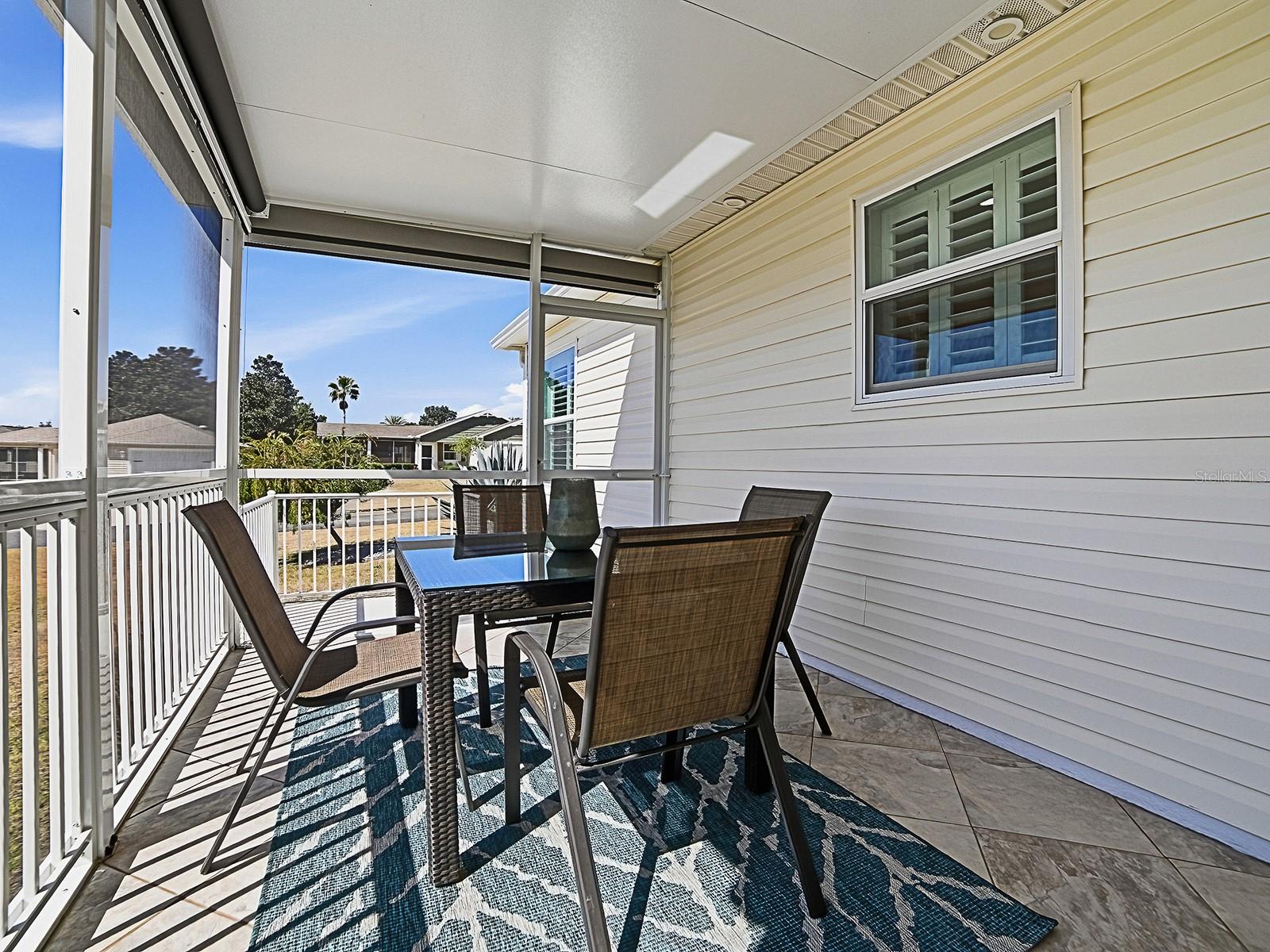 BOND PAID! TURNKEY! Don’t miss this beautifully maintained 3-bedroom, 2-bath Amarillo ideally situated on a desirable corner lot with a 2-car garage and a charming peek-a-boo water view from the elevated lanai in the Village of Amelia. This inviting home is filled with natural light thanks to 7 SOLAR TUBES, vaulted knockdown ceilings, and ideal southern exposure, creating a bright and cheerful atmosphere throughout. You’ll appreciate the gorgeous tile flooring laid on the diagonal throughout the main living areas, while the two guest bedrooms offer comfortable carpet. PLANTATION SHUTTERS and CROWN MOLDING enhance the home’s style and charm, and customized closet systems are found in all bedrooms, as well as in the hall and linen closets, for excellent organization. The open-concept kitchen adds to the spacious feel and features warm oak cabinetry, GRANITE countertops, pull-out shelves, and a large breakfast bar, all seamlessly flowing into the living and dining areas, perfect for everyday living and entertaining. The popular split-bedroom floor plan offers privacy, with the owner’s suite separated from the guest rooms and bath. The spacious owner’s suite easily accommodates a king-sized bedroom set and includes a large walk-in closet and private en-suite bath. Just off the dining area, step out to the large screened and tiled lanai, where the southern exposure allows you to comfortably enjoy the Florida lifestyle year-round. With remote-controlled shades, this room can be enjoyed year-round! This elevated outdoor space with a PEEK-A-BOO WATER VIEW is perfect for morning coffee or relaxing evenings. The inside laundry room is conveniently located between the kitchen and the 2-car garage for added ease. Other features of the home include Roof 2024, Water Heater 2024, and HVAC 2008. Seller will transfer the remaining balance of the home warranty to the new owner after closing. Ideally located near Odell Recreation Center, Hadley Pool, Havana Country Club, and Mallory Hill Country Club, and just a short golf cart ride to Lake Sumter Landing and Brownwood Paddock Square. You’ll also enjoy easy access to shopping and dining along CR 466 and CR 466A. With its perfect location, this lovely home is just waiting for its new owners.