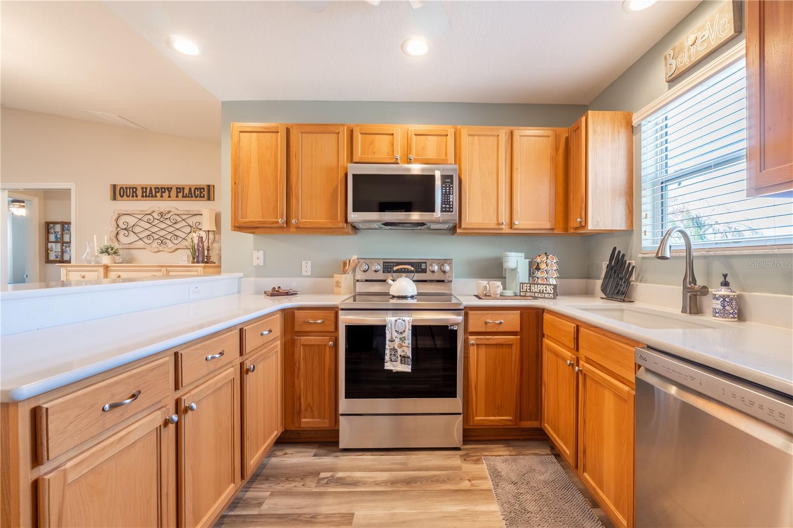 Welcome to this beautifully updated Corpus Christi model home in The Villages, located in the highly desirable Village of Amelia. This 3-bedroom, 2-bath home in The Villages is being offered TURNKEY, making it a perfect move-in ready opportunity for buyers looking for homes for sale in The Villages under $350K. This well-maintained home has been thoughtfully upgraded and improved, including a NEW ROOF (2024), HVAC system (2023), stainless steel appliances (2021), QUARTZ countertops (2021), and luxury vinyl plank flooring (2021) in the living room. Additional upgrades include fresh interior paint, updated fans and light fixtures, and a SOLAR TUBE that fills the home with natural light, creating a bright and comfortable living space. The popular split-bedroom floor plan offers privacy for both owners and guests. The third bedroom (without a closet) provides excellent flexibility and can easily serve as a guest room, home office, hobby room, or den, making this a versatile home for full-time residents or seasonal living in The Villages. Enjoy true Florida indoor–outdoor living with a new sliding glass door leading to the expanded lanai, partially covered so you can relax with morning coffee, entertain friends, or unwind after a day enjoying The Villages lifestyle. The garage provides space for both a car and a golf cart, an essential feature for enjoying everything The Villages has to offer. This home is ideally located between Lake Sumter Landing Market Square, Brownwood Paddock Square, and Colony Plaza, placing you just minutes from championship golf courses, recreation centers, pools, restaurants, shopping, and nightly entertainment. You'll also be close to the popular Odell Recreation Center, offering fitness, clubs, and activities. If you are searching for updated homes for sale in The Villages, Florida under $350K, this Village of Hadley turnkey home offers the perfect combination of location, upgrades, and value. Come experience The Villages lifestyle and see why so many buyers choose to call this community home. Home is offered TURNKEY, Staging Decorations do not convey with sale, home has personal items marked with green dot that belong to seller and do not convey as well. A turnkey list of items included is available upon request.