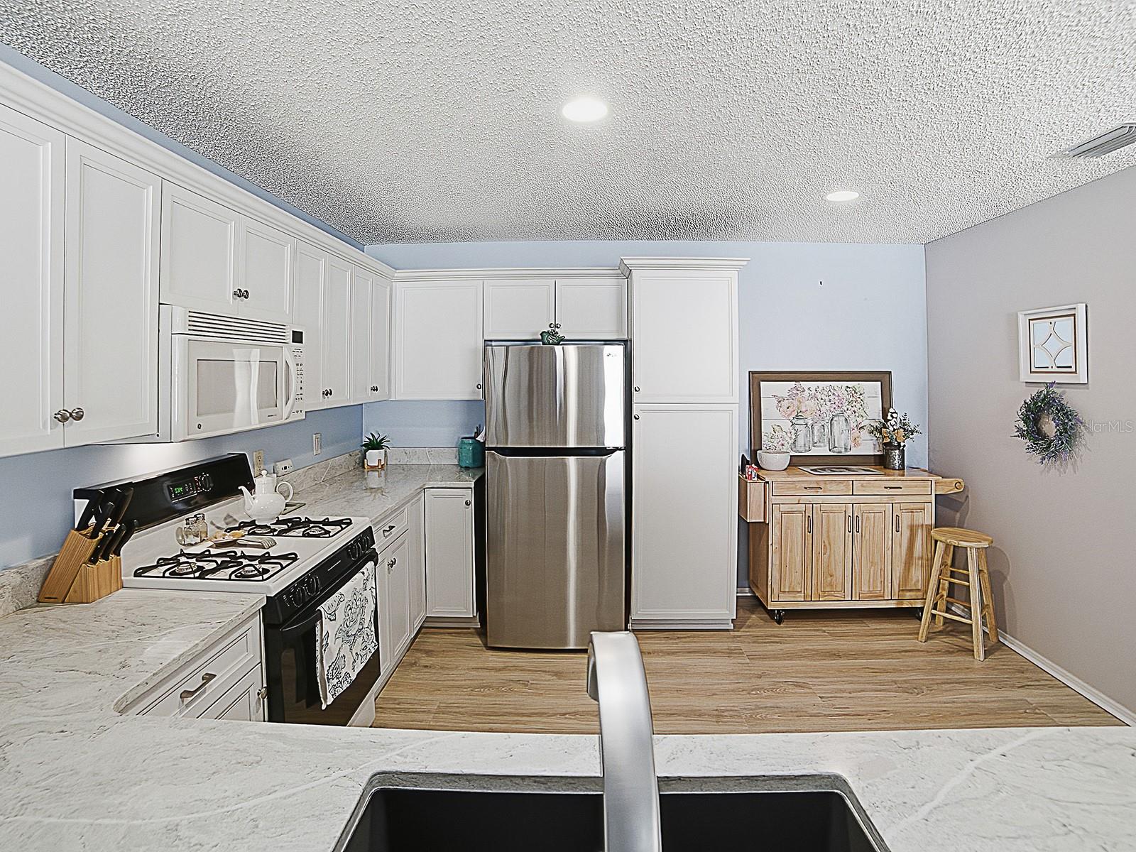 ~•Bond is PAID!•~ ~•Roof New in 2021•~ ~•HWH New in 2025•~ ~•HVAC New in 2018•~ Perfect for Florida Living or Rental Income! This Charming 2 bed, 2 bath TURNKEY COLONY patio villa in the village of Chatham offers a PRIME OPPORTUNITY for buyers looking for a LOW-MAINTENANCE home or an investment property in The Villages! This is a SPECIAL Colony patio villa = the Fridge has been been MOVED out of the corner, and additional cabinets and countertops added! The kitchen is a standout with GORGEOUS QUARTZ Countertops, a GAS Range, STAINLESS Fridge & Dishwasher (12/2025), White Cabinets w/Crown, and a SUNNY SOLAR TUBE. Enjoy easy living with LUXURY VINYL PLANK flooring in the Living, Dining Area and Kitchen. You'll find the perfect place to relax and enjoy the Florida landscape in the front GLASS-ENCLOSED LANAI. The spacious primary bedroom features a WALK-IN closet and EN-SUITE bath with Updated Walk-In Shower. Outdoor living is a BREEZE on the side patio. This CLEAN and BRIGHT villa with smart updates makes ownership simple and worry-free. WHOLE-HOUSE Surge Protector. Move in, relax, and start to enjoy your own slice of The Villages lifestyle today! Call today for a Private Showing! Great location that is easy in & out of The Villages w/light traffic even in PEAK Season! Just a gentle walk or quick golf cart ride to Chatham Rec Center & Family Pool. Also, FABULOUS and Nearby - the “First Responders” Recreation Center with Walk-in Pool, Pitch-N-Putt Golf Course, PICKLEBALL, and more! Close to Nancy Lopez Country Club, Several Pools (Adult & Family) and Mulberry Grove Rec Center. Shopping, Banking, Restaurants and the VA Center are nearby! Tax line reflects property taxes only, and is estimated. Bond is PAID. Current Maintenance Assessment is $452/year. Current Fire Dept. $284/year. Note: Square footage information is taken from the Public Record and is deemed reliable, but not guaranteed. Room and garage dimensions are approximate: buyer to verify.