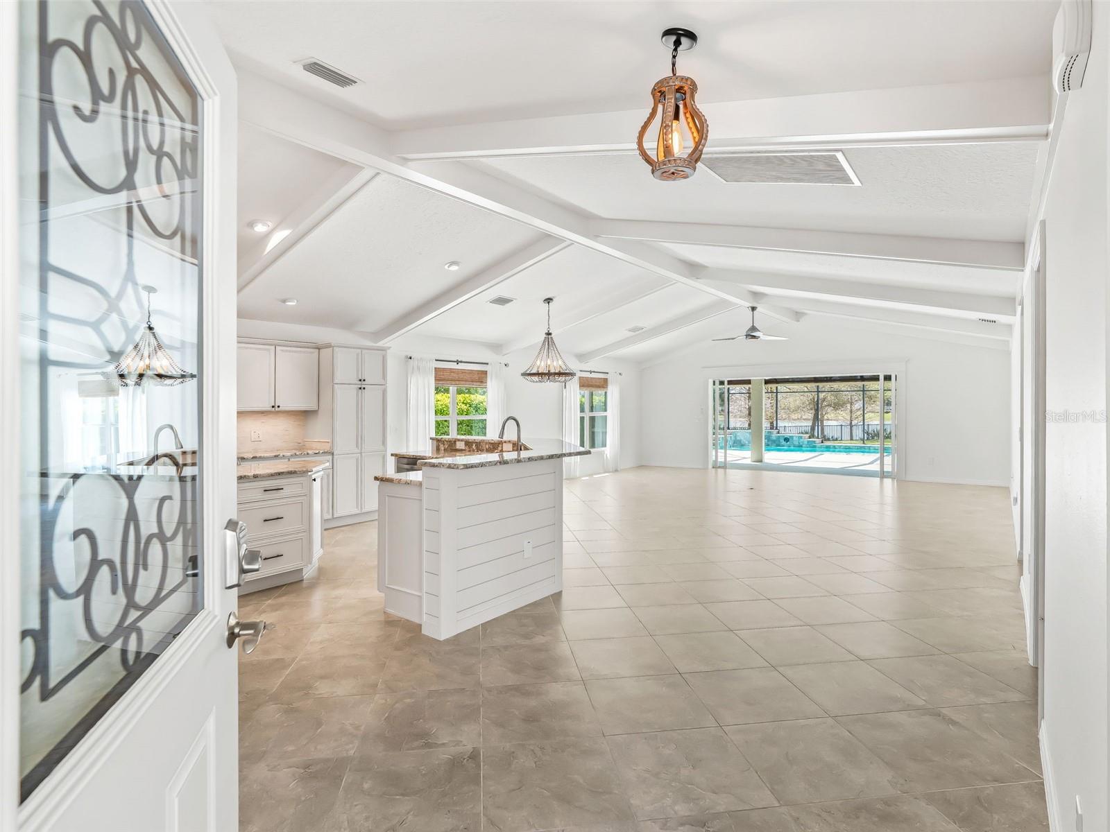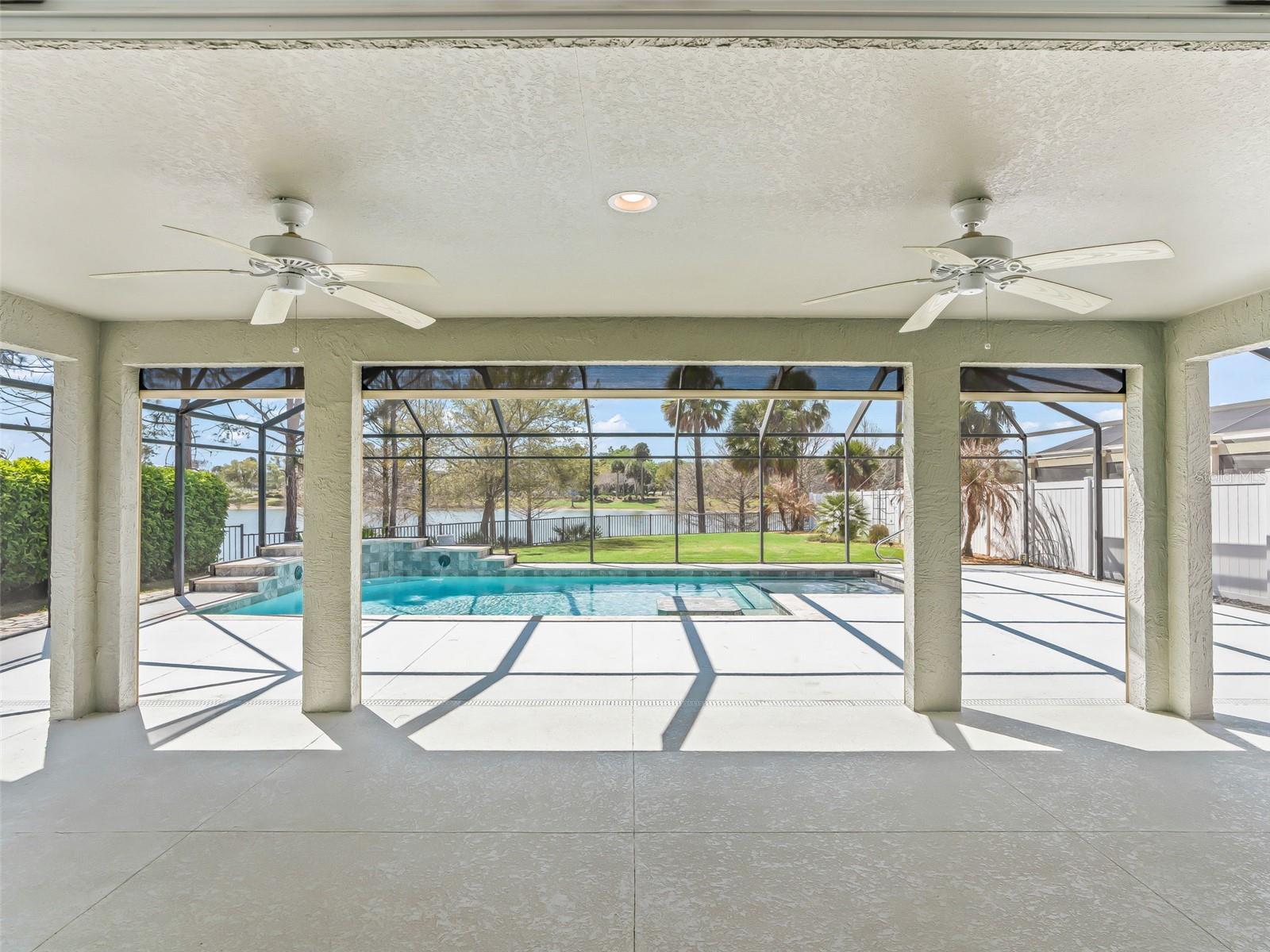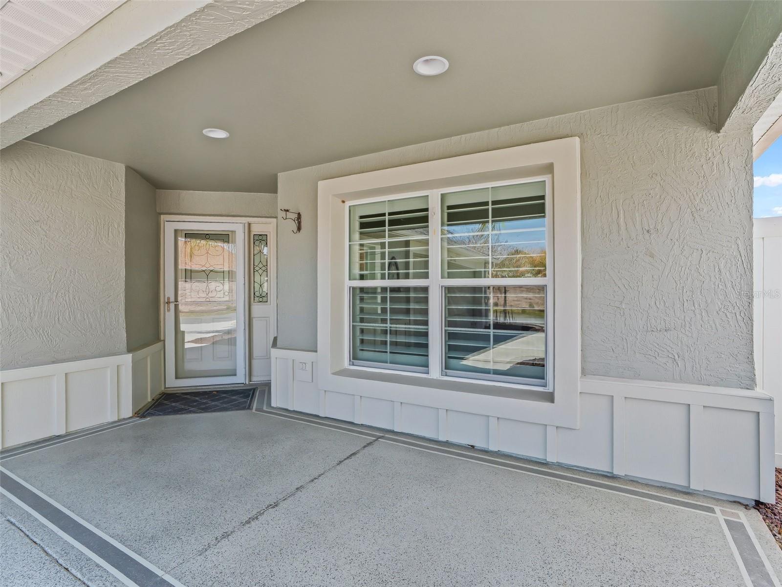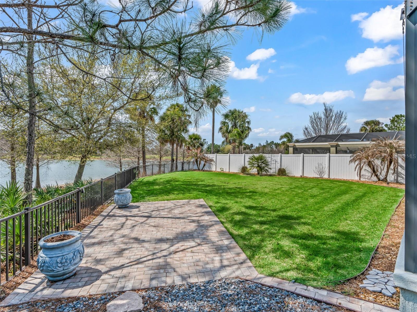 One or more photo(s) has been virtually staged. EXQUISITE WATERFRONT WYNDHAM BUNGALOW VILLA WITH PRIVATE RESORT-STYLE POOL IN THE VILLAGE OF COLLIER AT ANTRIM DELLS Prepare to be captivated by this truly one-of-a-kind luxury residence, where impeccable design meets effortless Florida elegance. Situated on a private, fenced homesite with sweeping water views, this 3-bedroom, 2-bath Wyndham bungalow villa offers 1,851 square feet of refined living, paired with breathtaking sunsets that transform every evening into an experience. From the moment you enter, the home reveals its architectural distinction with custom ceiling beams, extensive crown molding, and a seamless flow of diagonally laid ceramic tile throughout the main living spaces, creating both visual sophistication and continuity. Every finish has been carefully curated, every upgrade thoughtfully selected. At the heart of the home lies a magnificent chef’s kitchen, designed to impress and perform. Outfitted with cream-toned upgraded cabinetry, granite countertops, and all stainless steel appliances, including a brand-new KitchenAid induction range and a 1-year-old KitchenAid refrigerator, this space is as functional as it is beautiful. Enhancements such as a built-in wine cabinet, designer tile backsplash, motion-sensor under-cabinet lighting, and a generous walk-in pantry elevate the space to true luxury status. The living area is equally refined, featuring motorized shades, upgraded lighting, and a custom wood cornice framing the sliding glass doors, which open to a spectacular outdoor retreat. Step outside to your private resort-style oasis—a solar-heated pool with ambient lighting, cascading waterfalls, and an in-pool stone cocktail table, all surrounded by Kool deck flooring. Beyond, a separate pavered patio overlooks the tranquil lake, offering a front-row seat to some of the most stunning sunset views in The Villages. The home’s thoughtfully designed layout offers both privacy and versatility: • A guest bedroom featuring a built-in Murphy bed, custom desk, and cabinetry, ideal for hosting or working from home • A secluded third bedroom that functions as a private suite, enhanced by plantation shutter doors and an adjacent bath with a striking barn door entry Bedrooms are finished with plush, upgraded Berber-style carpeting, while the remainder of the home showcases premium surfaces and finishes. Additional luxury appointments include: • Ecobee smart thermostat • Upgraded lighting and ceiling fans throughout • Motorized shades in both the living room and covered lanai • Maytag washer and dryer (approximately 2 years old) • Hot water recirculation system for near-instant hot water • 2-car garage with epoxy flooring, built-in cabinetry, utility sink, attic stairs, and partially decked attic space • Painted driveway and professionally designed, low-maintenance stone landscaping in front (no grass) The fully fenced yard offers both privacy and peace of mind—perfect for pet owners or those seeking a secure outdoor environment. This home sits just a few minutes by golf cart to the Brownwood Town Square. Head on over every night to hear live music, and for the local farmer’s market each Saturday morning! This is more than a home—it is a statement property, offering a rare blend of architectural character, high-end finishes, and resort-style outdoor living. Every detail has been elevated. Every upgrade has been made. A truly exceptional opportunity to own one of the most distinctive homes in The Villages.