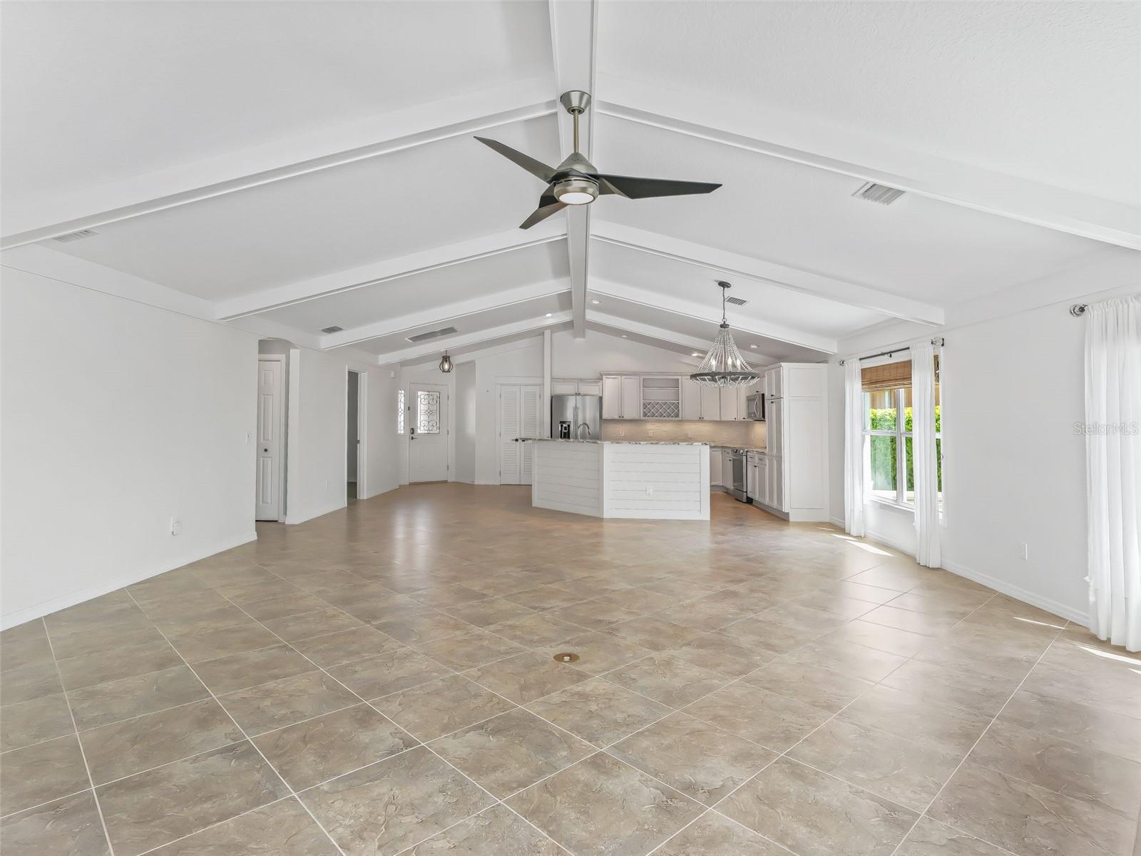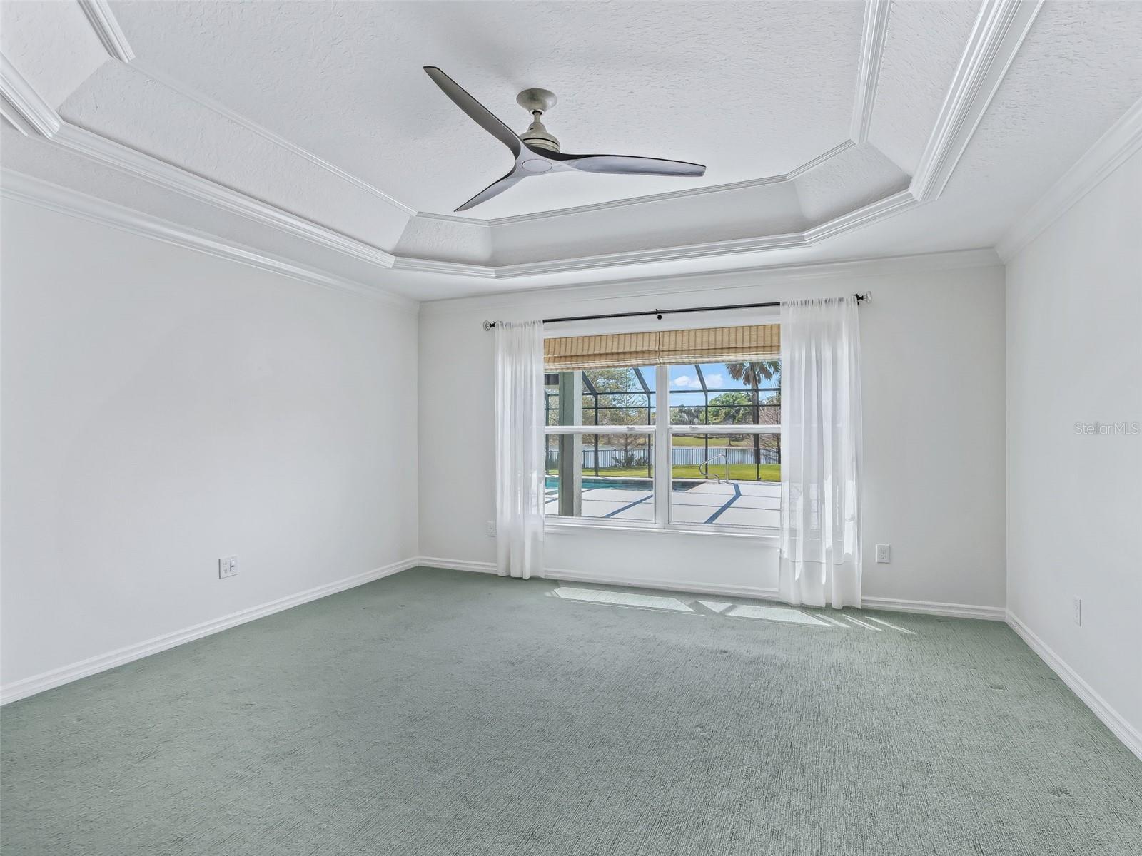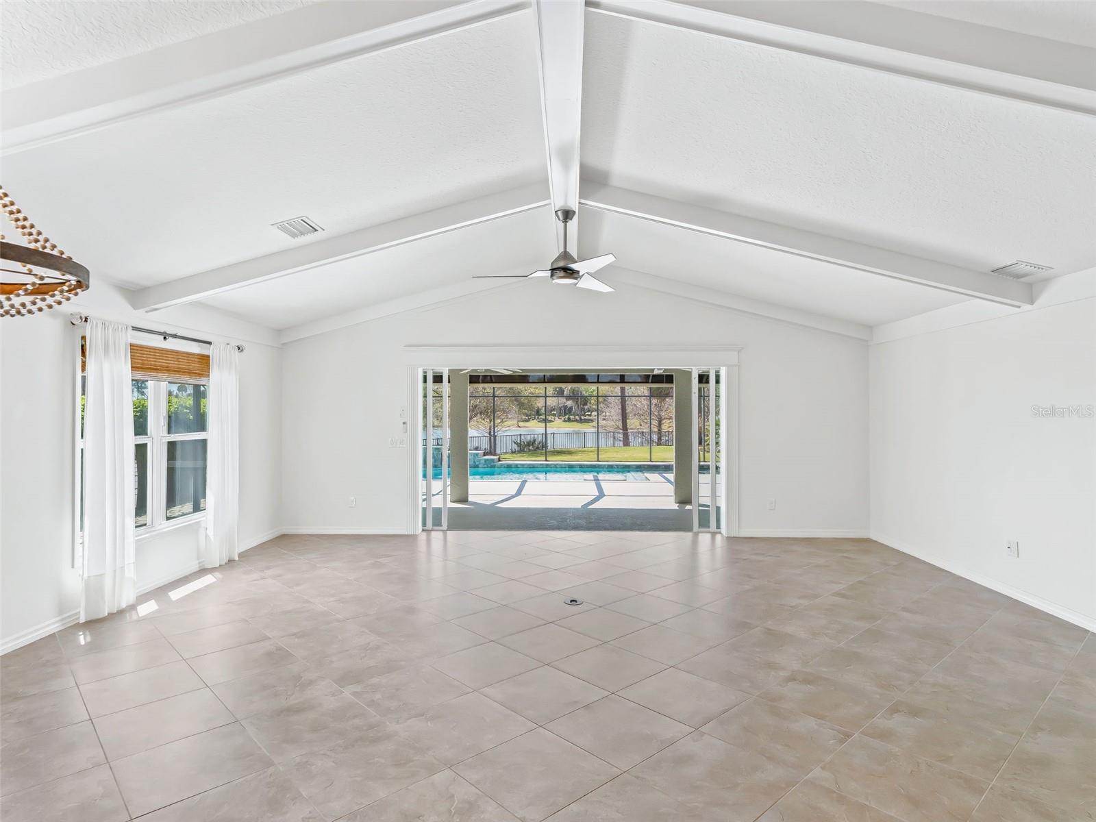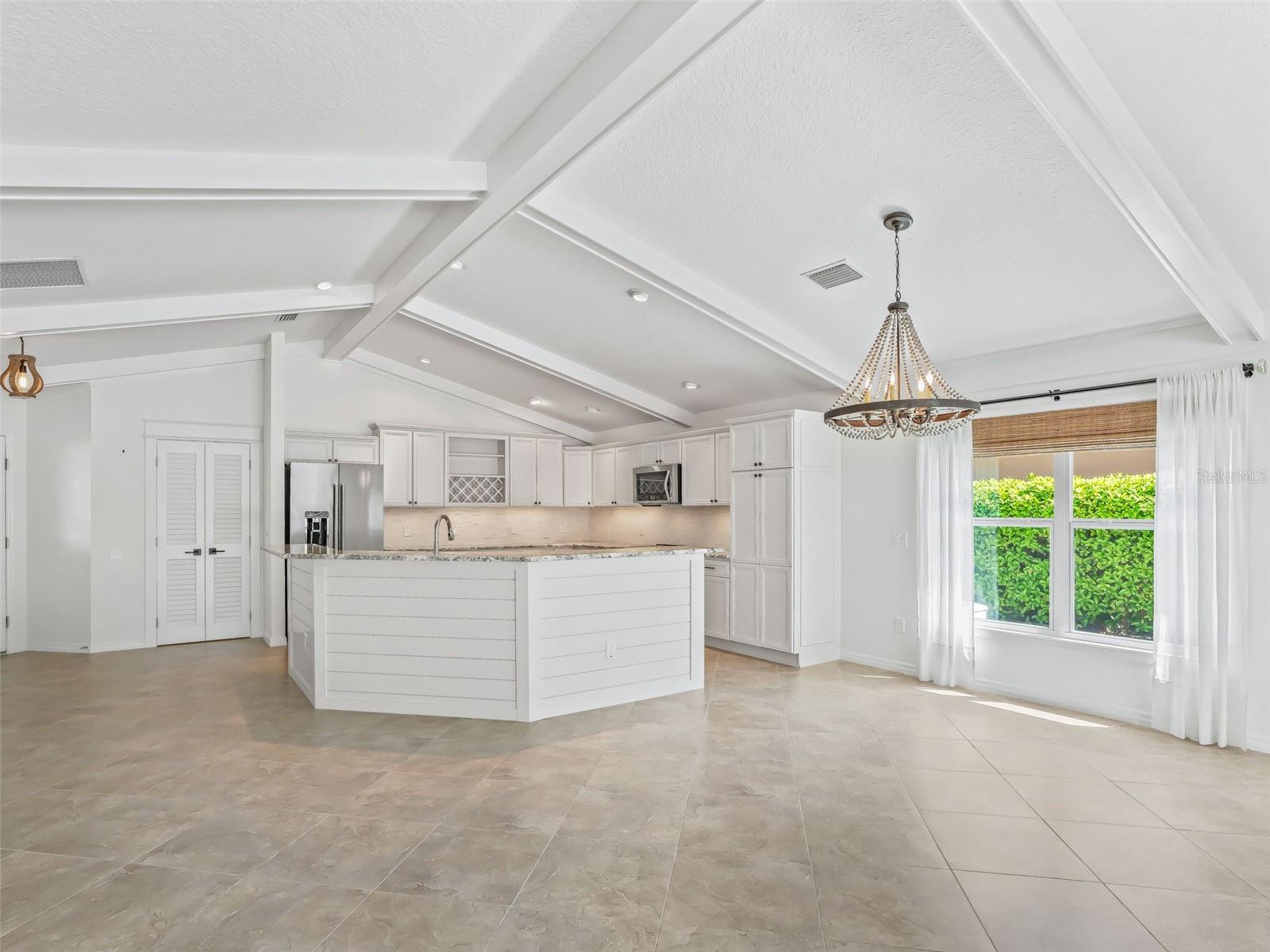 One or more photo(s) has been virtually staged. EXQUISITE WATERFRONT WYNDHAM BUNGALOW VILLA WITH PRIVATE RESORT-STYLE POOL IN THE VILLAGE OF COLLIER AT ANTRIM DELLS Prepare to be captivated by this truly one-of-a-kind luxury residence, where impeccable design meets effortless Florida elegance. Situated on a private, fenced homesite with sweeping water views, this 3-bedroom, 2-bath Wyndham bungalow villa offers 1,851 square feet of refined living, paired with breathtaking sunsets that transform every evening into an experience. From the moment you enter, the home reveals its architectural distinction with custom ceiling beams, extensive crown molding, and a seamless flow of diagonally laid ceramic tile throughout the main living spaces, creating both visual sophistication and continuity. Every finish has been carefully curated, every upgrade thoughtfully selected. At the heart of the home lies a magnificent chef’s kitchen, designed to impress and perform. Outfitted with cream-toned upgraded cabinetry, granite countertops, and all stainless steel appliances, including a brand-new KitchenAid induction range and a 1-year-old KitchenAid refrigerator, this space is as functional as it is beautiful. Enhancements such as a built-in wine cabinet, designer tile backsplash, motion-sensor under-cabinet lighting, and a generous walk-in pantry elevate the space to true luxury status. The living area is equally refined, featuring motorized shades, upgraded lighting, and a custom wood cornice framing the sliding glass doors, which open to a spectacular outdoor retreat. Step outside to your private resort-style oasis—a solar-heated pool with ambient lighting, cascading waterfalls, and an in-pool stone cocktail table, all surrounded by Kool deck flooring. Beyond, a separate pavered patio overlooks the tranquil lake, offering a front-row seat to some of the most stunning sunset views in The Villages. The home’s thoughtfully designed layout offers both privacy and versatility: • A guest bedroom featuring a built-in Murphy bed, custom desk, and cabinetry, ideal for hosting or working from home • A secluded third bedroom that functions as a private suite, enhanced by plantation shutter doors and an adjacent bath with a striking barn door entry Bedrooms are finished with plush, upgraded Berber-style carpeting, while the remainder of the home showcases premium surfaces and finishes. Additional luxury appointments include: • Ecobee smart thermostat • Upgraded lighting and ceiling fans throughout • Motorized shades in both the living room and covered lanai • Maytag washer and dryer (approximately 2 years old) • Hot water recirculation system for near-instant hot water • 2-car garage with epoxy flooring, built-in cabinetry, utility sink, attic stairs, and partially decked attic space • Painted driveway and professionally designed, low-maintenance stone landscaping in front (no grass) The fully fenced yard offers both privacy and peace of mind—perfect for pet owners or those seeking a secure outdoor environment. This home sits just a few minutes by golf cart to the Brownwood Town Square. Head on over every night to hear live music, and for the local farmer’s market each Saturday morning! This is more than a home—it is a statement property, offering a rare blend of architectural character, high-end finishes, and resort-style outdoor living. Every detail has been elevated. Every upgrade has been made. A truly exceptional opportunity to own one of the most distinctive homes in The Villages.