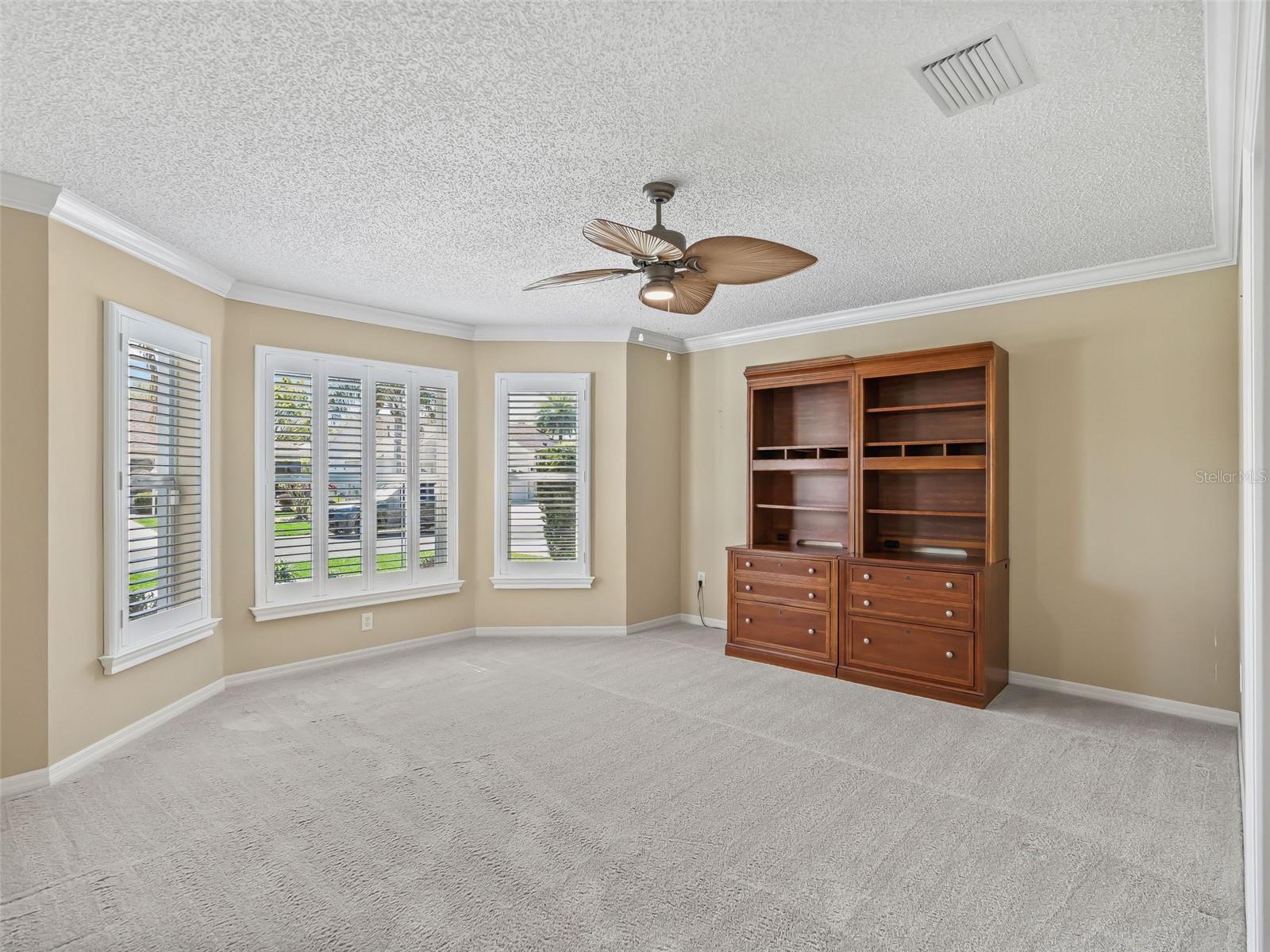 Tucked away on a quiet cul-de-sac in the highly sought-after community of The Villages, this beautifully maintained Lantana model offers the perfect blend of comfort, style, and convenience. Ideally positioned between CR 466 and CR 466A, the home enjoys both privacy and easy access to shopping, dining, and recreation. From the moment you arrive, the painted driveway and walkway, mature landscaping, and inviting curb appeal set the tone. Inside, you’ll find a light-filled, open floorplan enhanced by neutral tones, crown molding throughout, and plantation shutters on every window—creating a timeless and elegant feel. The spacious kitchen is designed for both everyday living and entertaining, featuring stainless steel appliances, granite countertops, a gas range, abundant cabinetry, and a cheerful eat-in area. Just off the kitchen, the large interior laundry room adds convenience and functionality. The primary suite is a relaxing retreat, complete with a double-sink vanity, jetted soaking tub, and separate shower—perfect for a spa-like experience at home. A versatile front room easily adapts to your needs as a guest room, office, or media space. Additional highlights include a golf cart garage, attic storage, a NuTone central vacuum system, and a WaterBoss filtration system. Major updates such as a new HVAC system (December 2023) and new roof (July 2024) provide added peace of mind. Enjoy Florida living year-round with an extended lanai overlooking a private backyard—ideal for relaxing or entertaining. A charming screened front porch adds yet another space to unwind. Located just minutes from the impressive Lake Miona Recreation Center, this impeccably cared-for home offers the lifestyle you’ve been waiting for. Also, Cane Garden Country Club, and the Heron & Pelican executive golf courses are in close proximity.