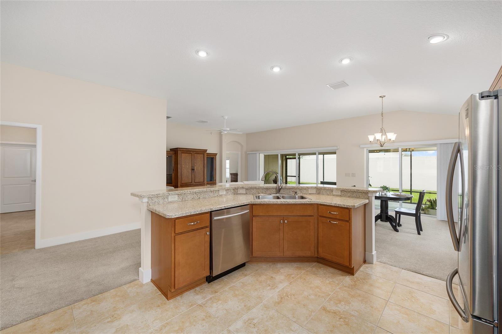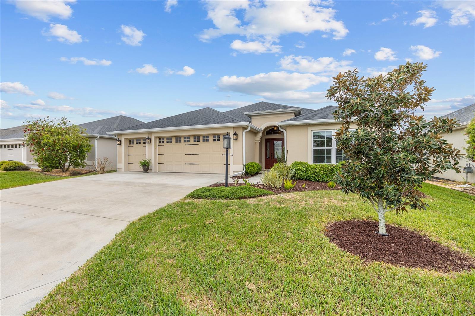 Located in the highly desirable VILLAGE OF LINDEN ISLE, this beautifully designed 3/3 MOSSEY OAK MODEL offers space, functionality, and a peaceful setting in one of the newest and fastest-growing areas of The Villages. Positioned on a quiet street, this village has no through traffic. This home provides a serene environment while still being incredibly convenient to everything you need. Just minutes from MAGNOLIA PLAZA SHOPPING CENTER and the EVERGLADES RECREATION CENTER, you’ll enjoy easy access to dining, shopping, pickleball, resort-style pools, walking trails, and endless activities that make The Villages lifestyle so special. This location continues to grow in popularity for its newer homes, open surroundings, and proximity to exciting new amenities. Step inside and you’ll find a spacious and versatile layout featuring THREE BEDROOMS AND THREE FULL BATHS, including TWO PRIVATE SUITES WITH HIGH CEILINGS, WALK-IN CLOSET, AND WALK-IN TILED SHOWER in the second suite and a tub/shower in the 3rd—perfect for guests or multi-generational living. The kitchen is thoughtfully designed with GAS COOKING, STAINLESS STEEL APPLIANCES, PULL-OUT SHELVES, DEEP DRAWERS, A LAZYSUSAN, AND A PANTRY CABINET, making it both functional and inviting for everyday living and entertaining. The home features LAMINATE COUNTERTOPS and a warm, comfortable feel with CARPET THROUGHOUT THE MAIN LIVING AREAS AND BEDROOMS. The primary suite offers a relaxing retreat with DUAL SINKS, WALK-IN CLOSET, A SEPARATE WATER CLOSET, AND A ROMAN SHOWER WITH A WINDOW FOR NATURAL LIGHT. Additional features include a LAUNDRY ROOM WITH WASHER AND DRYER, CABINETS AND UTILITY SINK, EXTRA HALL CLOSET FOR STORAGE, and a GARAGE EQUIPPED WITH NOVA WATER FILTRATION SYSTEM AND WATER SOFTENER. Enjoy outdoor living on the SCREENED LANAI WITH ADDED CONCRETE PAD AND PRIVACY WALL, creating the perfect space to relax, entertain, or simply enjoy the Florida lifestyle year-round. This home offers the ideal combination of LOCATION, LAYOUT, AND LIFESTYLE, all in a growing area of The Villages close to shopping, recreation, and future amenities. MOVE-IN READY AND WAITING FOR YOU TO START LIVING THE VILLAGES LIFESTYLE!