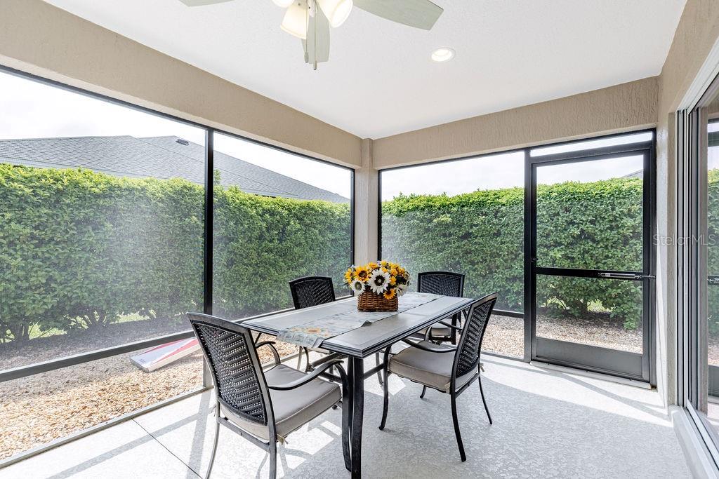WELCOME TO YOUR PRIVATE RETREAT IN THE HIGHLY DESIRABLE VILLAGE OF MARSH BEND! Perfectly positioned just steps from the HOGEYE TRAIL WALKING PATH, this BEAUTIFULLY MAINTAINED BLOCK & STUCCO DESIGNER HOME offers the ideal combination of comfort, space, and The Villages lifestyle. This S~T~R~E~T~C~H~E~D LILY MODEL features 3 BEDROOMS, 2 BATHROOMS, AND 1,923 SQ. FT. OF LIVING SPACE and is offered FURNISHED / TURNKEY, making it truly move-in ready. From the moment you arrive, you’ll notice ENHANCED LANDSCAPING, GUTTERS AROUND THE ENTIRE HOME, AND STRONG CURB APPEAL, along with a SCREENED FRONT ENTRY that sets the tone for what’s inside. Step into a bright, open interior highlighted by SOARING CEILINGS and LARGE WINDOWS THAT FILL THE HOME WITH NATURAL LIGHT. The heart of the home is the GOURMET KITCHEN, featuring UPGRADED STAINLESS STEEL APPLIANCES, AN EXPANSIVE ISLAND, GRANITE COUNTERTOPS, CUSTOM SPICE RACK, AND ABUNDANT CABINETRY, making it perfect for both everyday living and entertaining. CROWN MOLDING AND CUSTOM CORNICES THROUGHOUT add an upscale finish. The O V E R S I Z E D PRIMARY SUITE is a true retreat with a VAULTED TRAY CEILING, GENEROUS ROOM SIZE, WALK-IN CLOSET, AND A SPA-LIKE EN SUITE BATHROOM offering DUAL SINKS, BUILT-IN LINEN STORAGE, PRIVATE WATER CLOSET, and a GORGEOUS CORNER WALK-IN SHOWER with GLASS-BLOCK ACCENTS Guest accommodations are thoughtfully designed with TWO ADDITIONAL BEDROOMS TUCKED BEHIND A POCKET DOOR FOR MAXIMUM PRIVACY. Bedroom two and three feature BUILT-IN CLOSETS and the guest bath includes A TILED TUB/SHOWER COMBO, and a HALL LINEN CLOSET. A CENTRALLY LOCATED INTERIOR LAUNDRY ROOM WITH EXTRA CABINETRY adds convenience, while the garage is where this home really separates itself from the pack—an OVERSIZED FULL 3-CAR GARAGE that can easily accommodate 2 CARS AND 2 GOLF CARTS, complete with EPOXY FLOORING, CUSTOM LED LIGHTING, UTILITY SINK, AND PULL-DOWN ATTIC STAIRS WITH MORE CUSTOM LED LIGHTING. Outdoor living is just as impressive with an EXPANSIVE SCREENED LANAI OFFERING APPROXIMATELY 350 SQ. FT. OF ADDITIONAL LIVING SPACE, overlooking SERENE GREEN SPACE. The BIRDCAGE WITH A ONE-YEAR-OLD HOT TUB (APPROX. $20K VALUE) creates the perfect setting for relaxing or entertaining year-round. Located just minutes from WATER LILY RECREATION CENTER, LOWLANDS EXECUTIVE GOLF COURSE, CATTAIL PICKLEBALL COMPLEX, EVERGLADES and FENNEY RECREATION CENTERS, and close to shopping and dining at BROWNWOOD PADDOCK SQUARE, SAWGRASS GROVE, and the EASTPORT TOWN CENTER, this home is right in the middle of everything that makes The Villages so desirable. This TURNKEY DESIGNER HOME offers the rare combination of SPACE, LOCATION, AND HIGH-END FEATURES—DON’T MISS YOUR OPPORTUNITY TO MAKE THIS INCREDIBLE HOME YOUR OWN!