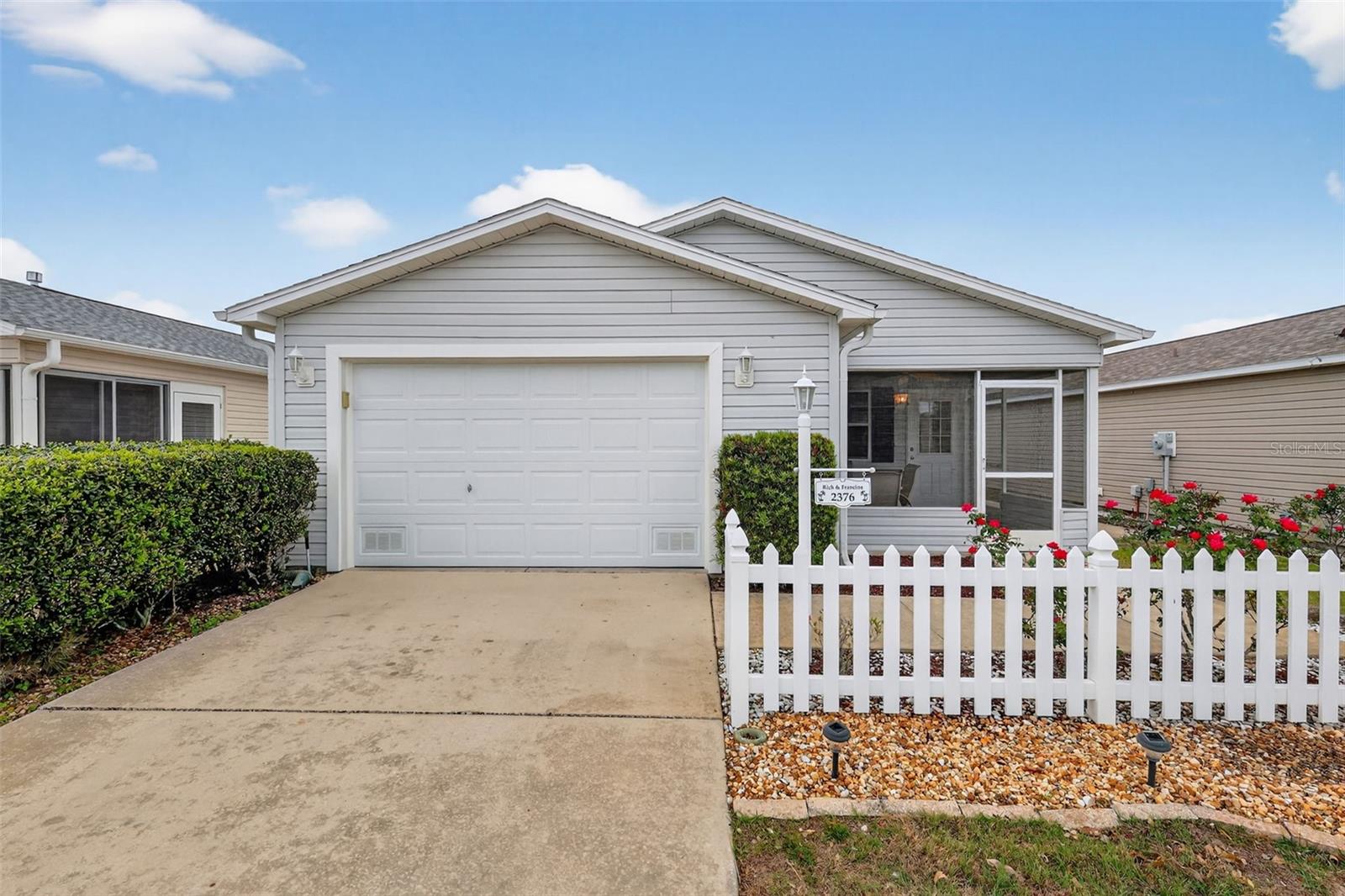 Enjoy the ease of Florida living in this WONDERFUL, TURNKEY + GOLF CART 2/2 Colony Patio Villa featuring a SCREENED LANAI and SIDE PATIO - IDEALLY LOCATED in the Village of Duval - between County Roads 466 and 466A and JUST MINUTES from BOTH Lake Sumter Landing and Brownwood Paddock Squares with shopping, dining, and nightly live entertainment! ROOF 2022. LOW BOND $5,297.68. This AMAZING home is MOVE-IN READY! Just bring your toothbrush! As you approach this LOVELY home, you can’t help but notice the CHARMING white picket fence and LOW-MAINTENANCE STONED landscaping beds. Step into the SCREENED LANAI and enter through the front French door into the OPEN CONCEPT layout of the living, dining, and kitchen. The AMAZING kitchen showcases WOOD cabinetry, NEUTRAL countertops, GAS cooking, PANTRY closet, SOLAR TUBE, EAT-IN breakfast bar and DINETTE area for casual dining. A set of sliding glass doors from the dining area leads to the SPACIOUS SIDE PATIO —ideal for grilling and ENTERTAINING friends and family! Back inside, the primary suite features a GENEROUS WALK-IN closet and an en-suite bathroom with WOOD cabinetry, NEUTRAL countertop, and a WALK-IN shower. Bedroom two offers a built-in closet, while the second bathroom features a WOOD vanity with NEUTRAL top, tub and shower combination, and a hallway LINEN closet. Completing the package is an 18’x22’ one and a half car garage with a CONVENIENT laundry area, UTILITY SINK, shelving, storage cabinets, and PLENTY of space for a car and golf cart! DON’T MISS YOUR OPPORTUNITY TO MAKE THIS FANTASTIC HOME YOUR OWN! The Village of Duval is IDEALLY LOCATED by BOTH Lake Sumter Landing and Brownwood Paddock Squares; Surrounded by popular recreation centers, including SeaBreeze Regional Recreation Center; Duval, Truman, Sterling Heights, and Colony Cottage Recreation Centers; A short golf cart ride to DOZENS of Executive Golf Courses as well as Havana, Cane Garden, Evans Prairie, Mallory Hill, and Bonifay Country Clubs and Championship Golf Courses; JUST MINUTES to either 466 or 466A with abundant shopping, dining, banking, medical, and more! PLEASE WATCH OUR WALKTHROUGH VIDEO of this INCREDIBLE TURNKEY HOME and call today to schedule your Private Showing or Virtual Tour!