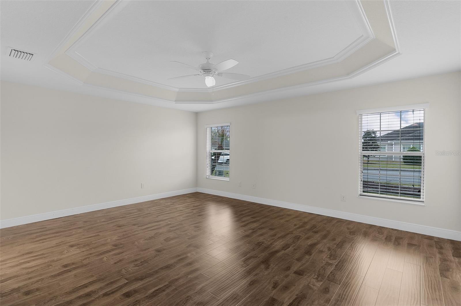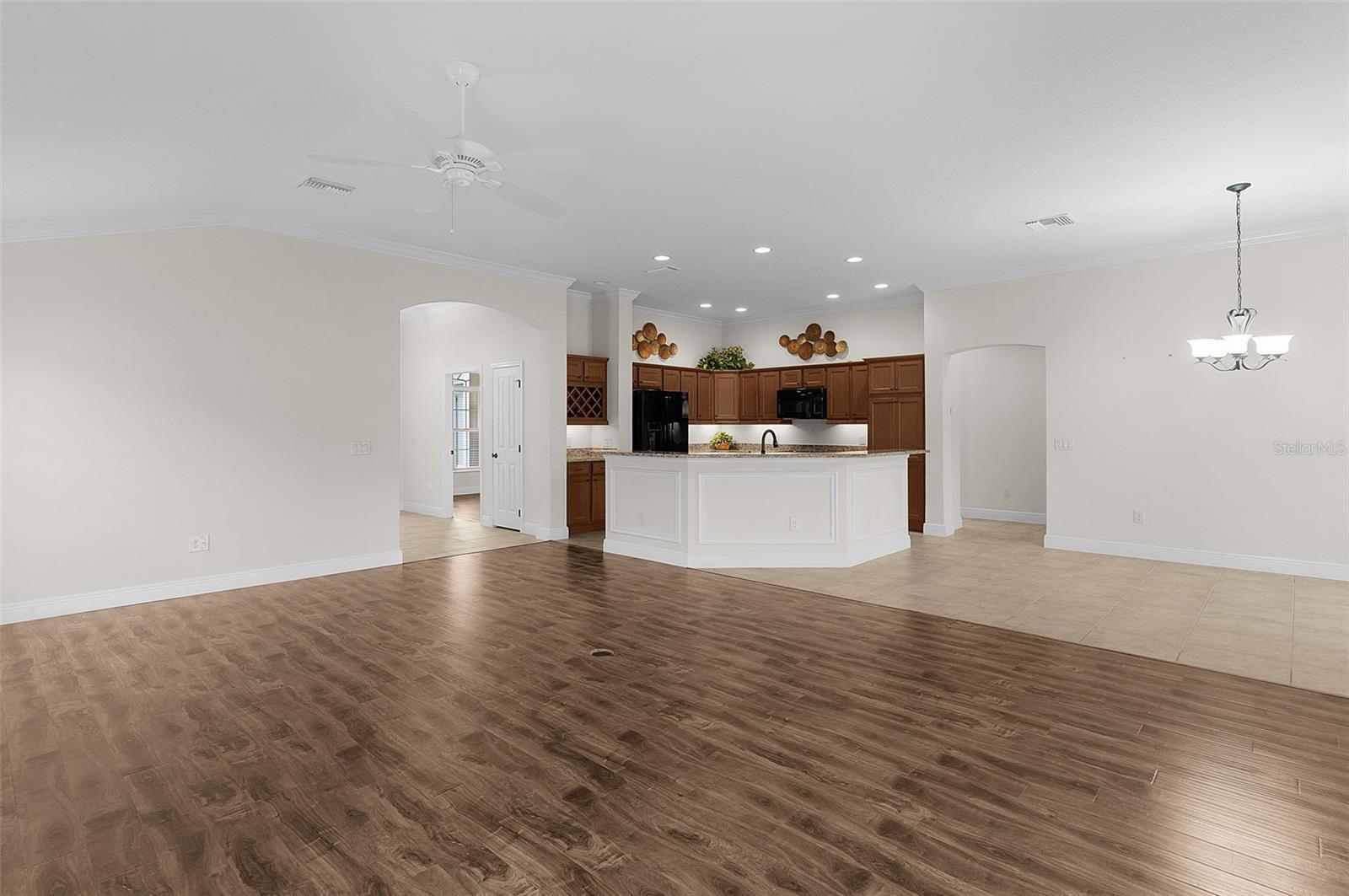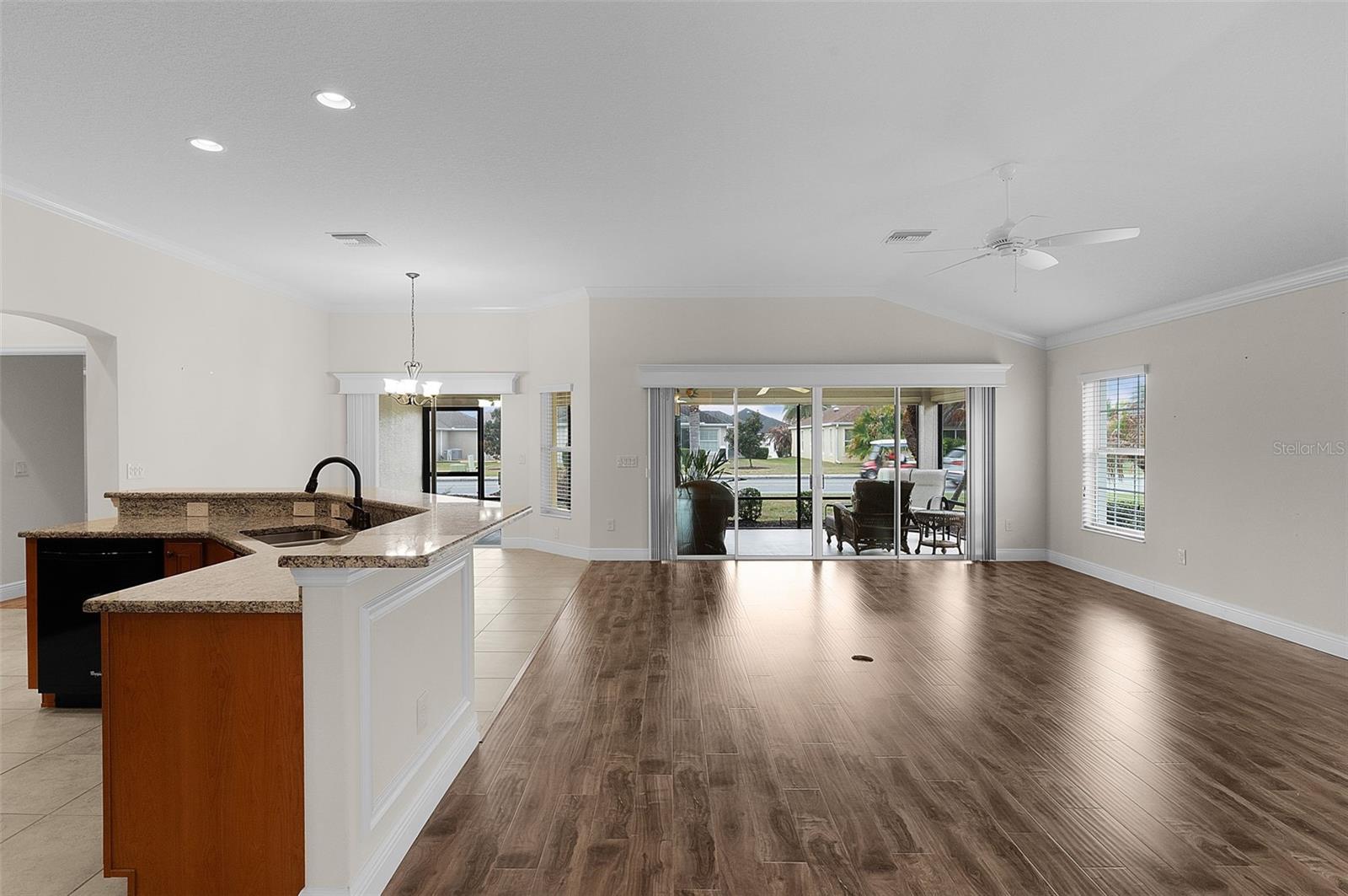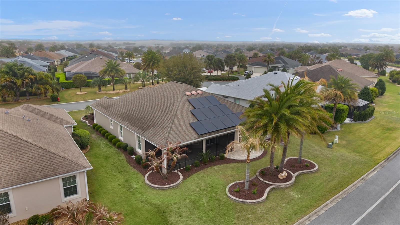 NO BOND • SOLAR PANELS (2025) • NO REAR NEIGHBORS • STRETCHED GARAGE & BEDROOM • NEW HVAC & WATER HEATER (10-YEAR TRANSFERABLE WARRANTY) Welcome to this beautifully maintained 3-bedroom, 2-bath Aspen model in the highly sought-after Village of Hillsborough—where thoughtful upgrades, privacy, and style come together. From the moment you arrive, the home’s curb appeal shines with refreshed, manicured landscaping (recently updated after the 2026 freeze), a designer paver driveway with diamond inlay, and added front porch rain gutters. Step inside to an inviting open floor plan featuring tile flooring, high knock-down ceilings (no popcorn here!), and a welcoming entry with a convenient hall closet. The spacious main living area boasts rich hardwood floors and abundant natural light pouring in through double sliding glass doors. Enjoy peaceful mornings or relaxing evenings on the screened lanai with painted concrete flooring, where you can take in serene views of swaying palm trees—and best of all, no homes behind you. The kitchen is both stylish and functional, offering: • Granite countertops • Maple cabinetry • Dark appliances, including a French door refrigerator • Built-in coffee/wine bar • Two-tier Lazy Susan for added storage A pocket door creates a private guest suite, complete with a generously sized bedroom and nearby linen closet—perfect for hosting family and friends. The primary suite is a true retreat, featuring a tray ceiling and ample space to unwind. The en-suite bath includes: • Dual sinks with granite counters • Walk-in tile Roman shower • Private water closet with pocket door • Large walk-in closet plus additional linen storage Additional highlights include: • Indoor laundry room with upper cabinets and deep utility sink • Expanded garage (4’ side stretch) with epoxy floors and storage cabinetry and water softener • Bedroom expansion (2’ front stretch) for added comfort • Screened lanai with included furniture—ideal for entertaining Enjoy energy-efficient living with a fully paid solar panel system already in place. Conveniently located less than 2 miles from Brownwood Paddock Square and just 1 mile from Eisenhower Recreation Center, you’ll have easy access to golf, pickleball, pools, dining, shopping, and all that The Villages lifestyle offers. This is more than a home—it’s the lifestyle you’ve been waiting for. Schedule your private showing today!