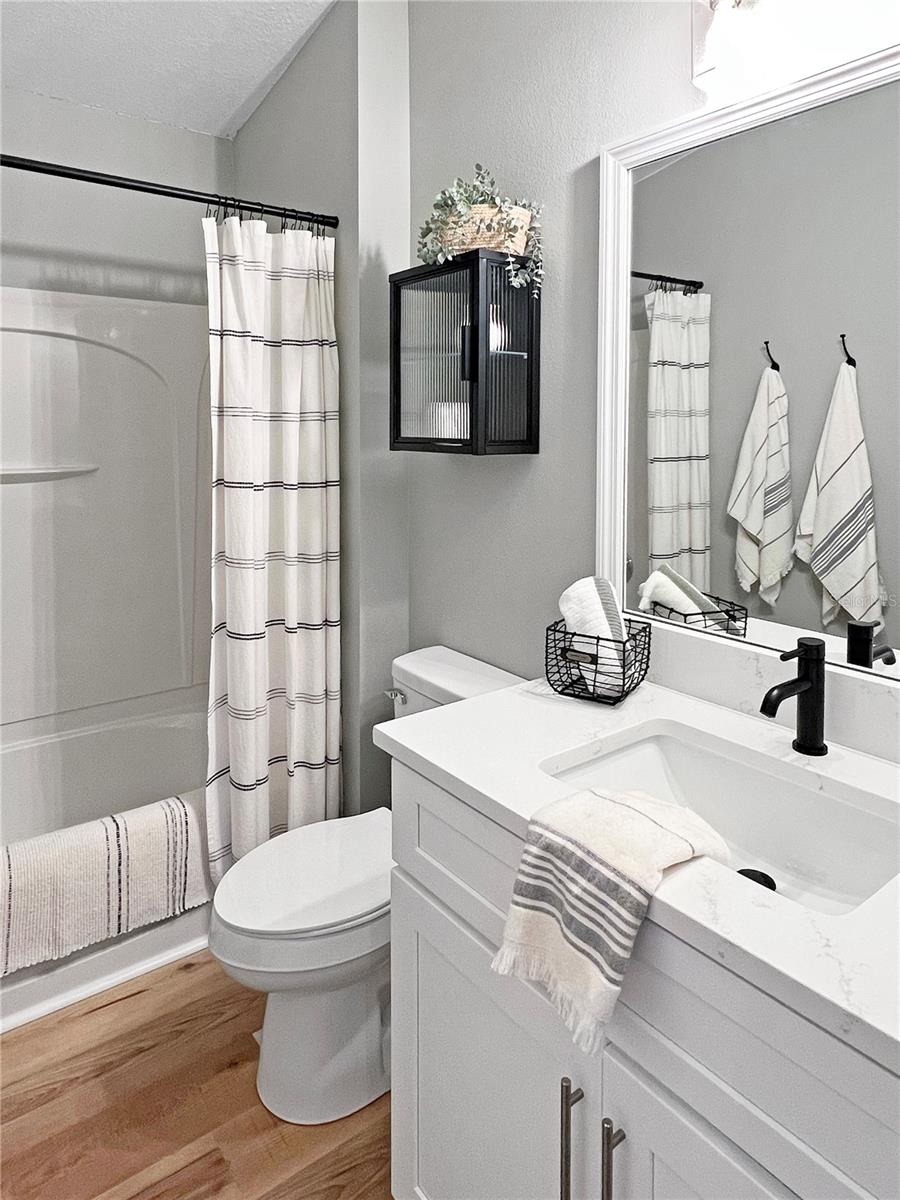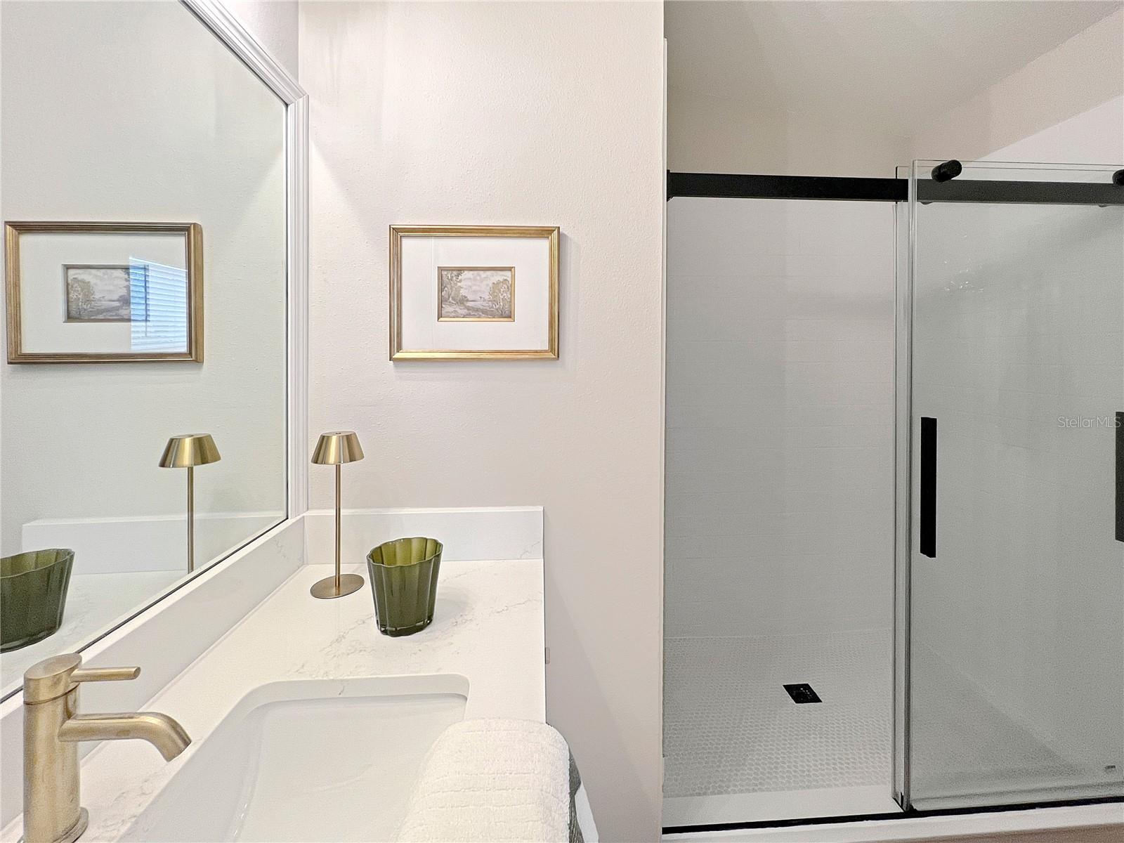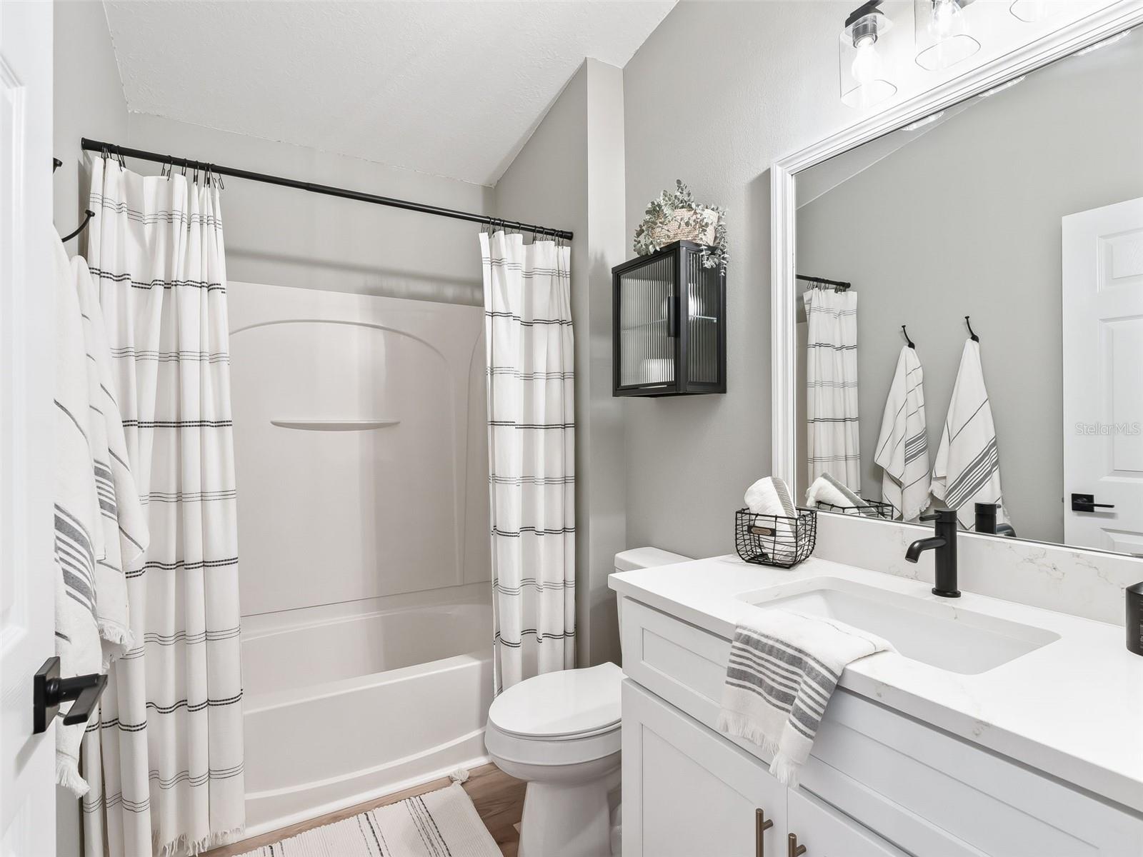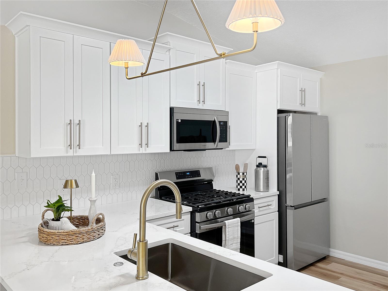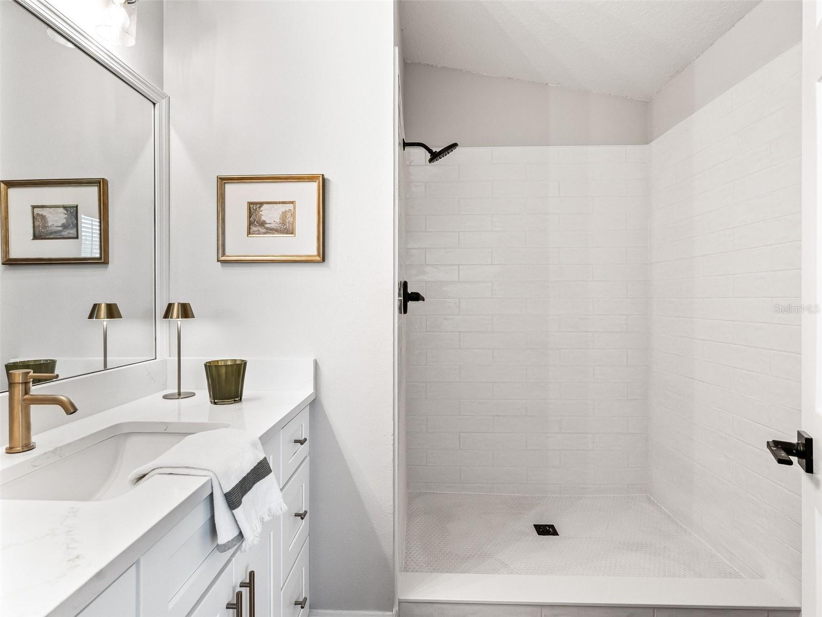 BOND PAID • BETWEEN THE 66's • NEWLY UPATED...Welcome to Completely Renovated Colony Villa in the highly sought-after Village of Caroline—just a 4-minute golf cart ride to Lake Sumter Landing Market Square! Perfectly positioned between the 466’s, this move-in ready home offers the ideal blend of modern style, comfort, and unbeatable convenience. Step inside to a bright and open floor plan featuring volume ceilings, neutral custom paint, and elegant HAND-TROWELED ceilings. Luxury Vinyl Plank flooring flows throughout the home—NO CARPET—complemented by all-new designer light fixtures for a clean, contemporary feel. The stunning, fully updated kitchen is a true showstopper, boasting 36” staggered white shaker cabinetry, QUARTZ countertops, stainless steel appliances, a large undermount single basin sink with a gold faucet, and a custom tiled backsplash. The spacious primary suite offers a relaxing retreat with a large walk-in closet and a beautifully renovated en-suite bath featuring a CUSTOM TILED WALK-IN SHOWER with frameless glass doors and a quartz vanity. The interior laundry is conveniently tucked away in a private kitchen closet. Major updates provide peace of mind, including a new roof (2020), HVAC (2023), and water heater (2026). Enjoy year-round relaxation in the enclosed front lanai with glass windows (2023), creating a private and versatile space. Located just 0.2 miles from the Caroline Recreation Center for your Adult Pool. The Village of Caroline is known for its close location to the Mallory Hill Country Club and Lake Sumter Landing for nightly entertainment, you’ll be surrounded by everything The Villages lifestyle has to offer. With recreation, golf, shopping, and dining all nearby, you’ll never run out of things to do! This beautifully updated villa offers the ultimate Villages lifestyle—don’t miss this rare opportunity!