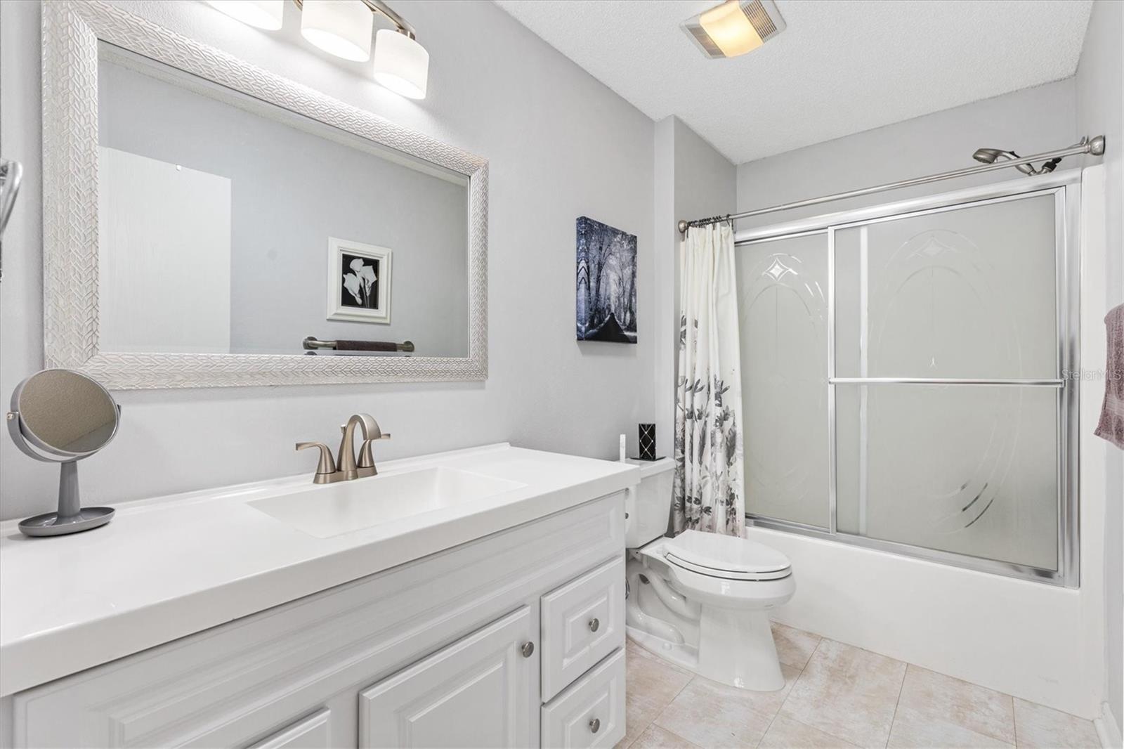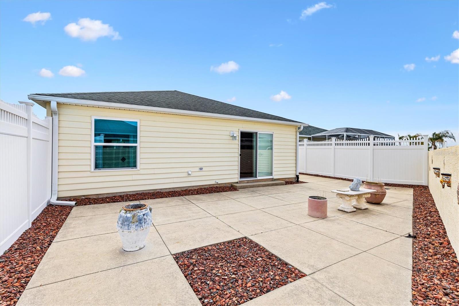 BOND PAID • UPDATED KITCHEN W/ QUARTZ • ENCLOSED LANAI INDOOR FLEX SPACE – Marathon Courtyard Villa in the Village of Santiago! Located in the established Village of Santiago in The Villages, Florida, this Bond Paid 2 Bedroom, 2 Bathroom Marathon Courtyard Villa offers a combination of thoughtful updates, flexible living space, and a low maintenance lifestyle, perfect for a winter home or full time residence. One of the standout features of this home is the enclosed lanai that is level with the main living area, creating a true flex space or Florida room. Louvered style sliding doors provide privacy while maintaining a seamless connection between the indoor living space and the private courtyard. The home features four strategically placed solar tubes that channel in energy-efficient natural sunlight to the kitchen, living area, and both the guest and primary bathrooms, allowing most homeowners to enjoy bright, naturally lit spaces throughout the day without needing to turn on electric lights. The spacious kitchen has been tastefully updated with recently installed quartz countertops, a gas range, and newer dark stainless-steel appliances. Upgraded cabinetry with pull out shelving enhances both storage and convenience. The main living area features laminate flooring, and there is no carpet anywhere in the home, creating a clean, cohesive, and easy maintenance environment. The primary suite offers comfort and functionality with a large, tiled step in shower with bench, while the guest bathroom features a glass enclosed tub and shower combination, along with upgraded cabinetry and recently updated countertop and sink, and toilet. Additional upgrades include window shades, updated lighting fixtures throughout, newer windows, and a newer sliding door leading to the outdoor space. When hosting family and friends, they can enjoy the privacy of a full guest suite, separated from the main living area by a pocket door, another thoughtful and well-designed feature of this home. Step outside to enjoy the low maintenance private courtyard, offering a quiet and comfortable setting to relax, entertain, or enjoy Florida’s year-round outdoor lifestyle without the added expense of rear lawn maintenance. Mechanical updates provide added peace of mind, including a roof replaced in 2018 and HVAC system installed in 2019, along with a newer, matching washer and dryer pair. Located in the Village of Santiago, this home offers convenient golf cart access to nearby executive golf courses, recreation centers, shopping, dining, and all that The Villages lifestyle provides. Nearby Village amenities include La Hacienda Recreation Center (0.8 miles, 3–5 minutes by golf cart), Chula Vista Recreation Center (1.5 miles, 5–7 minutes by golf cart), Paradise Recreation Center (1.9 miles, 6–8 minutes by golf cart), and Spanish Springs Town Square (2.3 miles, 8–10 minutes by golf cart). With its bond paid status, updated kitchen, flexible enclosed lanai, and private courtyard setting, this Marathon Courtyard Villa presents an excellent opportunity for full time living, seasonal use, or investment property in the most sought-after 55+ golf community. Schedule your private showing today.