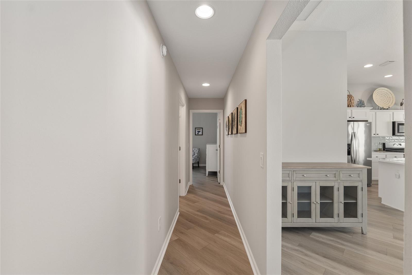 **RARE & STUNNING!!** 3 Bed / 2Bath "MELROSE" Courtyard Villa in desirable Village of Marsh Bend. Beautiful low-maintenance landscaping & updated hardscaping greets you upon approach to this SPACIOUS 1642 sq. ft. home & built in 2019. This sought-after villa features an OPEN FLOORPLAN & Loads of UPDATES throughout including: LUXURY VINYL PLANK flooring & Repainted Interior throughout, QUARTZ Countertops with Updated Sinks & Faucets in Kitchen & Both Bathrooms, Inside Laundry Room with Shelving, Double Closet at Entry for Coats/Storage, LARGE Kitchen PANTRY with Shelving & Drawers, Stainless Steel Appliances with NATURAL GAS Range/Heat, Glass Tile Backsplash, Recessed Lighting in Dining Area, Primary Bedroom Walk-in Closet with Shelving & Drawers. All this in a floorplan that is ideal for comfort and privacy with both Guest Rooms and Guest Bath tucked for privacy. Primary Suite offers Tray Ceiling, Ensuite Bath, Dual Sinks, Tiled ROMAN SHOWER and Private Water Closet. LARGE ENCLOSED PRIVATE Courtyard with plenty of ROOM FOR POOL! 8' Tall Privacy Wall to ensure peace and a blank canvas yard for you to create your own private backyard oasis! This lovely villa absolutely SPARKLES with bright light coming into all areas to highlight the SPOTLESS and NEUTRAL decor and color palette throughout. This very rare and unique floorplan is sure to please with Kitchen/Living/Dining combo space with Large Kitchen Island perfect for entertaining and comfortable living. ADDED BONUS is the FULL 2 CAR GARAGE w/ **RARE** 18' Wide Door, Wall Shelving, Attic Pulldown Stair Sccess, & Wood Flooring in Attic for Storage. Garage Dimensions: 22' wide x 20' deep. The HIGHLY SOUGHT AFTER Village of Marsh Bend is one of the most unique of the villages as it places residents in the heart of a variety of amenities. With walking/biking trails winding throughout the neighborhoods and paths of Marsh Bend Trail, residents will have daily access to nature's most picturesque views. The Hogeye Preserve and Pedestrian Path offers tranquil views of majestic oaks and wildlife. Close proximity to Marsh View Pitch & Putt, Edna's n The Green, Cattail Recreation area and a number of other activities makes Marsh Bend very desirable to residents. To the East side of Marsh Bend lies more opportunities for fun and games with Everglades Recreation Complex providing softball and soccer fields, basketball and pickleball courts, as well as the first ever RC boat dock and RC car range in The Village. Along with a variety of neighborhoods, activities and great views, Marsh Bend is home to Magnolia Plaza offering convenient access to grocery stores, shopping and banking essentials. The Village of Marsh Bend has so much to offer and will be a great home for you in the center of all the fun! Tax Line reflects Sumter Co. taxes only. Annual CDD fees include: Fire: $320.71/year. Villages Bond: $1,289.83/year. Villages Maintenance: $535.99/year. ROOF/2019. HVAC/2019. HWH/2019. APPLIANCE/2019. Bond Balance: $18,031.14.