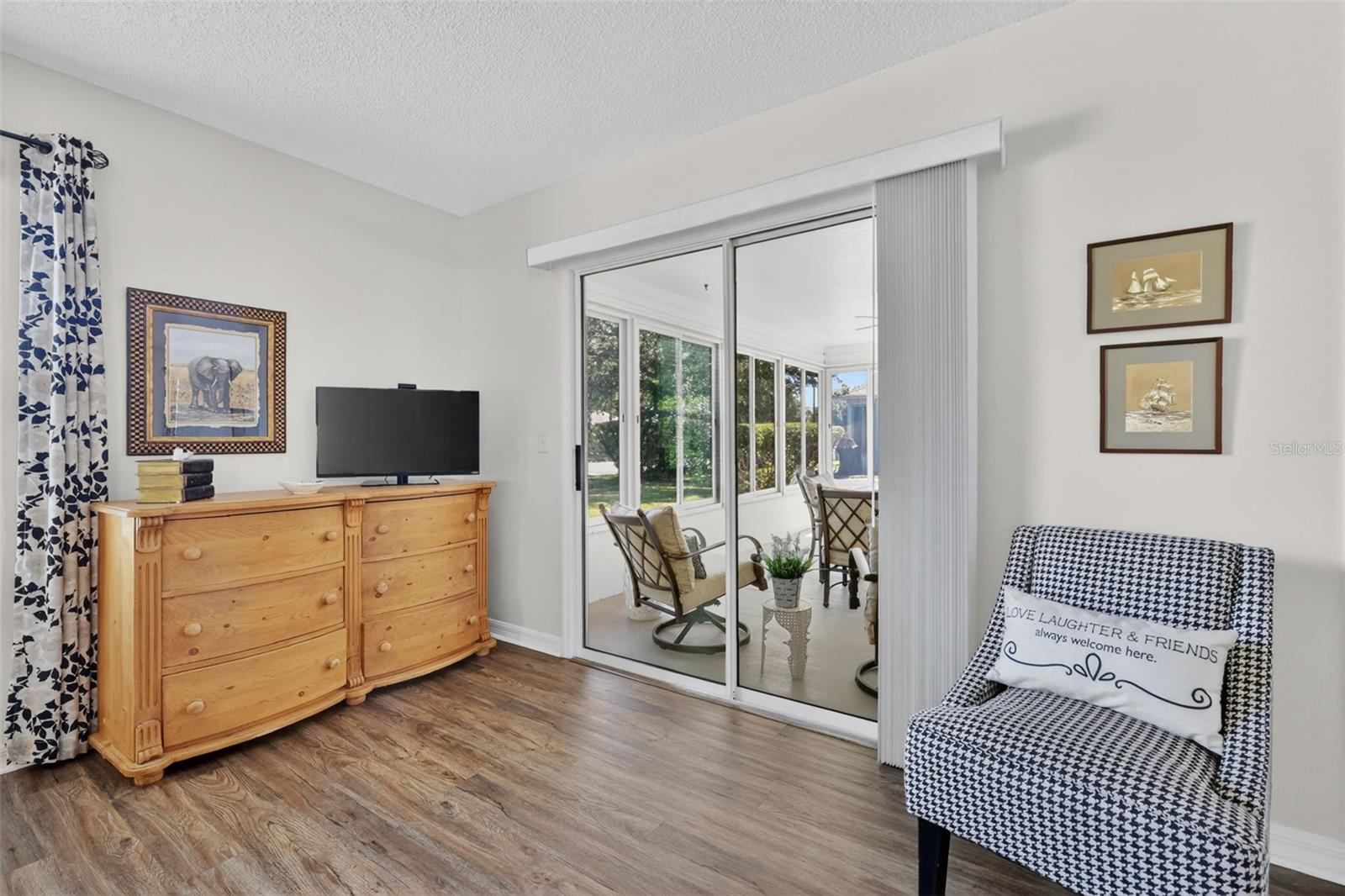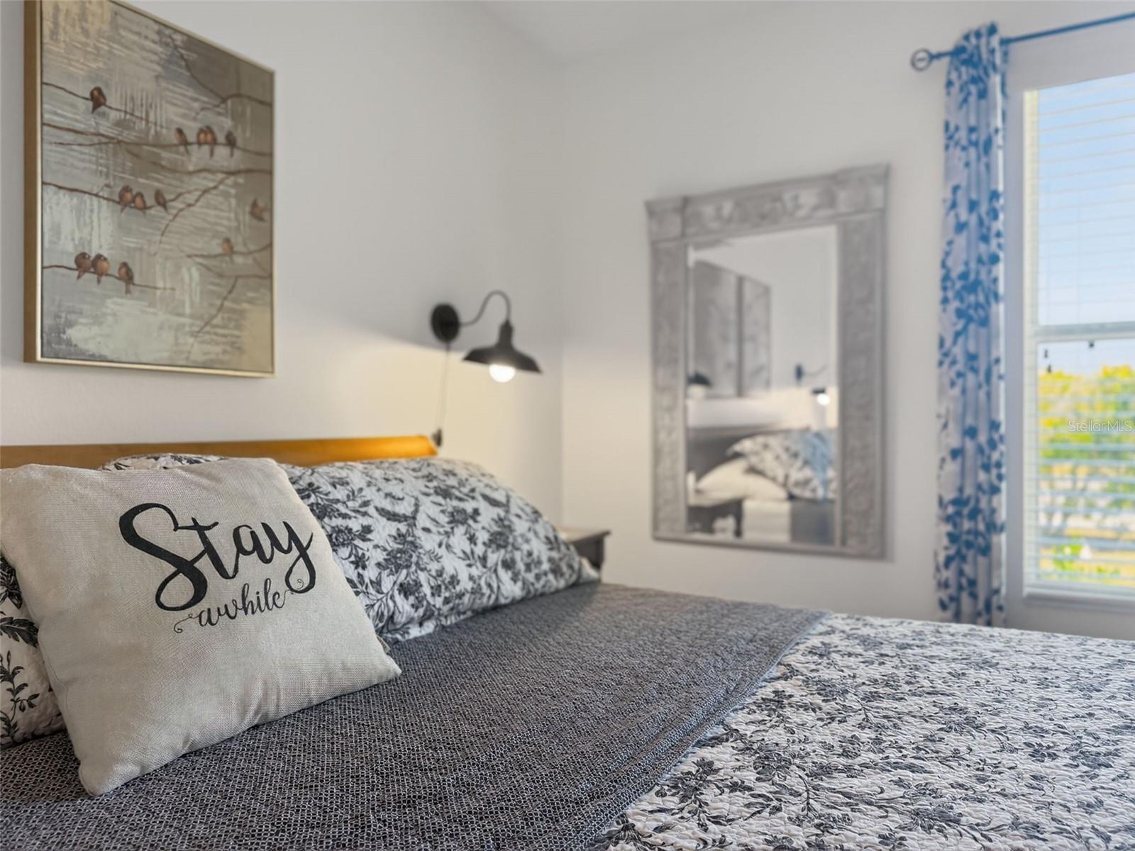 • NEW ROOF (4/26)! • LOW BOND! • Experience the charm of “STAY AWHILE COTTAGE”, a MUST SEE, beautifully UPDATED, TURNKEY with GOLF CART, 2/2 Austin model perfectly situated on a quiet cul-de-sac road in the highly sought-after Village of Duval! This PRIME LOCATION is a quick golf cart ride to BOTH Lake Sumter Landing and Brownwood Paddock Squares, just a 1/4 mile to Seabreeze Regional Recreation Center, and minutes from seven executive and championship golf courses! An OPEN CONCEPT floor plan welcomes you into the SPACIOUS main living area where gorgeous LUXURY VINYL PLANK flooring (2023) flows seamlessly throughout - No carpet! - The interior is bathed in natural light thanks to THREE SOLAR TUBES and shines with FRESH NEUTRAL PAINT and UPDATED LIGHTING INSIDE and OUT. The bright, updated kitchen sports BRAND-NEW(2026) QUARTZ countertops, a full QUARTZ backsplash, a deep stainless sink with designer faucet, and WOOD cabinetry with PULL-OUT shelving in the lower cabinets. The primary suite boasts a WALK-IN closet and convenient sliding glass doors to the lanai while its en-suite bathroom features a WOOD vanity, WALK-IN shower, and a LINEN closet. The SPLIT FLOOR PLAN places the second bedroom and bath across the home, providing exceptional PRIVACY. Bedroom two offers a WALK-IN closet and the additional bathroom is well-appointed with WOOD cabinetry, makeup vanity, tub and shower combination, and a hall LINEN closet. Relax in the inviting OVERSIZED, ENCLOSED LANAI featuring tinted acrylic windows and screens and comfortable furnishings—perfect for year-round enjoyment! Enjoy peace of mind with major mechanical updates, including a BRAND NEW architectural shingle ROOF (2026) and a RECENTLY RENEWED HVAC system (2024) featuring an integrated WHOLE-HOUSE Ultra Violet air purifier for superior air quality. Functional additions include a NEW WASHER, SMART IRRIGATION SYSTEM, and a NEW EPOXIED GARAGE FLOOR. “Stay Awhile Cottage” is a quality turnkey property, from the fully supplied kitchen to the TWO king bed suites. A YAMAHA GOLF CART is also INCLUDED—perfect for cruising to the nearby town squares for nightly live entertainment and world-class dining. With a significantly low bond balance, “Stay Awhile Cottage” is a high-performing asset with a documented lucrative short-term rental history and a consistent track record of 5-star reviews. If you wish, the seller can assist the buyer during their startup, providing the ability to leverage the existing 5-star rating and proven local resources. Whether you are looking for a PERSONAL RETREAT or a TURNKEY RENTAL BUSINESS, this home delivers COMFORT and PROVEN VALUE in an UNBEATABLE LOCATION! DON’T MISS YOUR OPPORTUNITY to make this INCREDIBLE TURNKEY HOME YOUR OWN! Call today to schedule your Private Showing or Virtual Tour!