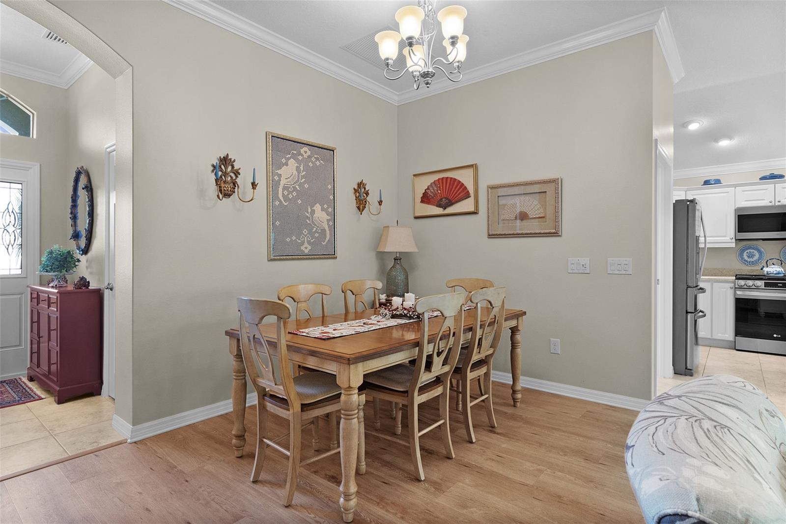 Beautifully maintained 3-bedroom, 2-bath home on a private corner lot in the highly desirable Village of La Belle—Location, location, location! Ideally situated near Belle Glade Championship Country Club, with a friendly neighborhood pool just down the street and Burnsed Family Recreation Center only a short golf cart ride away. Enjoy convenient access to shopping, including Walmart and Publix, as well as banks, healthcare facilities, and restaurants—all just minutes away. This home features an open floor plan with volume ceilings, crown molding, luxury vinyl plank and tile flooring, and an abundance of natural light. The kitchen is designed for both style and function, offering white cabinetry, stainless steel appliances, a breakfast bar, casual dining nook, and a built-in wine rack. The spacious primary suite boasts a tray ceiling, dual vanities, a walk-in tiled shower, and a custom walk-in closet. Guest accommodations include generously sized bedrooms and a newly remodeled guest bathroom. Relax year-round in the enclosed glass lanai or unwind outdoors on the pergola-covered patio, offering added privacy and comfort. Additional highlights include a 2-car garage plus golf cart garage with epoxy flooring, insulated garage door, attic insulation with a solar fan for improved energy efficiency, indoor laundry with cabinetry, a Nova water filtration system, and a 4-seat Yamaha golf cart included. Most furniture conveys, making this home truly move-in ready. This property is also equipped with gas service (a rare feature in the area), with the option to convert back to electric if desired. Newer exterior paint enhances curb appeal, while convenient golf cart access makes it easy to enjoy nearby golf, recreation, dining, and everyday essentials.