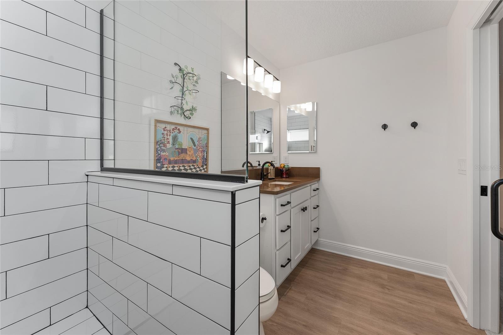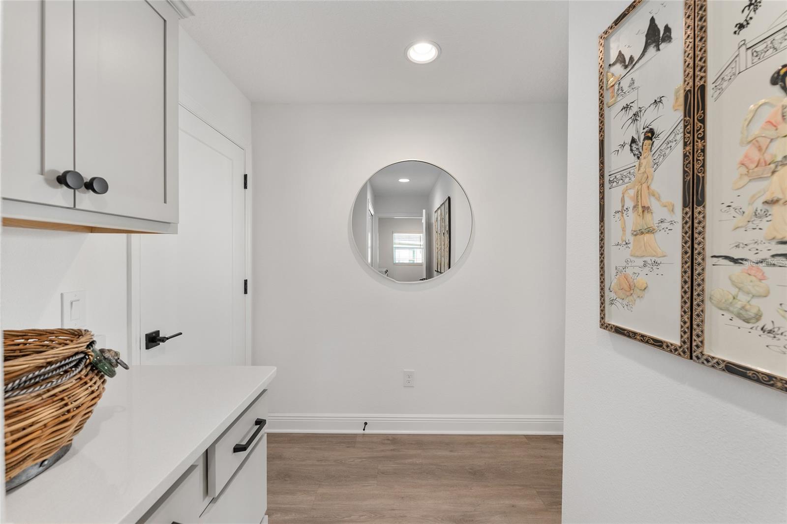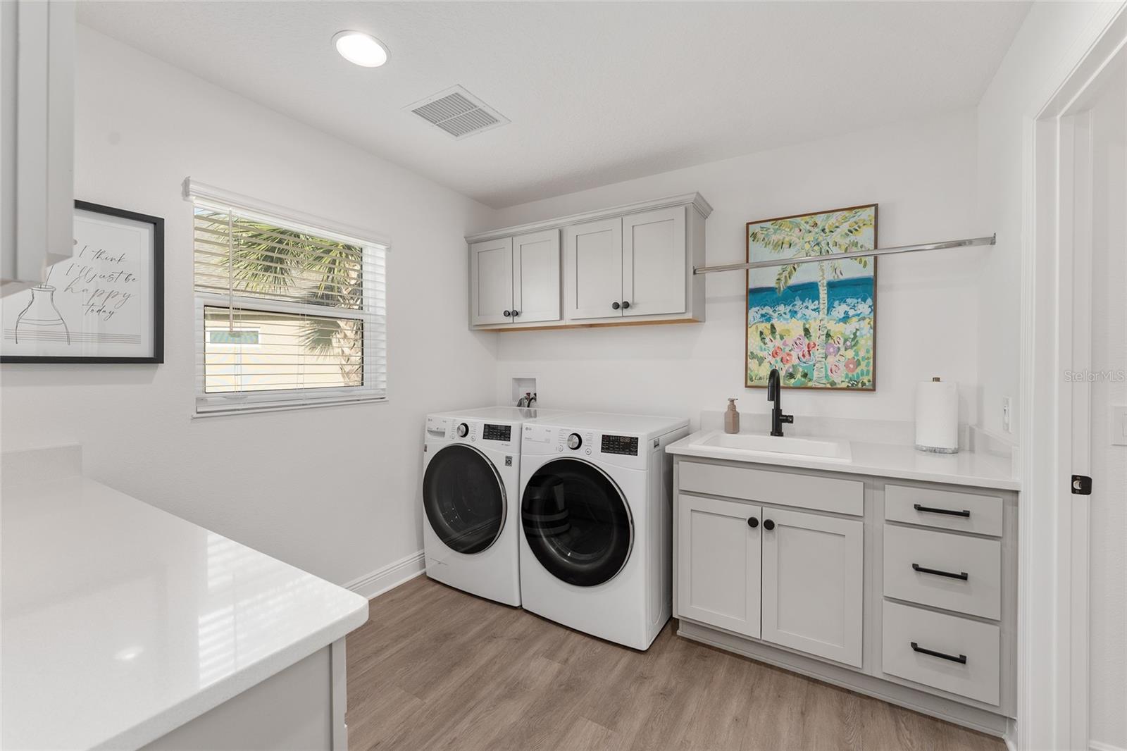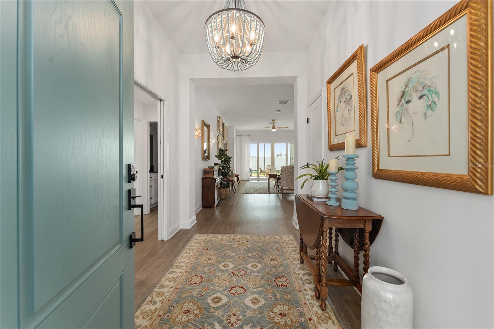 Under contract-accepting backup offers. CUSTOM DESIGNER STRETCHED ZINNIA | 4 BEDROOMS | 3.5 BATHS | 2 CAR + GOLF CART GARAGE | LARGE DESIRABLE PRIVATE LOT | SOUTHERN OAKS – ST. CATHERINE Look no further—this ONE-OF-A-KIND, CUSTOM STRETCHED ZINNIA (Songbird) cannot be replicated in new construction and is loaded with high-end upgrades throughout! Situated on a spacious cul-de-sac lot in the highly desirable Village of St. Catherine, this block & stucco home offers exceptional space, function, and design. Step inside to a welcoming foyer with coat closet and privacy pocket door leading to spacious two guest suites—each with its own bathroom—perfect for family and visitors. The open-concept living and dining area is light, bright, and beautifully finished with QUARTZ countertops throughout, LUXURY VINYL PLANK, UPGRADED LIGHTING, CUSTOM CURTAINS to highlight the seamless indoor-outdoor living with 8' TALL sliding glass doors (8'panels vs. standard 7') opening to the expanded lanai with epoxied floor which overlooks the HUGE backyard with PRIVACY WALL. The lanai is already plumbed for your addition of an outdoor kitchen and the private backyard is perfect for that large pool oasis you've been dreaming of! The chef’s kitchen is a gourmet delight featuring HIGH END CAFE' APLIANCES (GAS STOVE), a large island with abundant storage, and is adjacent to the butler’s pantry hallway with additional cabinetry and closet. A separate laundry room with sink, quartz countertops and cabinets plus a rare 10' x 10' INTERIOR STORAGE ROOM make everyday living easy and clutter free. The luxurious primary suite with bath is a private retreat with spacious layout, expanded window, designer drapes, tray ceiling, walk in custom closet, dual vanities, private water closet and a stunning roman shower. A fourth bedroom and roomy half bath provide additional flexibility for guests or office space. The spacious garage provides plenty of room for golf cart and storage, pull down attic stairs and looks so pristine with epoxiied floors. EXTENSIVE CUSTOM EXPANSIONS NOT AVAILABLE THROUGH THE BUILDER INCLUDE: • 9' x 40' Side extension • Added bedroom, half bath, large laundry room & storage closet • Expanded golf cart garage (9'4" x 16') • Garage, dining & living room stretches • Enlarged lanai (rear & side expansion) • Bedroom 3 extended 2 feet + additional window in primary ADDITIONAL FEATURES: • 65" Samsung Frame TV (4K QLED Smart TV) included—displays artwork when not in use (conveys with house) • Whole-house water softener & filtration system • SMART HOME + ETHERNET PRE-WIRE - Designer touches are too many to list!! PRIME LOCATION: Less than 1 mile to the popular Sawgrass Grove marketplace and Ezell Regional Rec Center! Just 3.3 miles to Eastport Town Center and 6.7 miles to Brownwood Paddock Square, Southern Oaks Championship Golf Course and much more!!! Will not last long - A Beauty Priced to sell!!!!