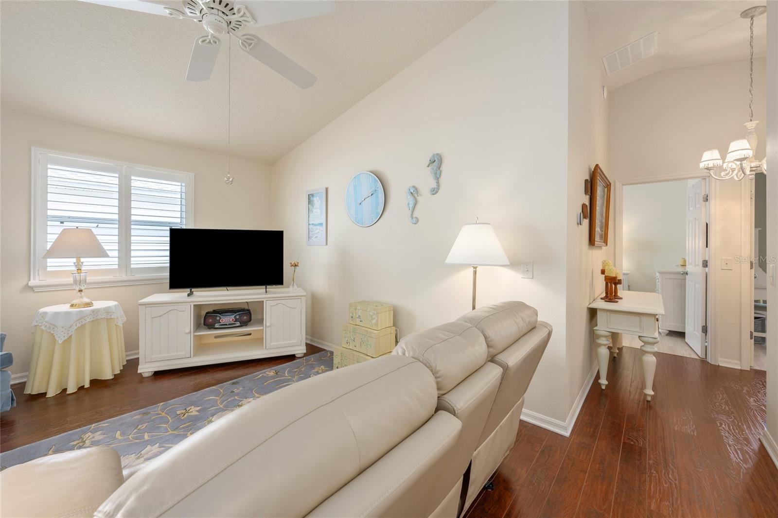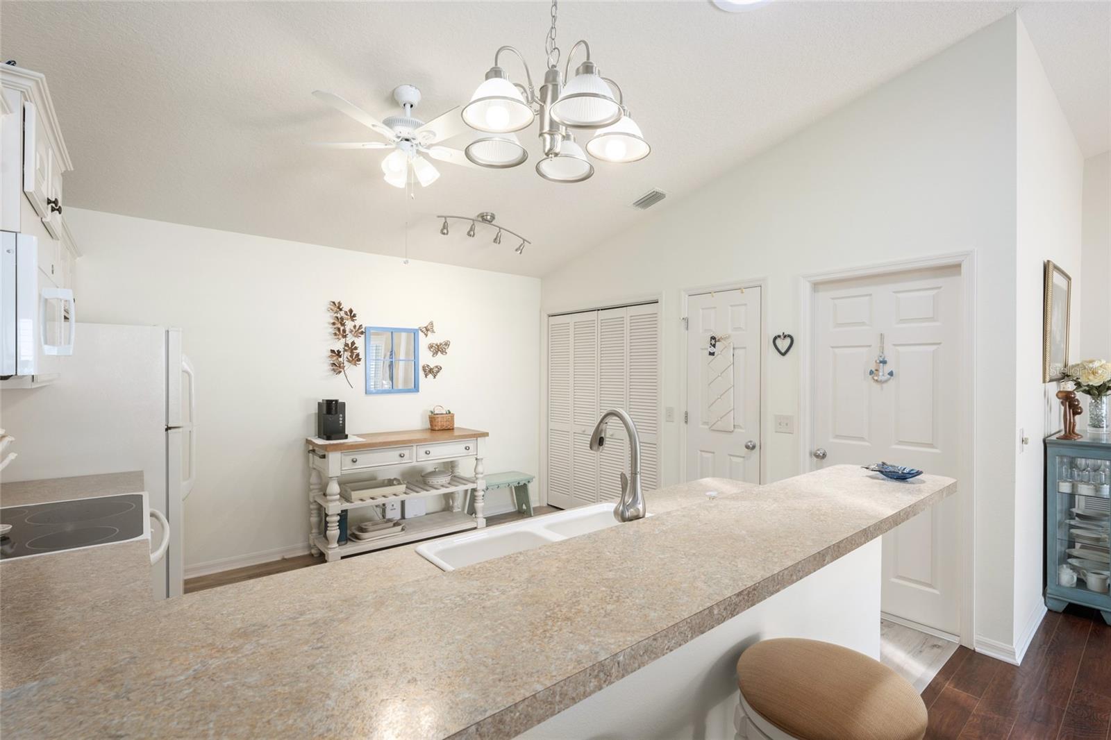 Village of St Charles/Hallandale Villas – Colony Patio Villa with VAULTED CEILINGS & Ceiling Fans! – BOND IS PAID!! – Roof 09/2024 – HVAC 08/2023 (with Ecobee Thermostat) - Electric Water Heater 10/2021 – Florida Room (Enclosed Front Lanai) with Vaulted Ceiling & Ceiling Fan - Pro Life WATER FILTRATION SYSTEM & SOFTENER - PLANTATION SHUTTERS - NO Carpet – Indoor Laundry (LG TROMM Washer & Dryer on Pedestals) – Bedroom 2 with Built-in Murphy Bed – Built-in Storage Shelving in Garage!! – This Villa has an Expanded Front and Side Patio Custom Painted & Textured, Rock Mulch in the Landscape Beds, Gutters & Downspouts, 2-Zone Irrigation with Rain Sensor – The Kitchen has an Indoor Laundry Closet, Pantry Closet, Breakfast Bar, Additional Lighting, Raised-Panel Cabinets with Crown Molding & Pull-out Shelves – Primary Bedroom with Walk-in Closet and En Suite Bath. Barn door entry to Bath, Step-in Shower with Solid Surface Walls & Corner Bench Seat with Shampoo Niche, Grab Bar, Rain Shower Head, Glass Panel – Bedroom 2 with Queen-size Built-in Murphy Bed, Ceiling Fan & Closet – Hall Linen Closet and Bath 2 with Tub/Shower Combo -- This Cute with its Bond Paid, and 2024 Roof, 2023 HVAC & 2021 Water Heater is s GEM that you don’t want to miss!.. check out the video on-line!