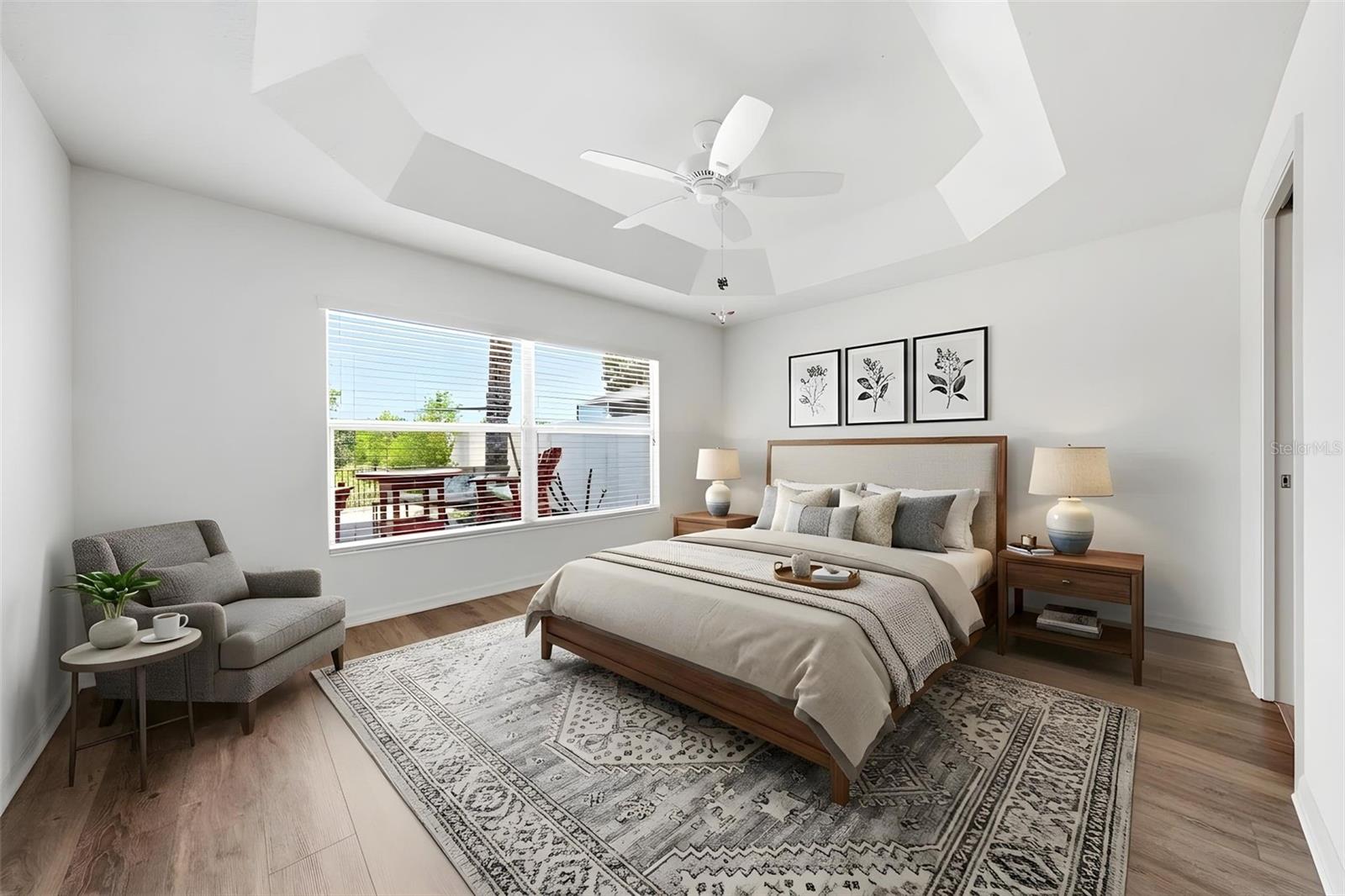 One or more photo(s) has been virtually staged. This is the one you've been WAITING to come on the market, here it is! WELCOME to the Reagan Villas; this ONE-OWNER home HAS the best location with a WATER VIEW! Overlooking approximately a 2-acre pond, you will enjoy relaxing in your personal SWIM SPA made by Spa Manufacturers, Inc. while watching the WILDLIFE! Right on the other side of the water is an EAGLE PRESERVE, giving you front-row views of incredible wildlife! This courtyard villa boasts 3 bedrooms and 2 bathrooms with a PRIVATE en-suite that has a walk-in closet, dual sinks and private lavatory. Wake up to a lovely VIEW of the WATER from your bedroom window! LUXURY VINYL PLANK flooring throughout the home, NO carpet! Large kitchen with ample cupboard space and countertops; 2 islands--excellent for food prepping and a SOLAR TUBE for NATURAL DAYLIGHT! Breakfast bar with plenty of room for your bar stools, plus a SPACIOUS dining area for a 6-chair dining table. The refrigerator and dishwasher are NEWER and upgraded--dishwasher is a newer BOSCH, the industry's QUIETEST brand. The slider door leads to your PRIVATE courtyard patio, convenient for a BBQ grill and outdoor seating. From the living room, step thru another slider to the enclosed LANAI and out to your PRIVATE SWIM SPA that came with a 20 yr WARRANTY on the shell. Or, sit by the lovely cascading WATER FEATURE surrounded by soft sand for your toes. The backyard is WONDERFULLY PRIVATE and NO GRASS to mow anywhere! Enjoy your morning coffee on the COVERED FRONT PORCH and waive to the neighbors walking by. Enjoy 2 ADDITIONAL bedrooms perfect for your guests, an office, craft room or TV room! Included with the home is a Kenmore Elite water softener. A "Yesteryear" golf cart is being sold separately, ask for details. Ad Valorem tax is: $3.490. Non-Ad Valorem is: maintenance - $411.27, Fruitland Park fire district - $344.85, bond payment - $1,043.98. Bond balance: $12,485.97.