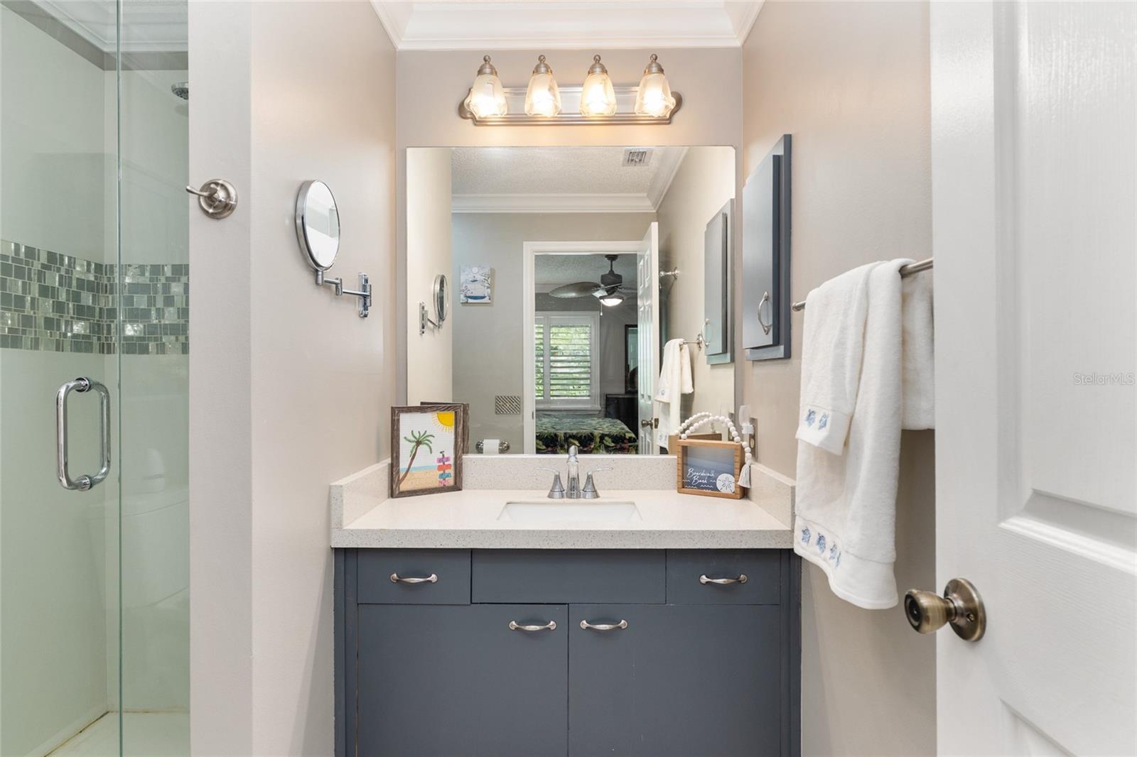Welcome to this stunning TURNKEY Baja Model home in the VILLAGE OF CORTEZ! This beautifully appointed 2 bedroom, 2 bathroom home offers 1,268 square feet of comfortable living with NO BOND and a GOLF CART INCLUDED, making it truly move-in ready from day one. RAISED CURBED ROCK LANDSCAPING and a BRICK PAVER FRONT PATIO create wonderful curb appeal and set the tone for what awaits inside. Step inside to find TILE FLOORING throughout the main living areas, VINYL FLOORING in both bedrooms, CROWN MOLDING throughout, and PLANTATION SHUTTERS on every window, giving the home a clean, polished look from top to bottom. UPGRADED FIXTURES and NEW WINDOWS (2017) add to the quality and charm throughout. The UPGRADED KITCHEN impresses with CROWNED CABINETS, GRANITE COUNTERTOPS, and UPGRADED FIXTURES. The primary suite features a WALK-IN CLOSET, SLIDING DOOR ACCESS directly to the ENCLOSED LANAI, and an UPGRADED EN SUITE PRIMARY BATHROOM complete with QUARTZ COUNTERTOPS and a TILED WALK-IN GLASS SHOWER. The guest bedroom offers a BUILT-IN CLOSET, and the guest bathroom is appointed with GRANITE COUNTERTOPS and a TUB/SHOWER COMBO. A SLIDING DOOR off the dining area opens to a SIDE PATIO featuring a PERGOLA AND DECK, perfect for morning coffee or evening entertaining. A second SLIDING DOOR leads to the ENCLOSED LANAI for seamless indoor-outdoor living. The ENCLOSED LANAI flows effortlessly into a PRIVATE BACKYARD oasis featuring a BRICK PAVER PATIO, CURBED LANDSCAPING, and a PRIVACY WALL for the ultimate in outdoor privacy and relaxation. The 1.5 CAR GARAGE features LAUNDRY, BRAND NEW WASHER & DRYER, and EXTRA STORAGE CABINETS, keeping everything neat and organized. Roof (2024) Enjoy all The Villages lifestyle has to offer with recreation centers, shopping and dining, and just minutes from Spanish Springs and Lake Sumter Landing Town Squares!
