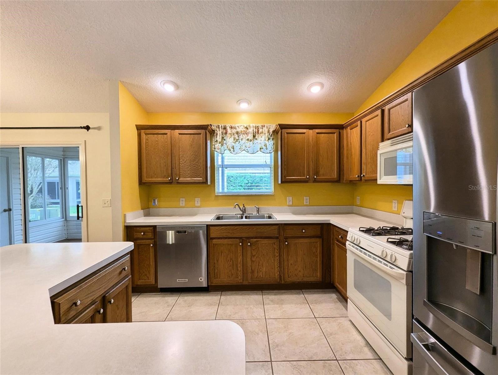 NO CARPET, NO POPCORN, VAULTED CEILING, CURB APPEAL, clean, well-maintained, 3 bedrooms (all with closets), tiled lanai, laundry room with pantry cabinets, retractable front door screen, extra wide driveway, 2-car garage, attic storage area, quiet two-stage HVAC, WIFI Features (garage door opener, thermostat, irrigation system, RING doorbell/camera), whole house water filtration, linen closets in both master bath and guest bath, coat closet, privacy hedge in back yard, NEW stainless steel refrigerator, gas appliances (range, dryer, hot water heater, furnace), Roof (2019), HVAC (2016). Hypoallergenic products used in this house for past 5 years. Beautiful Chatham Village.