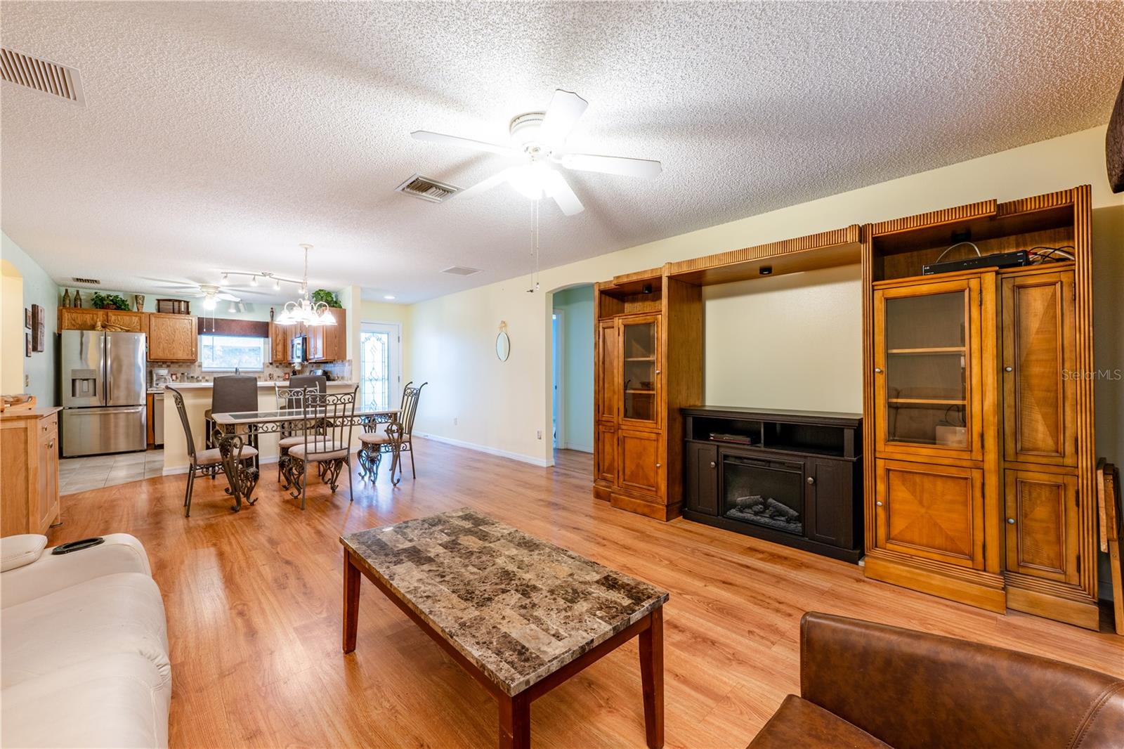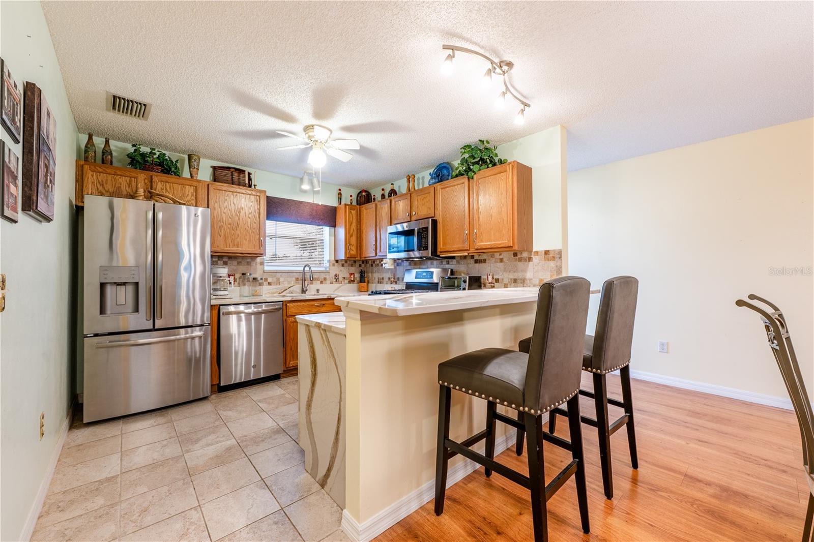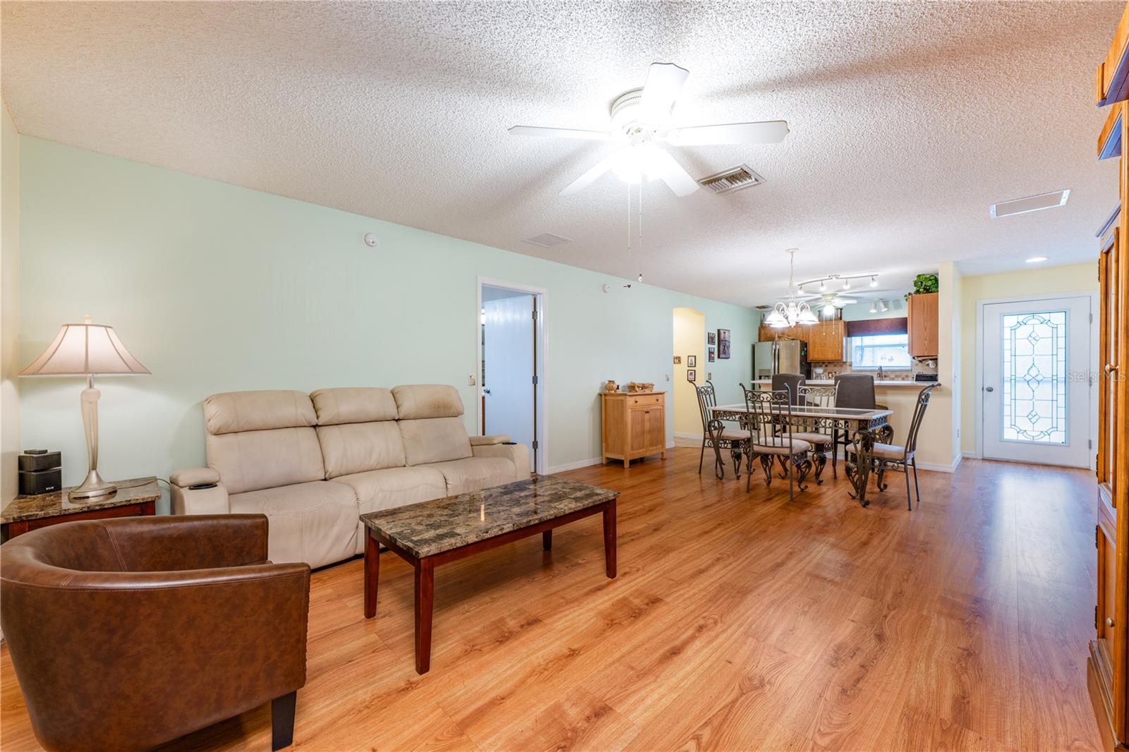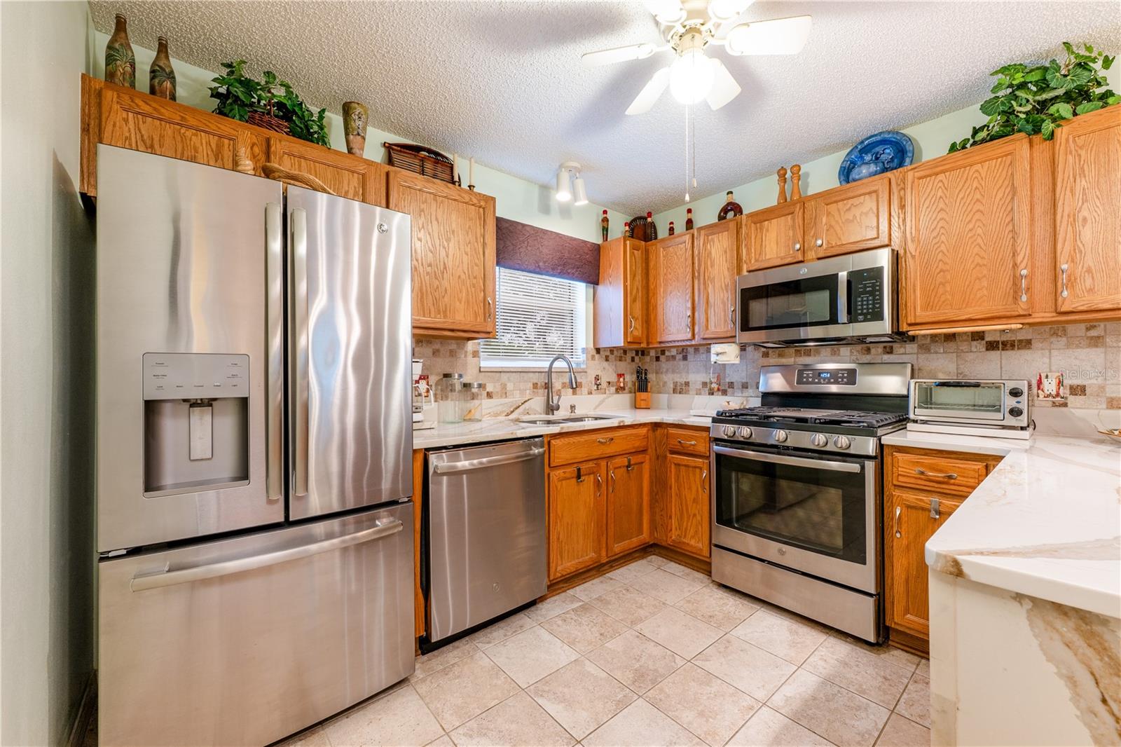 **BOND PAID** Welcome to this beautifully updated home in the highly desirable Villages of Chatham, just a few streets away from the community's Recreation Center, complete with golf, pool, restaurant, and a wide array of amenities that make the Villages lifestyle so special. This charming residence boasts a newly updated kitchen featuring sleek quartz waterfall countertops, modern stainless steel appliances, and a gas stove – perfect for the home chef. The home has also been well-maintained with a roof replacement in 2019 and a new HVAC system installed in 2022, offering peace of mind and comfort. Inside, you'll find a spacious primary bedroom with a walk-in closet, along with two secondary bedrooms, which are thoughtfully separated by a full bathroom. The standout feature of this home is the oversized Florida room with a vaulted ceiling, offering a perfect space to relax or entertain. Step outside to the separate screen-enclosed patio, where you can enjoy the best of Florida living year-round. The property features beautiful landscaping as well. Additional features include an enclosed garage for one car PLUS golf cart parking, offering convenient storage and easy access to everything the Villages has to offer. Don’t miss out on the chance to live in this prime location with all the amenities at your doorstep. This home truly has it all!