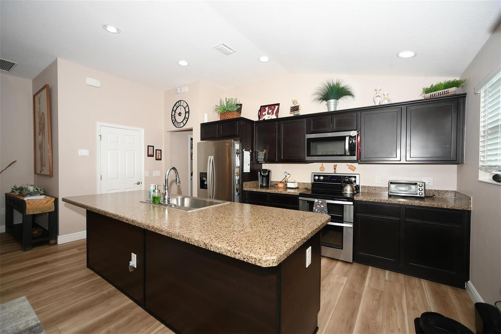 As soon as you pull in to this neighborhood, you will realize it could be home. This lovely bright villa is spacious and has a big 2 car garage as well. Close to Eastport, Everglades Recreation, Shopping and Golf. There is a nice entryway from the roomy front porch, or garage. You will love the walk in pantry and split floor plan. The floors are graced with vinyl plank in the main areas. The master suite has a tiled roman shower, double sinks and large walk in closet. Enjoy outdoor B-B-Qs? Nothing better than the spacious lanai and huge patio enclosed in a roomy courtyard. Lots of privacy or room for your fur baby. The lanai is glass enclosed for all season use. This home is priced right. Make your private showing appointment today. More photos coming.