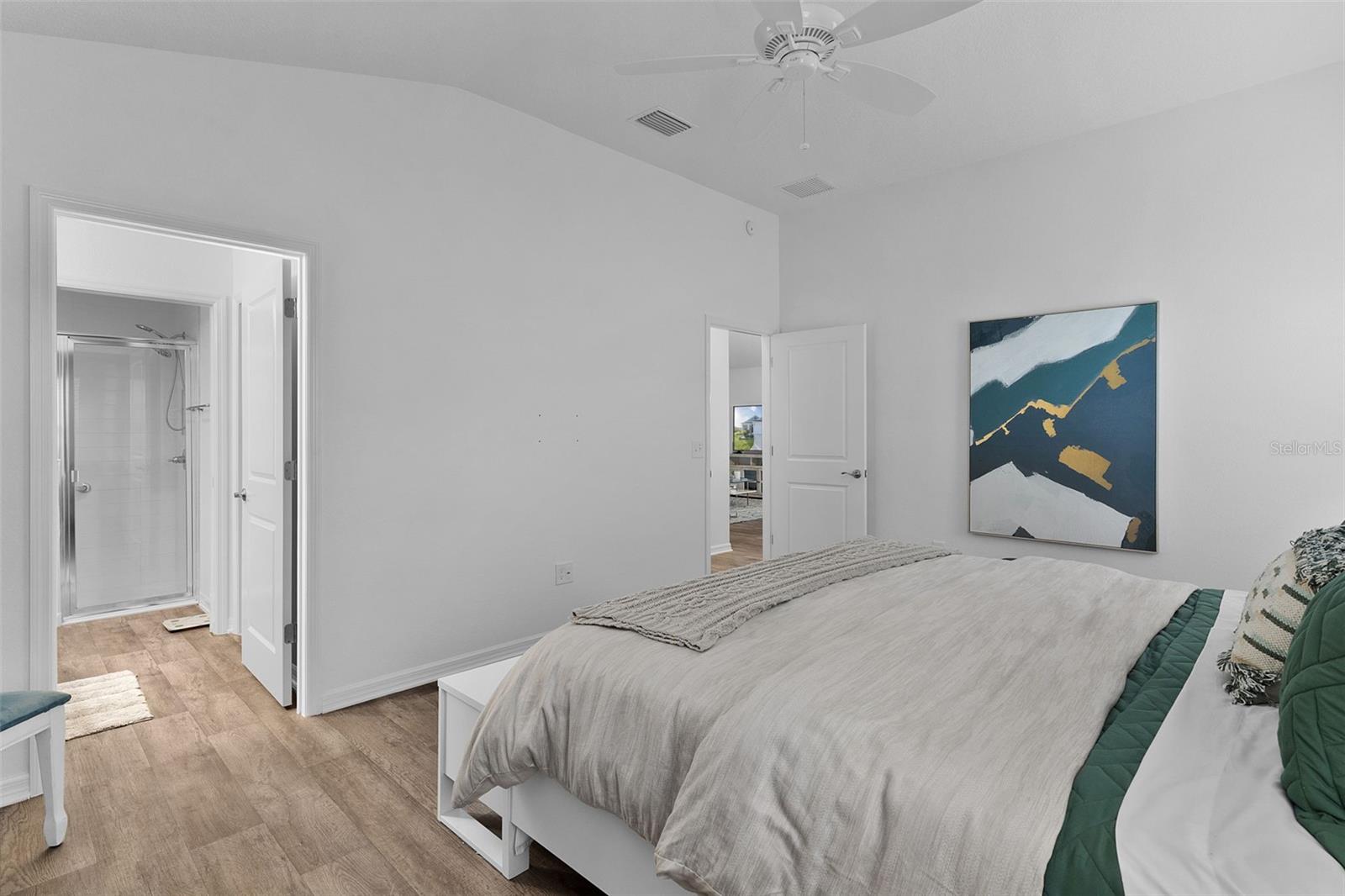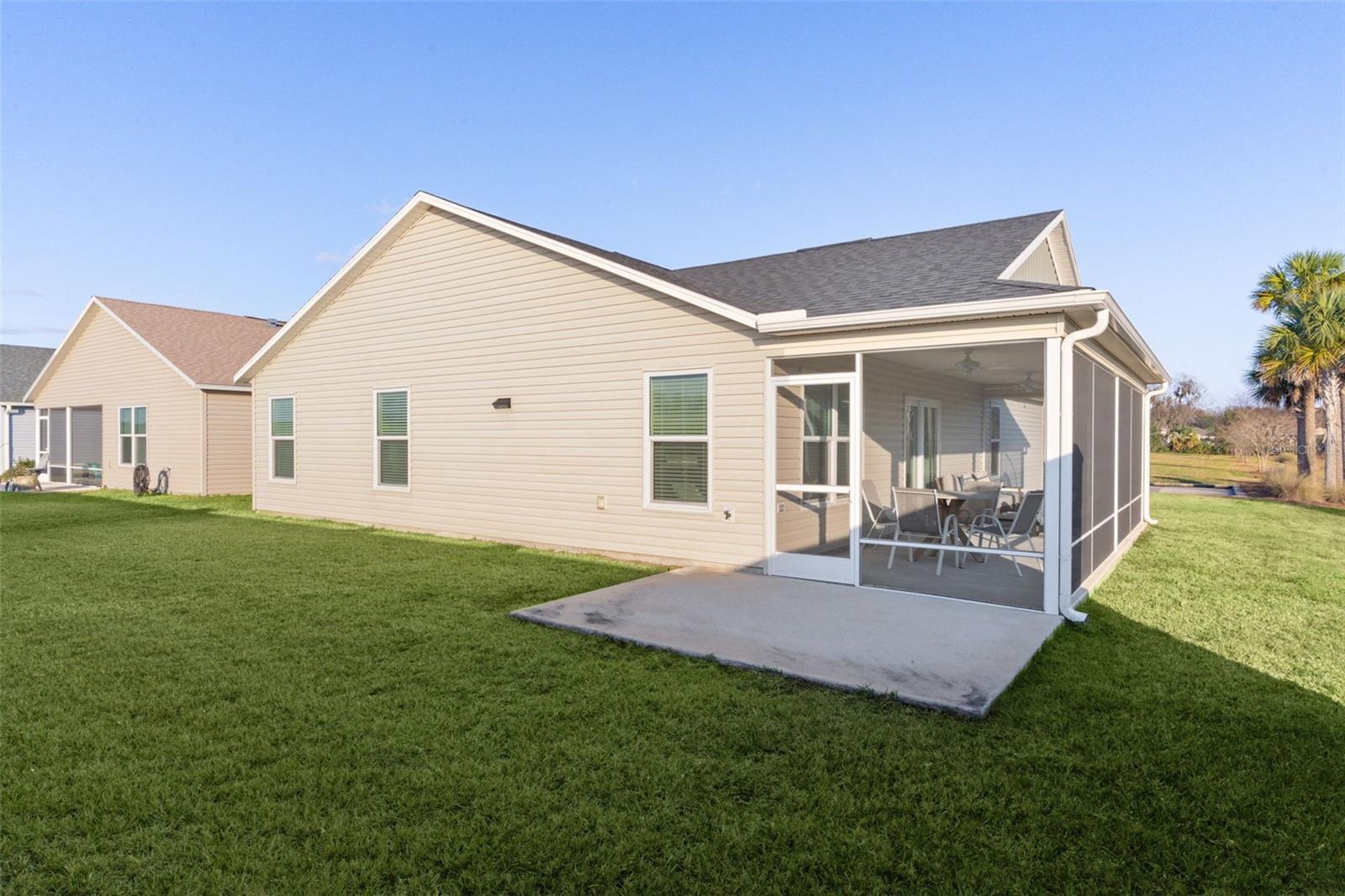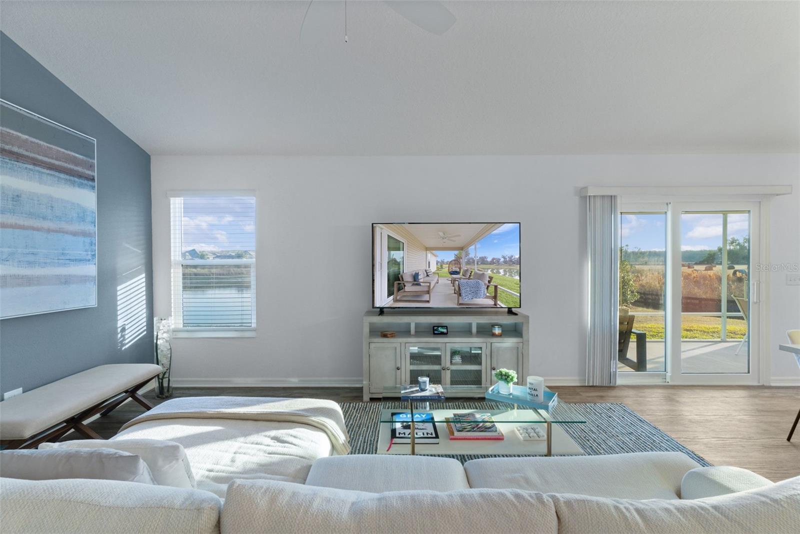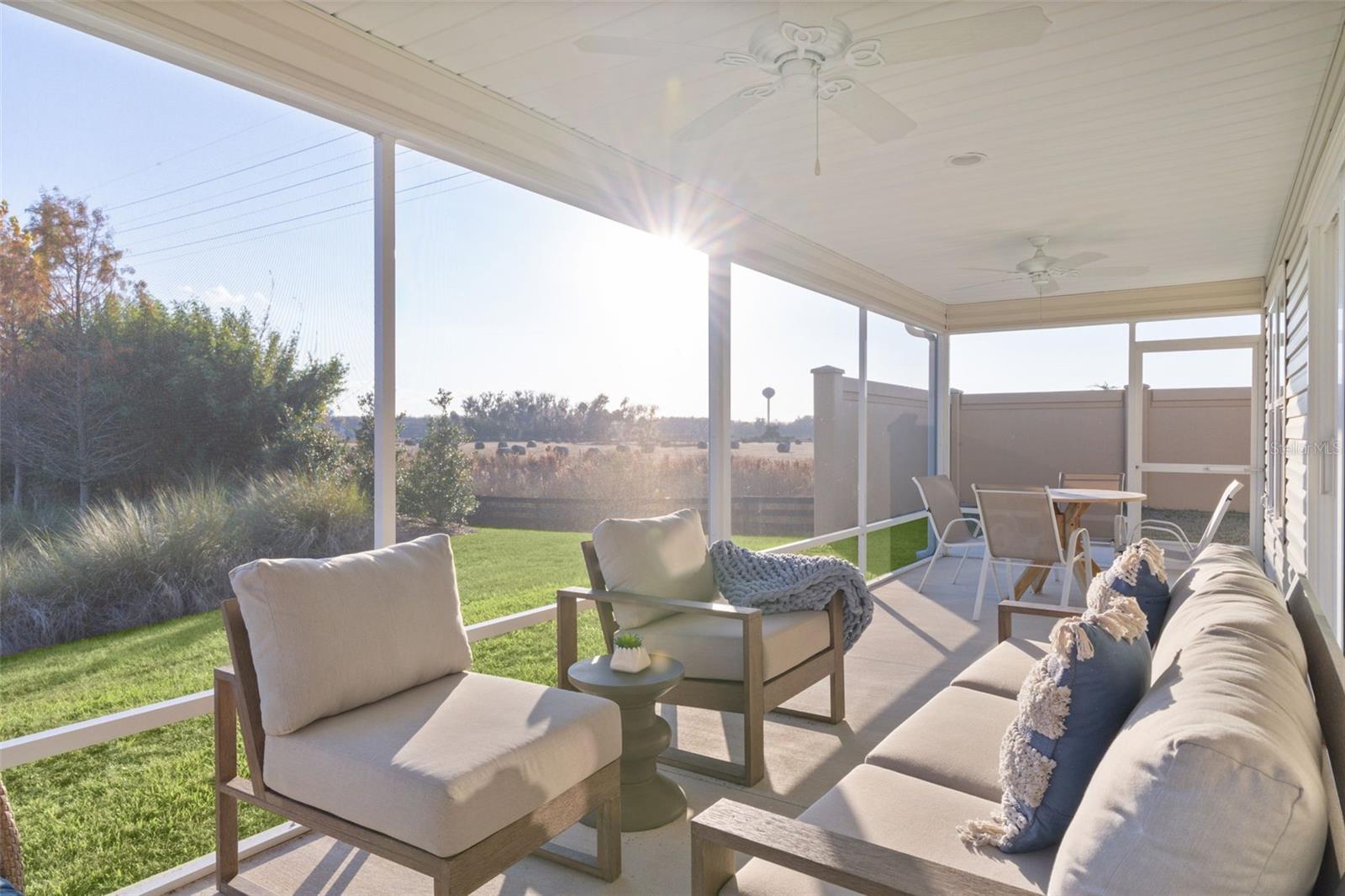 Tucked away at the end of a quiet cul-de-sac in the sought-after Village of Hammock at Fenney, this light-filled 3-bedroom, 2-bath home offers exceptional privacy with beautiful water views. Vaulted ceilings and an open-concept layout are enhanced by abundant natural light throughout. The kitchen is appointed with stainless steel appliances, a gas stove, tile backsplash, and a rare separate breakfast area. The spacious primary suite is thoughtfully separated from the guest rooms, creating a peaceful retreat with a large walk-in closet. The home features no carpet and has LVP flooring throughout. Nestled on an off-set lot for added privacy, the extended lanai overlooks the water, providing an ideal space to relax or entertain while enjoying sweeping views and serene surroundings. With no homes backing up to the property, the oversized lot offers ample room to add a pool. The Village of Fenney offers a truly serene setting, surrounded by a peaceful nature preserve and known for its stunning resort-style zero-entry pool, a restaurant with pool service, parks, nature trails, and executive golf courses. Ideally positioned near Brownwood Paddock Square, Sawgrass Grove, Eastport, and Middleton, Fenney provides effortless access to premier dining and entertainment. Select furnishings are available for purchase, offering a convenient move-in or turnkey opportunity.