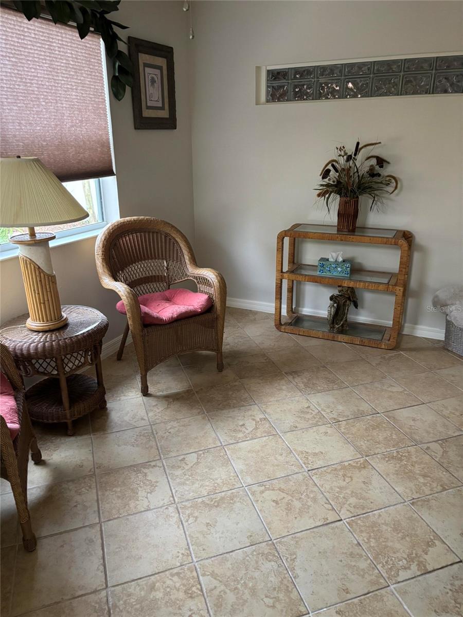 This home is in a desirable area and features an extra room off the living room serviced by air/heat and separated by pocket doors and boasts a separate door which opens into the back private courtyard-style backyard—great for pets, gardening, or simply enjoying the Florida sunshine. Nicely landscaped yard. The open floor plan includes a spacious living/dining area. The kitchen has alabaster cabinets, granite and stainless appliances. The entire house is tiled except for bedrooms. The master has a walk-in closet, dual sinks in granite counter tops. Split bedrooms with both master and 2nd bedroom having an en-suite bathroom. Turnkey is nicely furnished. Great investment income and consistently rented 8 months out of the year as a STR. Enjoy easy access to one of The Villages' most vibrant town squares, Sumter Landing, filled with shopping, dining, nightly live entertainment, and waterfront views. You're also just a short walk to the Bacall Recreation Center, where you can enjoy swimming, pickleball and tennis, fitness classes, and more. Located within a golf course community, this home gives you easy access to championship and executive golf courses, as well as beautiful walking trails and community pools. Two miles to Sumter landing square. Whether you're looking for a full-time residence, seasonal retreat, or investment property, this home checks all the boxes. Don’t miss this opportunity to live in one of the most desirable neighborhoods in The Villages! HVAC May 2023, Roof May 2022, Painted sidewalks in back, New Epoxy garage, Nicely landscaped back yard with painted wall, TDBU shades on windows with matching shade on sliding door, Remote controlled fan in living room, All Contents including 2 new Samsung TV’s, high end master bedroom set, glass topped high end dining table and all linens, living room furniture, patio furniture, grill, dishes, etc., 3 solar tubes (both baths and kitchen).