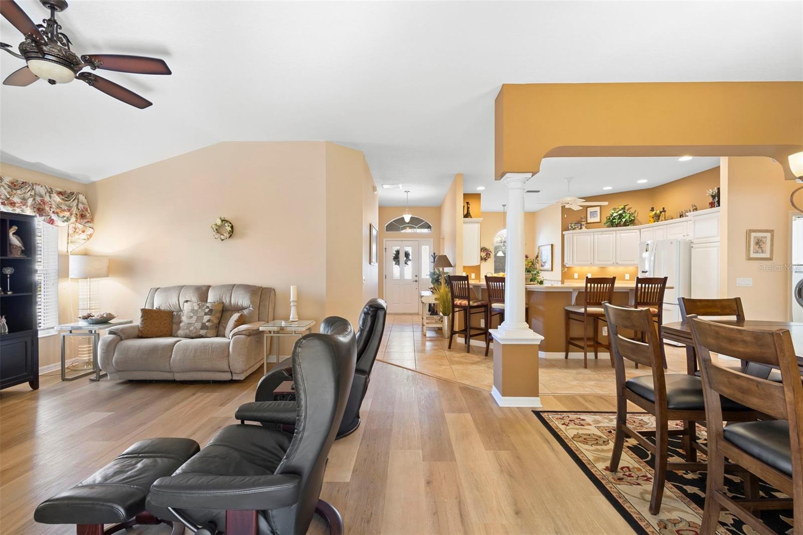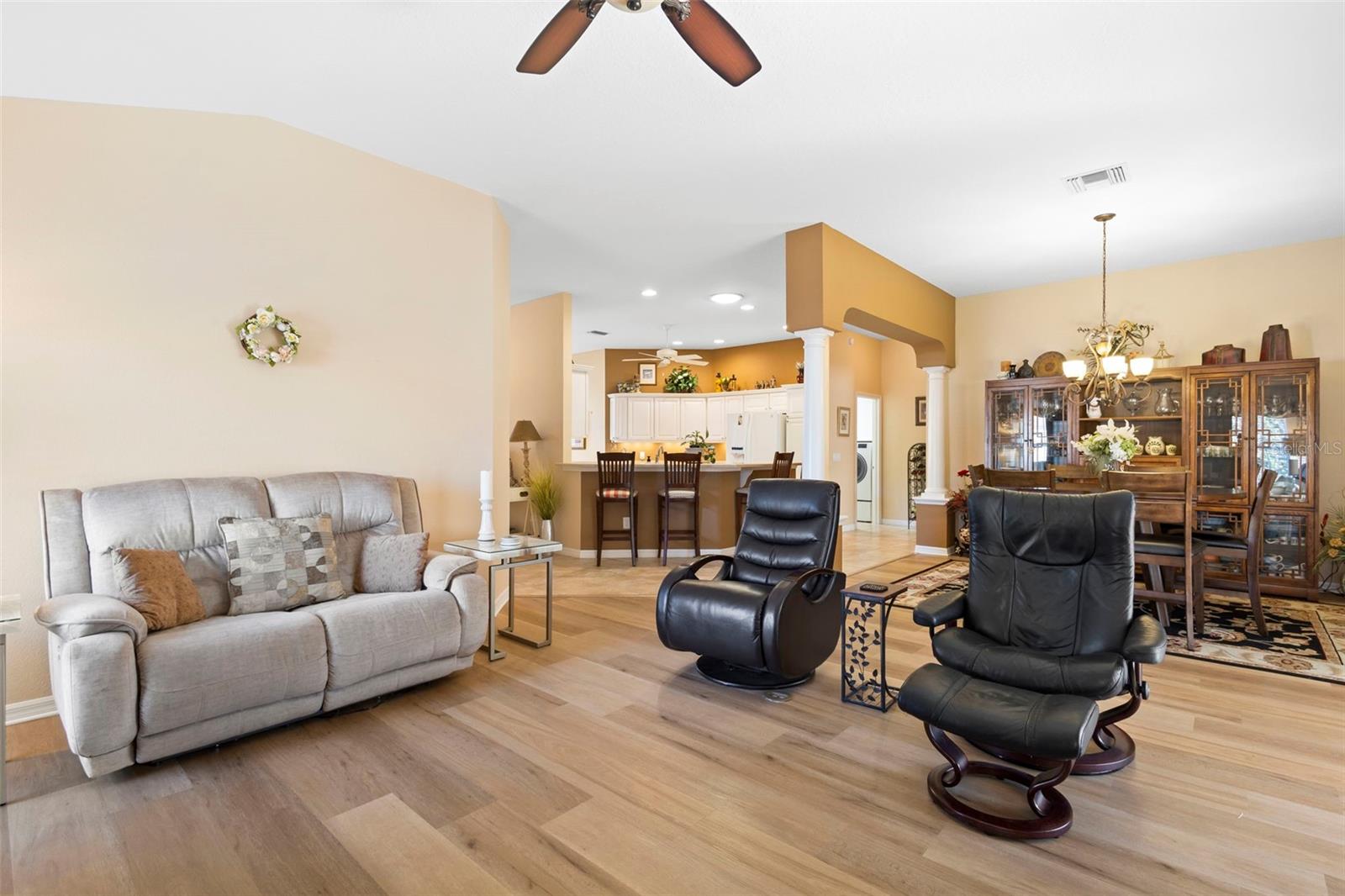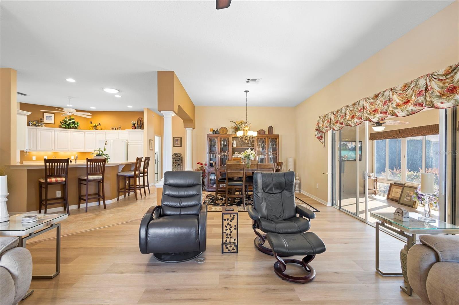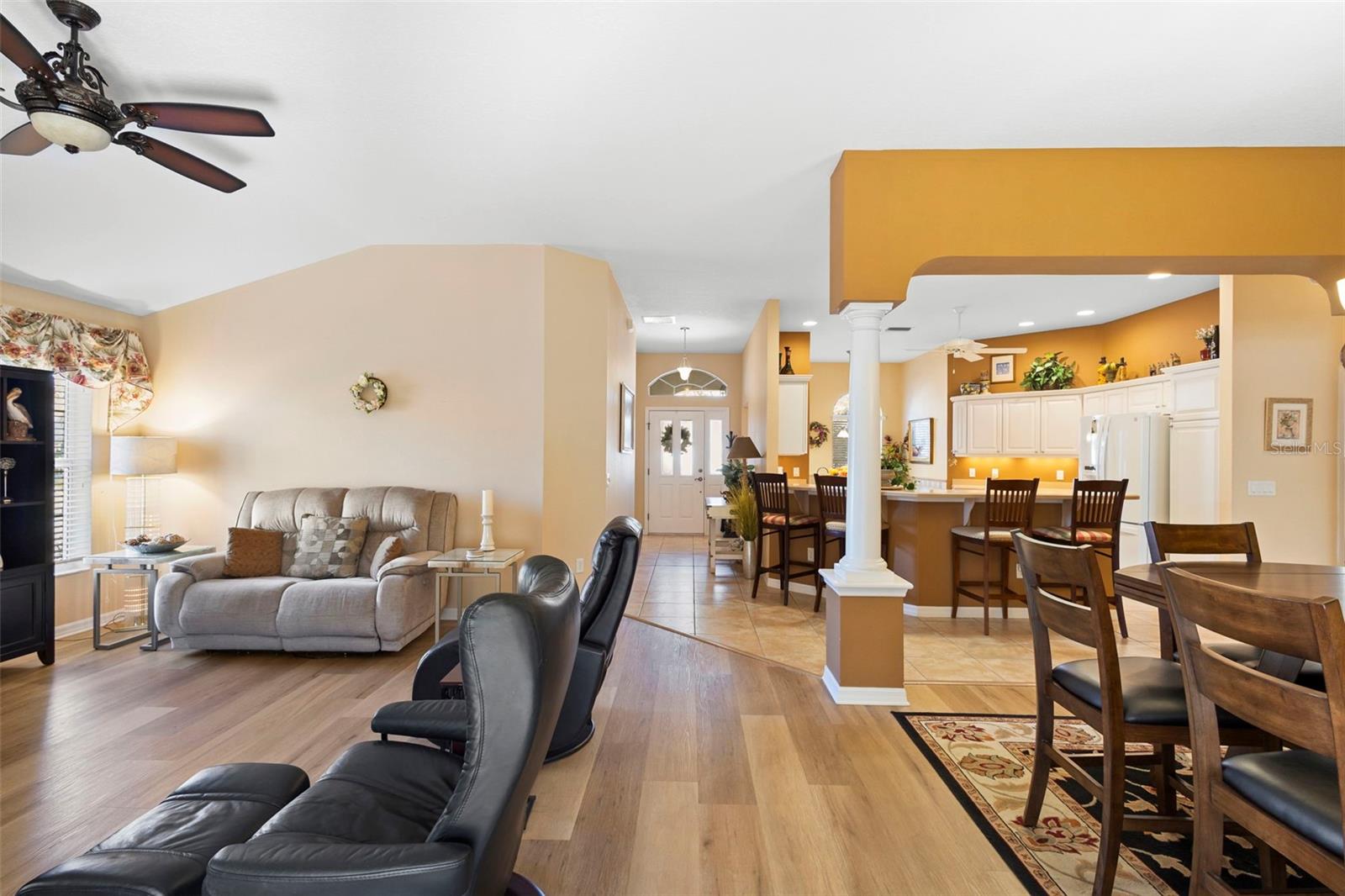 NO BOND. NEW ROOF: 2020. FULLY-FURNISHED/TURN-KEY. ALL ITEMS INCLUDED IN THE SALE OF THE HOME. Move right into this premium corner lot with a bright, functional floor plan ideal for entertaining and everyday living. Inside, you’ll love the split floor plan, two separate dining areas, and no carpet throughout—only wood and tile flooring for a polished, low-maintenance feel. The enclosed lanai is filled with natural sunlight, creating the perfect space for morning coffee, reading, or hosting guests. The garage includes a refrigerator and freezer, and the home also comes with a washer and dryer, making your move-in seamless. Step outside and enjoy the outdoor potential: this corner lot offers room and flexibility for future plans, including the option to create your own custom pool design to match your lifestyle. This community offers world-class amenities, including a walk-in pool, pitch-n-putt golf, pickleball, game room, and a variety of pools for both adults and visiting family members. Schedule your private showing today and start living the lifestyle you earned.