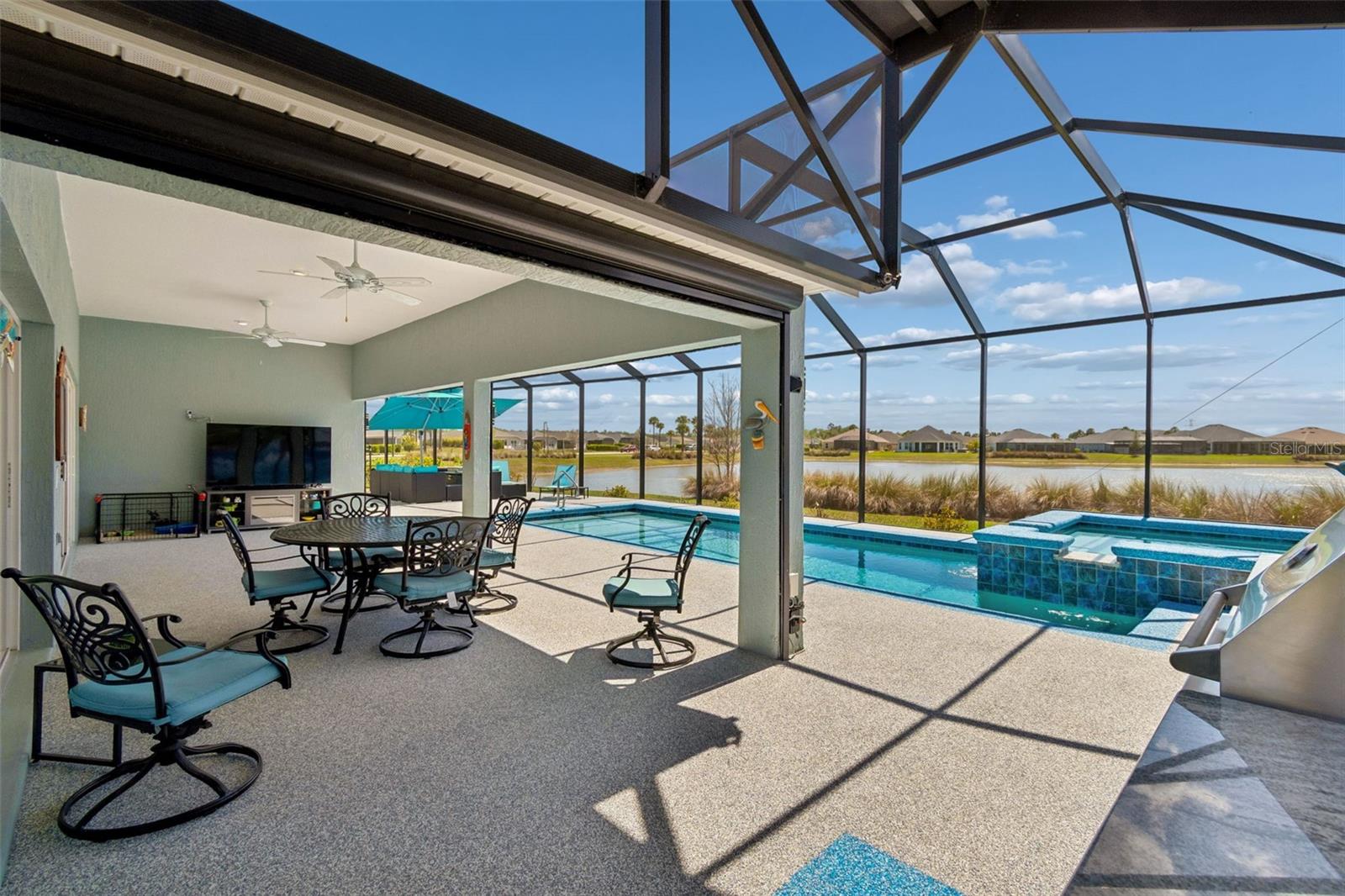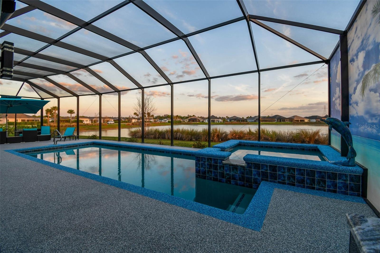 Experience the Essence of Living the Dream in this Beautiful Designer 4 Bedroom 2 Bath “Ivy” in the Village of Newell. This is the Best location in the villages with walking distance to all your activities and minutes away from the new Eastport area and Sawgrass square. This home sits on .22 acres of property with an Extended Garage, Lanai, and Bedrooms. The large open floor plan is very Spacious with 10 Ft. Ceilings and Arched Entryways. The extra large Laundry room has built in cupboards and a Desk area that is Computer friendly and Includes the Washer and Dryer. The Kitchen has Smart Stainless Steel Appliances, Under and Over Cupboard Lighting, Beautiful Tile Backsplash and Elegant Quartz Countertops. The Sliding Stacking Doors open up to a Sparkling Tropical Oasis which consists of a Beautiful built in Pool and Spa overlooking a Large Pond with plenty of Wildlife. You will enjoy spending time on the large lanai with a brand new Rubber Floor and Hurricane Shades. The master bedroom gives you a Fantastic View of the Lanai and Pond. Inspired Closets are provided throughout the home. This Perfectly Landscaped Home with Double Door Entryway will make Everyone feel Welcome that comes through the door. Don’t miss out on this Hidden Treasure.