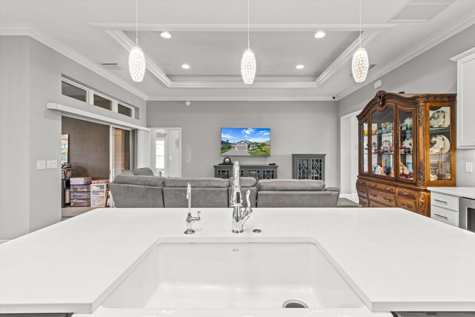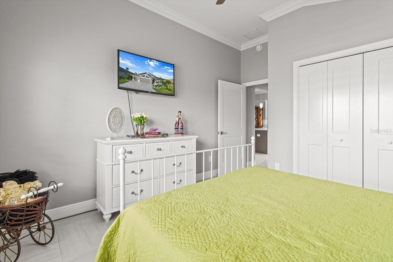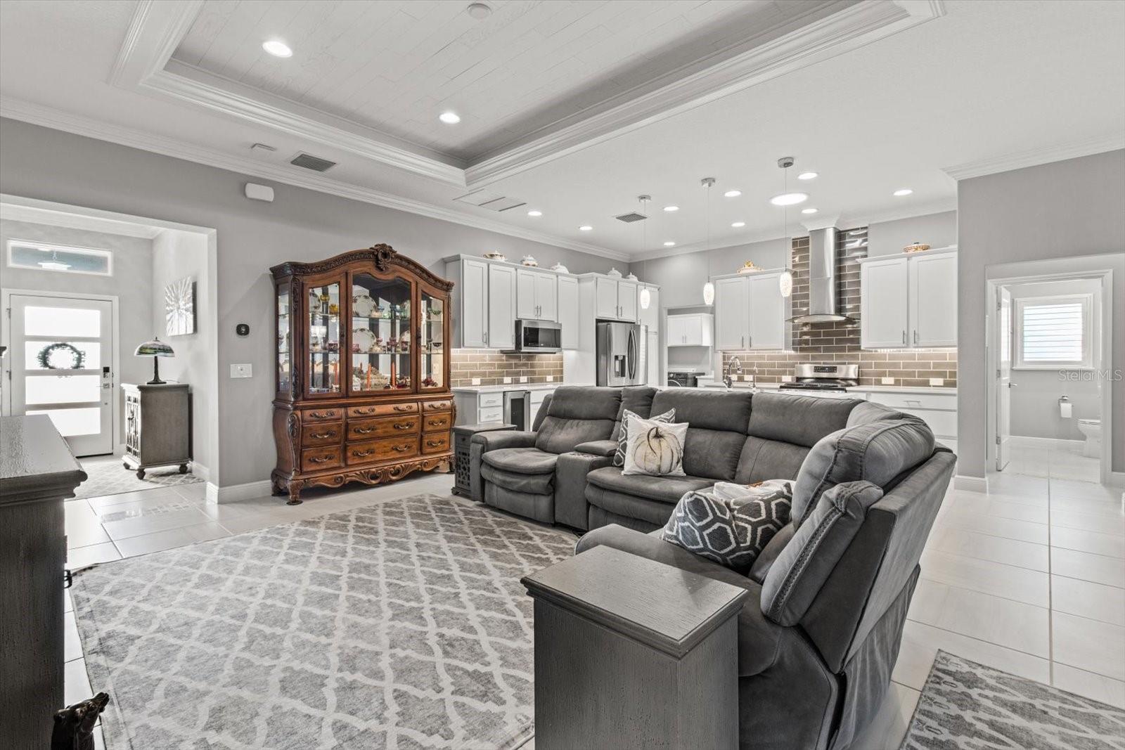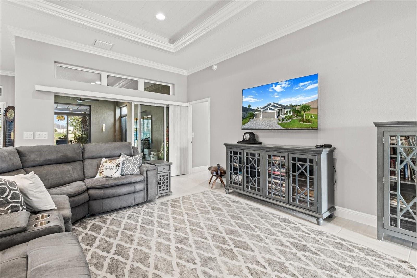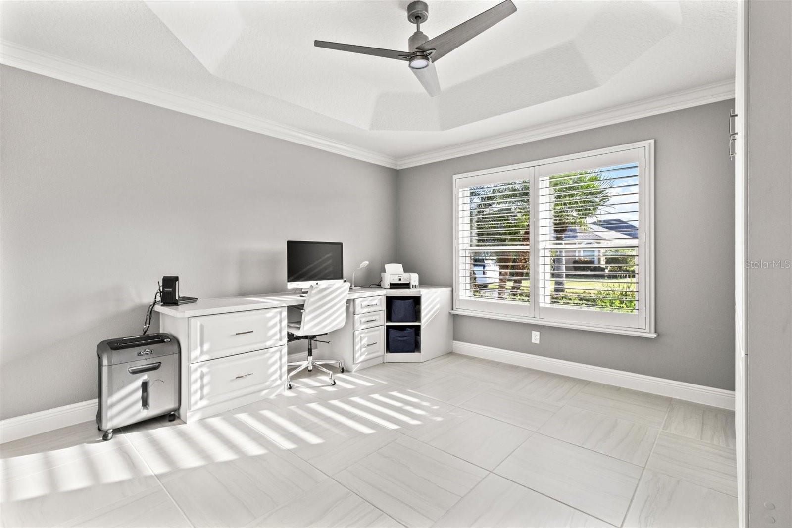 Welcome to your dream home at 2001 Dagenais Way, nestled in the picturesque Linden Village of The Villages, FL! This stunning custom-built Linden model showcases exceptional upgrades and exquisite details, perfect for those seeking comfort and luxury. As you approach, you'll be captivated by the meticulously designed custom landscaping that leads you to the inviting entrance. Step inside to discover a bright, open floor plan enhanced by solar tubes that bring in natural light, creating a warm and welcoming ambiance throughout. Plantation shutters elegantly frame the windows, providing both style and privacy. The heart of the home features a spacious kitchen, complete with a generous pantry and large laundry room, ensuring ample storage. Transition into the versatile office space, which boasts a convenient Murphy bed, ideal for accommodating guests. One of the highlights of this remarkable property is the expanded garage with an epoxy floor, providing durability and a sleek look. For added convenience, a generator ensures you'll never be left in the dark during power outages. Step outside to enjoy a serene water view from your private hot tub, surrounded by a beautiful pergola that offers the perfect blend of relaxation and entertainment. For added peace of mind, this home comes equipped with a state-of-the-art security system, ensuring you feel safe and secure in your residence.
