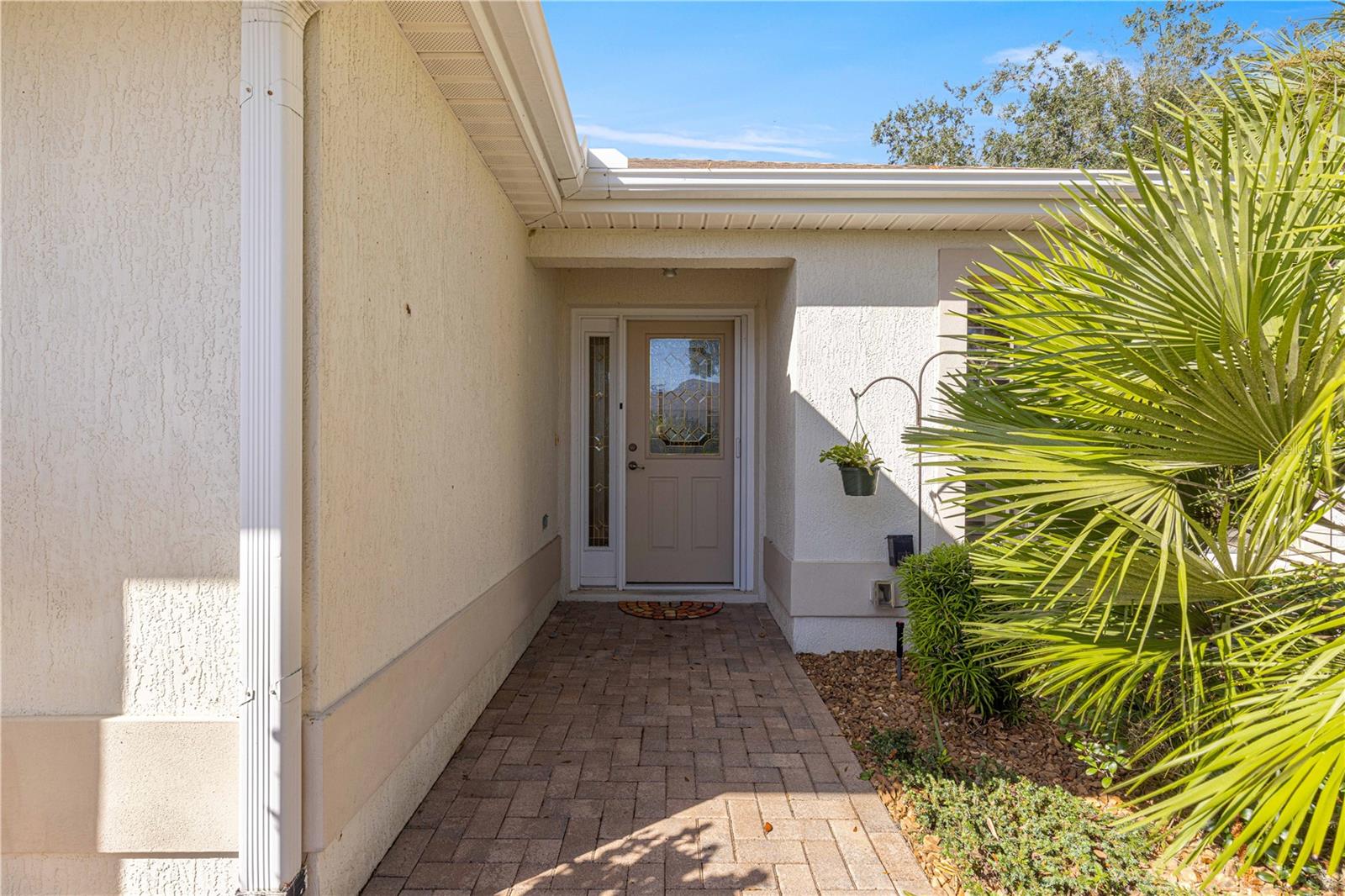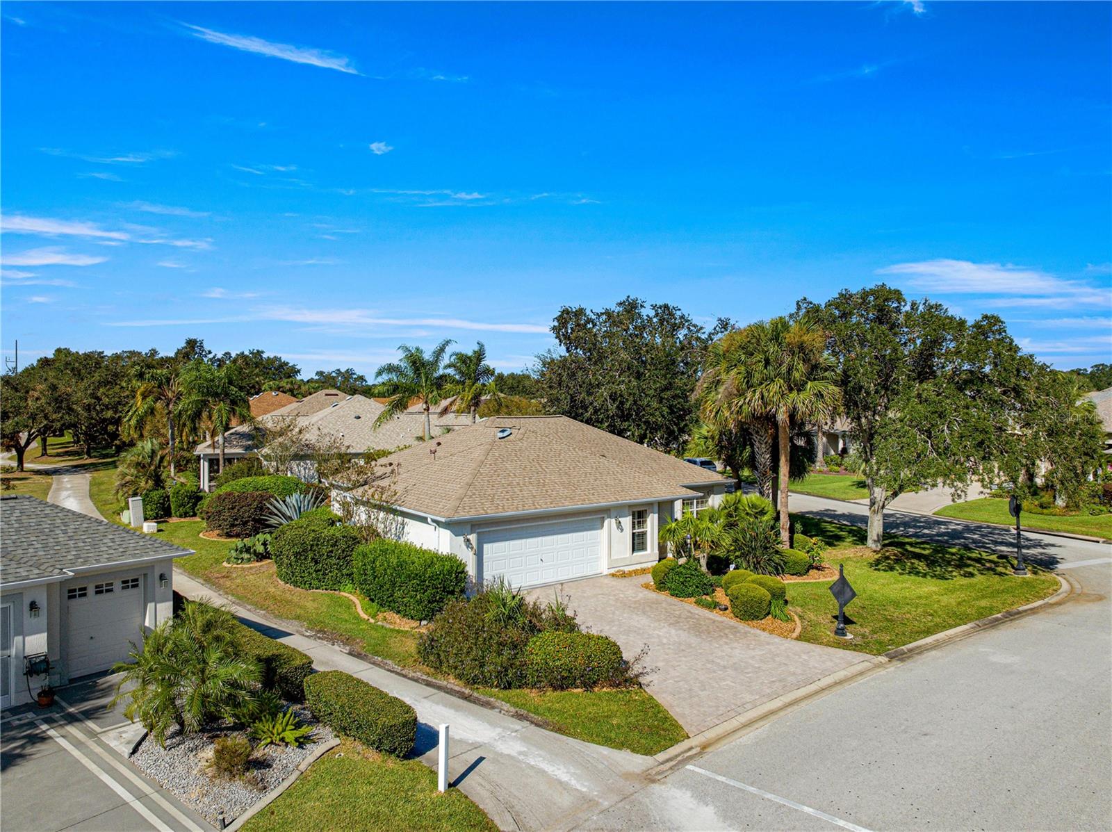 GOLF & WATER VIEW * BOND PAID ** NEW ROOF 2020 * NEW HVAC 2020 * TURN KEY PACKAGE * GOLF CART INCLUDED W/ ACCEPTABLE OFFER**GOLF COURSE REAR PRIVACY !**EV CAR WIRING 220 LINE** **LARGE ENCLOSED LANAI**GRANITE**NEW PAINT**MURPHY BED**NATURAL GAS**WATERFALL FEATURE** HIGH END NEW SAMSUNG WASHER & DRYER - So much to talk about here, beautifully built and meticulously maintained Jasmine style designer home nestled into The Village of Chatham. This exceptional golf front home sits on an oversized corner lot with a quaint golf cart trail along the southern boarder which minimizes neighbors and maximizes privacy. The mature landscaping has been professionally maintained and includes a secluded water feature which is sure to impress. The paver driveway and walks also add to the curb appeal and speaks to the overall quality of construction. Walking up to the front entry admire the leaded glass door and side lite. Step into the home and you are welcomed with a newly painted interior with a soft color palette, high ceilings and lots of light. Notice the tiled floors which are installed throughout the house, no carpeting. The kitchen has been upgraded with granite counters, stainless steel appliances, gas range, pantry with rollout shelves and lots of storage. The kitchen also includes a nice breakfast nook ideal for morning coffee. The main living area is generous and open allowing for limitless options when laying out furniture and décor AND NEW CEILING FIXTURES. Step out back onto the enclosed lanai which gives you both the beauty of outdoor living or the protection of glass panels. The master suite includes a large NEW CUSTOM walk-in closet, master bath with dual sinks, a walk-in shower and linen closet. The guest suite is located on the opposite side of the home for maximum guest privacy. This includes two bedrooms with closets, a guest bath with walk-in shower and a privacy pocket door allowing the guest suite to be closed off from the main living area. This home has a separate laundry room with utility sink and cabinet storage. The garage is oversized and includes an epoxy coated floor, attic storage stair/attic fans, updated gas water heater in 2019, whole house water filtration system and a new HVAC system in 2020. Some of the other features of this home include a new roof in 2020, 3 solar tubes for additional natural light, gutters and downspouts, whole house lightning rods, custom plantation shutters, garage door screen, front door hideaway screen and the Bond is Paid. This house is conveniently located within minutes to multiple Championship and Executive Golf Courses, Rec Centers, pools and famous Town Squares with all of it's shopping, dining and nightly entertainment. Take a look at the pictures and then call to schedule a private showing of this beautiful home. BUYERS AGENT TO CONFIRM ALL INFORMATION. BOND BALANCE $0.00 - YEARLY CDD MAINTENANCE $853.00 - ** TURN KEY ** GOLF CART INCLUDED W/ ACCEPTABLE Agreement **