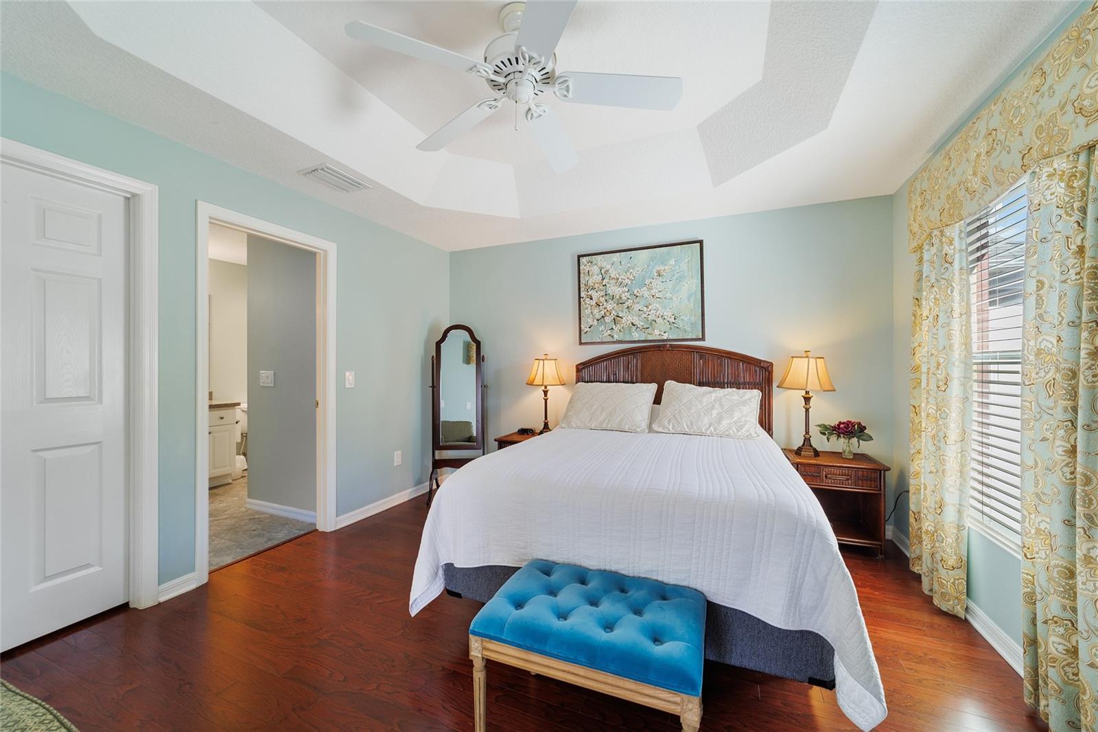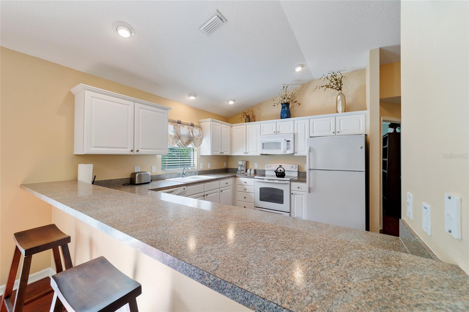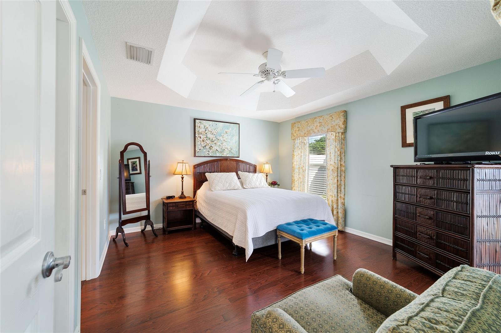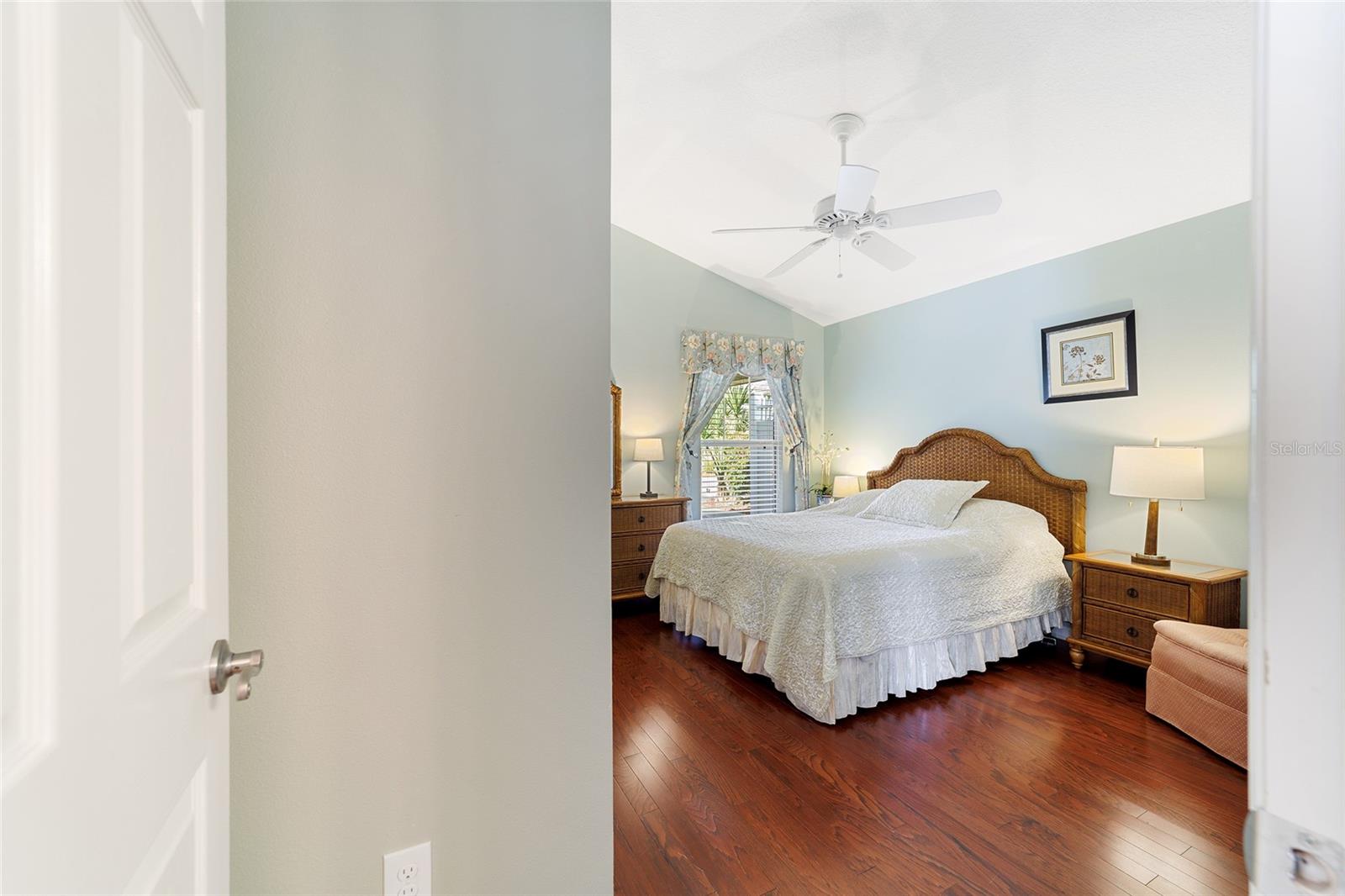 Walk to Sumter Landing in THE VILLAGES. Immediate occupancy in this BUNGALOW that is TURN KEY! 3 bedrooms and 2 baths. Vaulted ceilings. Beautiful wood flooring throughout and Tile in the baths. Enjoy your private screen enclosed Lanai for relaxation or a nice place for your pet(s). Breakfast bar offering casual dining in kitchen area plus a dining area. Kitchen features white cabinets. Sliders out to patio for convience to Grilling. Primary bedroom with a tray ceiling and a walk in closet plus sliders to the Lanai. 3rd bedroom is currently be used as an office. Square footage information is taken from the Public Record and is deemed reliable, but not guaranteed. Room and garage dimensions are approximate: buyer to verify. The BOND balance is $5925. This is truly LOCATION! LOCATION! LOCATION! Movies, restaurants ...everything just a short walk or cart ride away.