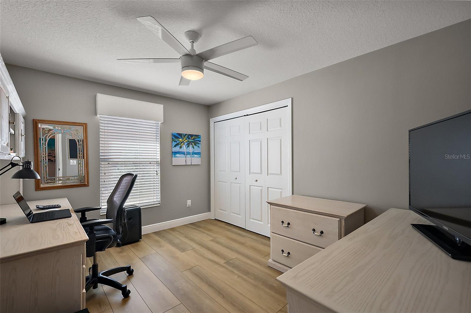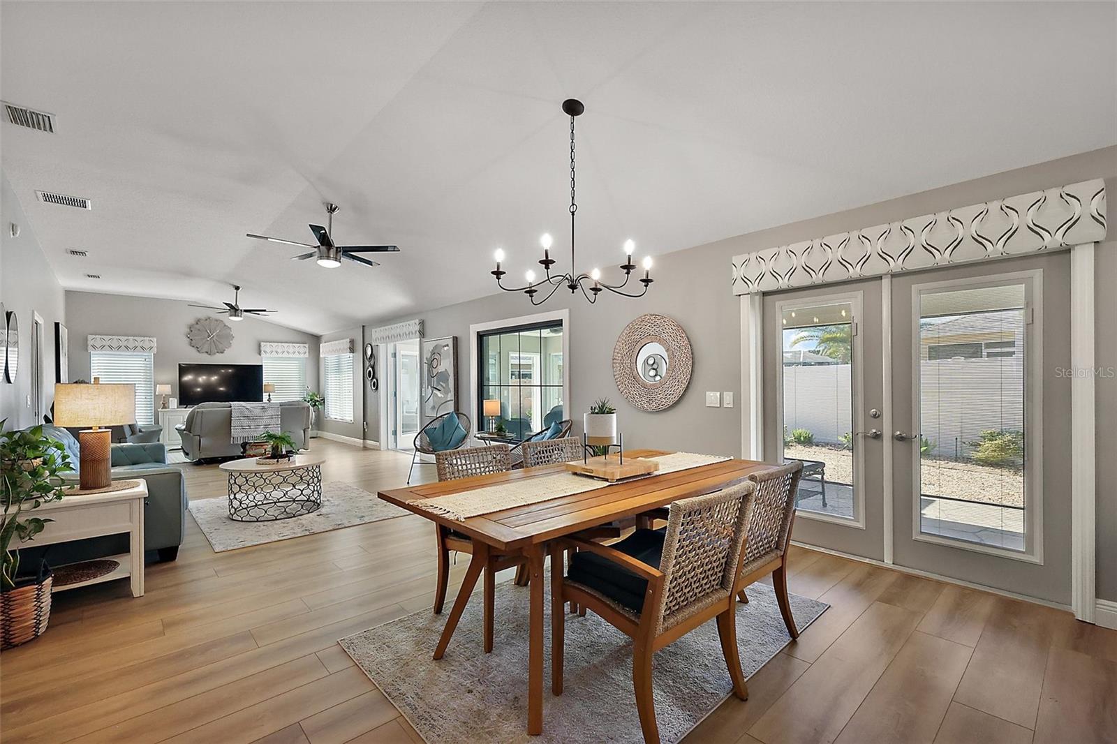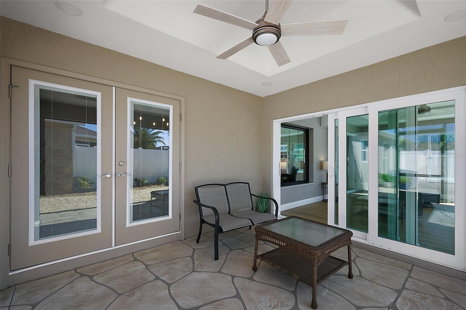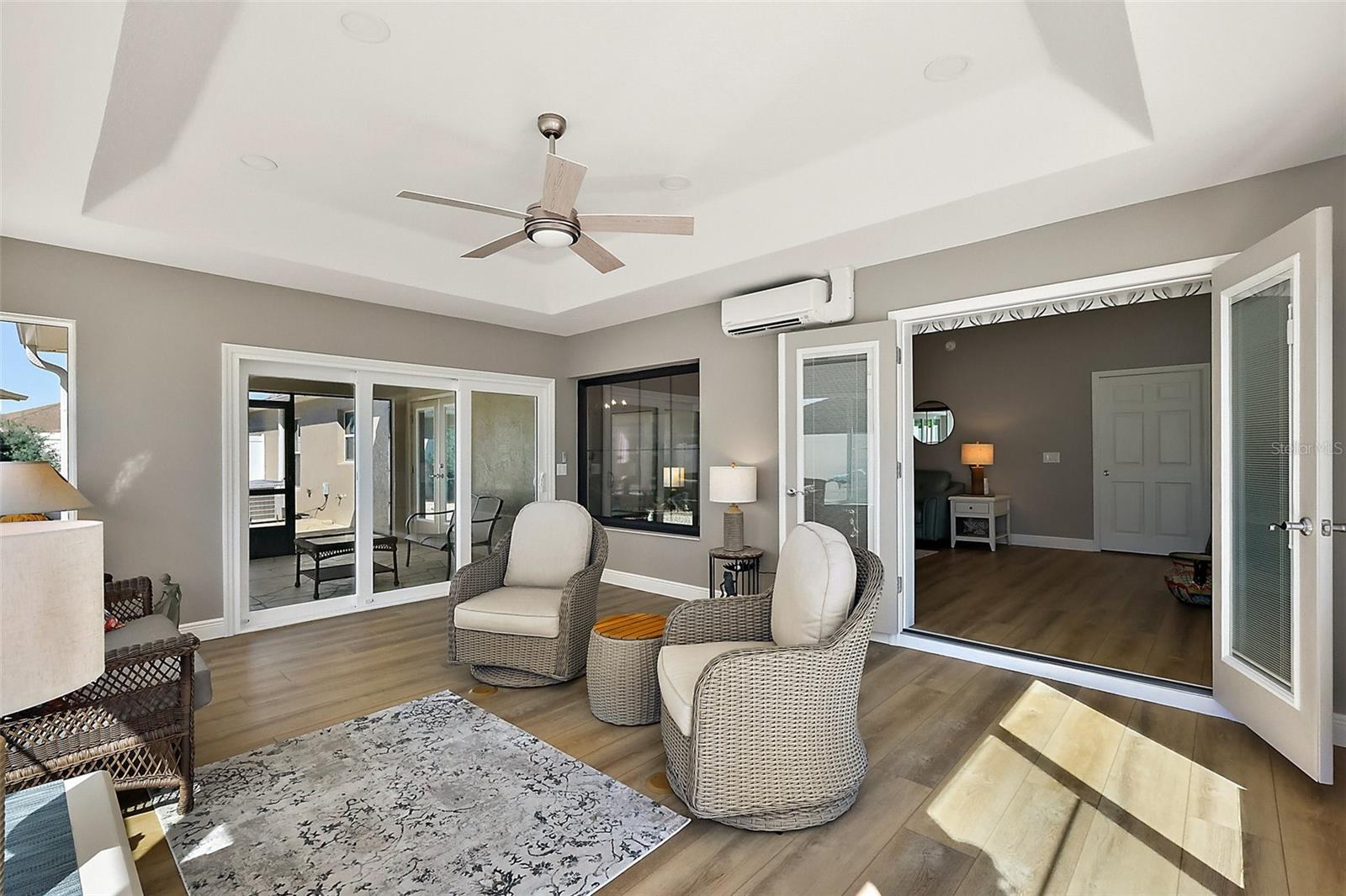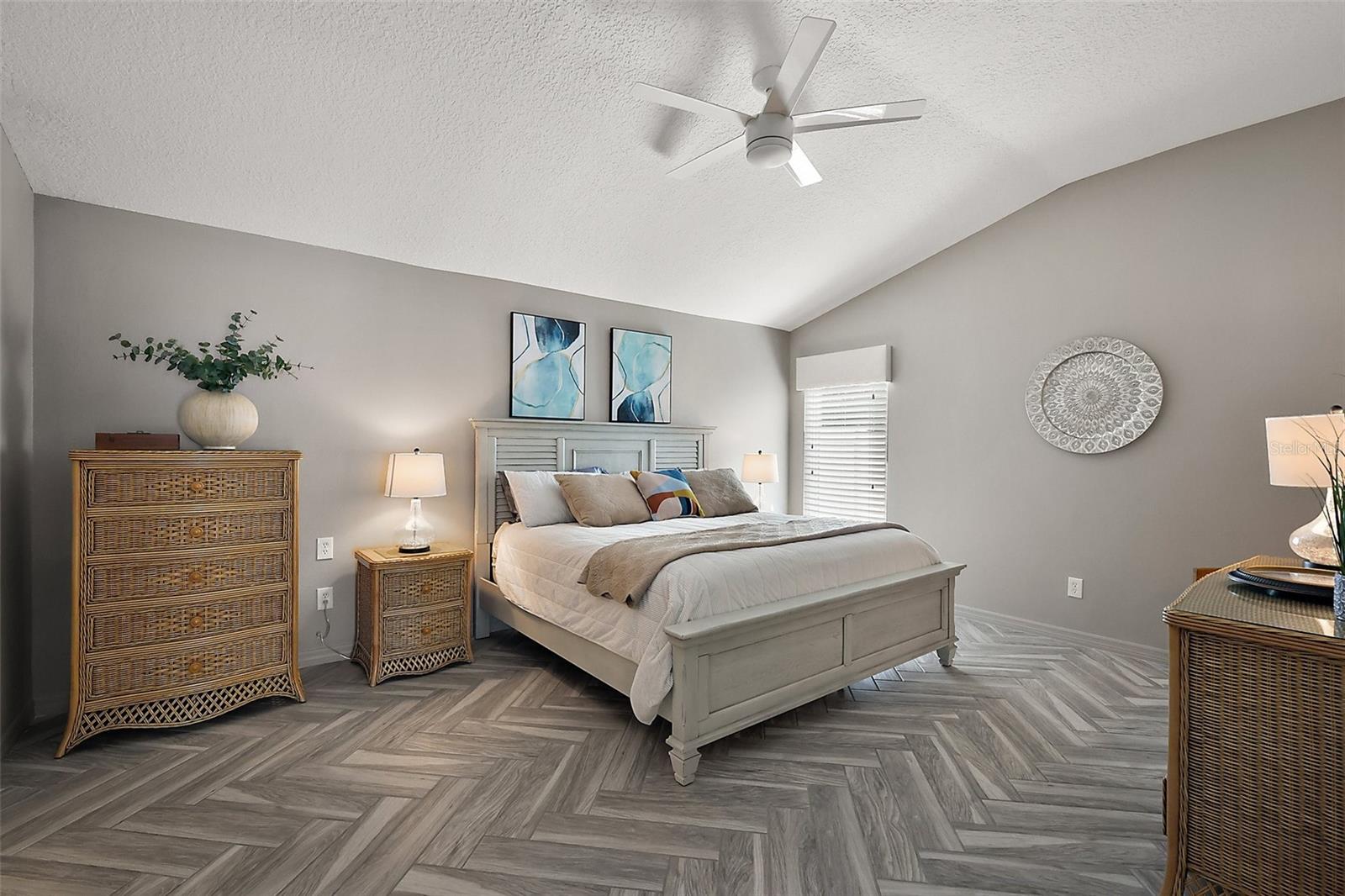 ~~~~Price Reduced!~~~~~ This luxurious and impeccably maintained expanded Foxglove Bungalow Courtyard Villa in the prestigious Village of Pennecamp offers over 2,100 sq. ft. of refined living space and is being sold fully furnished, including a 2018 GAS Yamaha golf cart. A brand NEW ROOF coming in June by a reputable company with a transferable warranty. The primary suite and living room have been expanded by 10 feet, creating a spacious, light-filled interior with luxury vinyl and tile flooring throughout, no carpet. The spa-inspired en suite boasts a walk-in shower with river rock accents, dual vanities with granite countertops, and a custom walk-in closet. The gourmet kitchen features granite countertops, stainless steel appliances, recessed lighting, and a breakfast bar. A stunning Florida Room, added in 2023, offers a tray ceiling, mini-split system, floor outlets, and tinted windows, with sliding glass doors that open to a screened, covered patio perfect for entertaining. The private courtyard features elegant, low-maintenance landscaping, while the epoxy-coated garage floor and exterior recessed lighting add to the home’s upscale appeal. Located close to Cane Garden Country Club, Lake Sumter Landing, pools, golf, and all the amenities of The Villages—this is a rare opportunity to enjoy luxury, comfort, and convenience in one of the most desirable locations.
