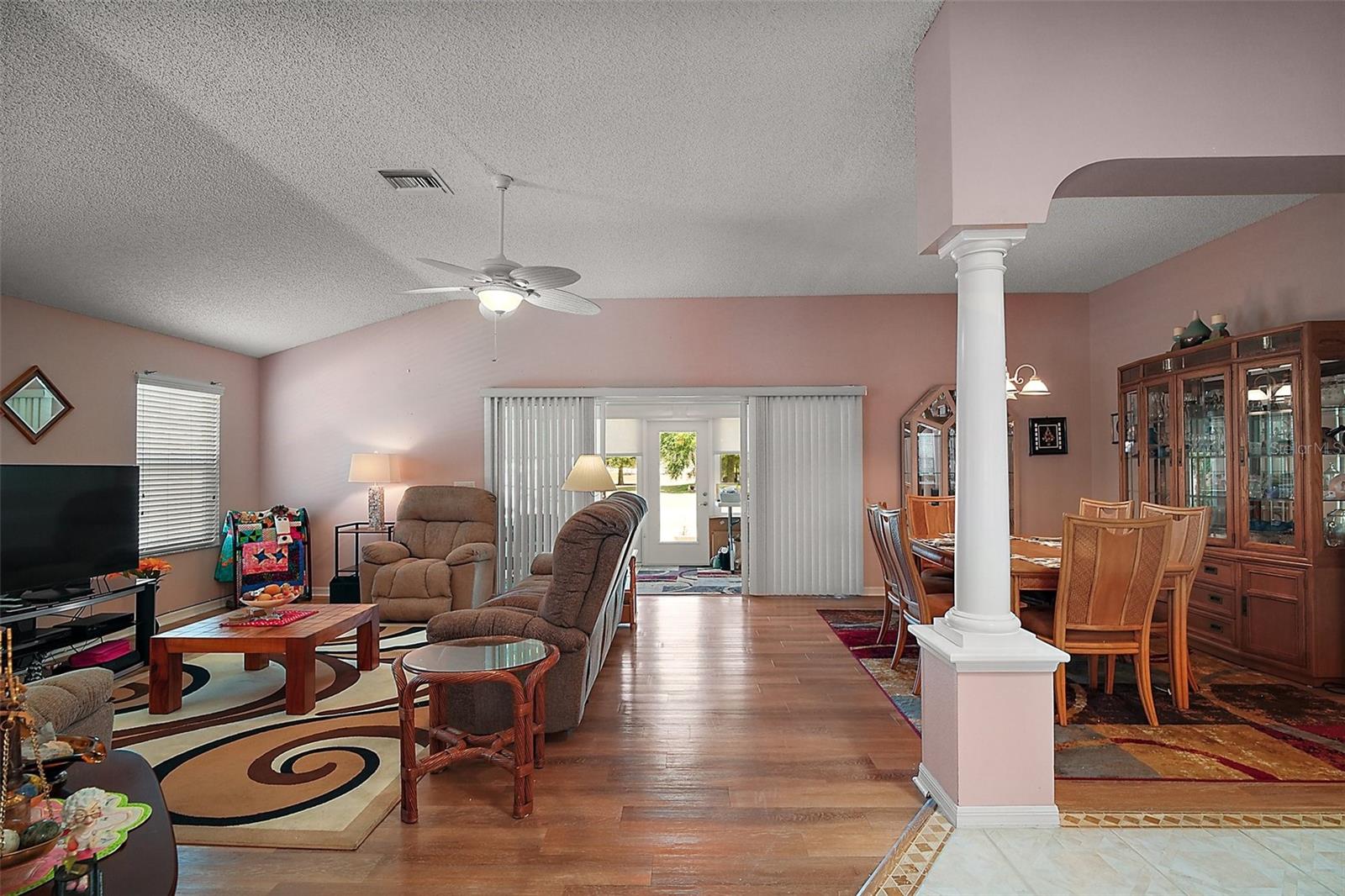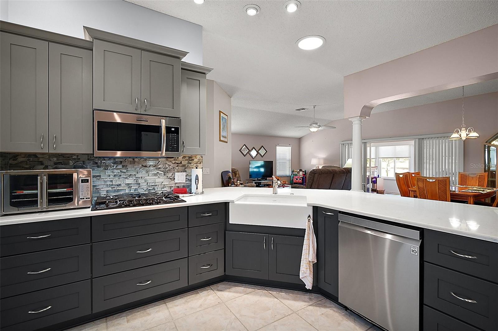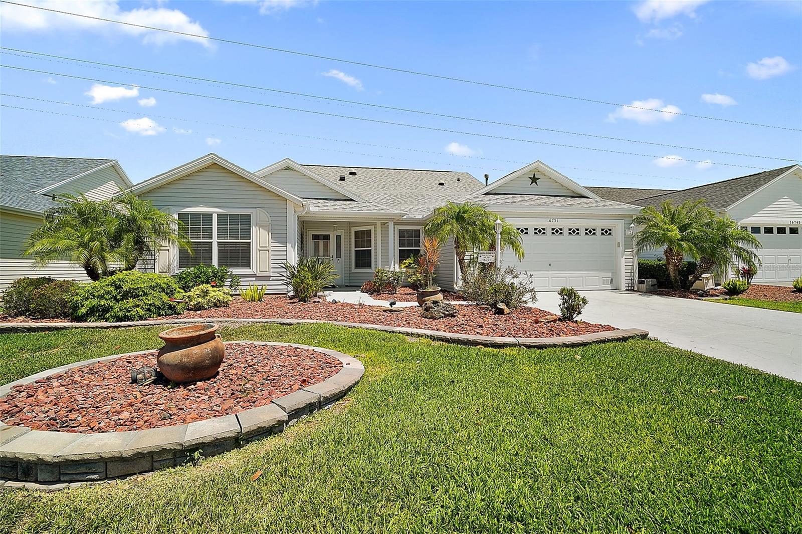 NO BOND! Motivated Seller! Price Improvement! Welcome home in the quiet neighborhood of Briar Meadow South. The Hibiscus model offers an open/split floor plan great for entertaining with the primary EN-SUITE on one side of the home and the guest rooms on the other, providing privacy. This home has been well maintained, and it shows. You will enjoy the lovely view from the lanai that overlooks the Ashley Meadows championship golf course -- no neighbors backing up to your property. a fantastic golf course view! The lanai has new category II windows, with an outdoor patio area off the lanai, new roof 2023, HVAC 2022, hot water heater 2022, kitchen renovated 2022 with Quartz countertops, new soft close -pull out cabinets, and backsplashes, seller will provide concession to add an oven, both bathrooms replaced with new showers 2023 and Jetta stone showers and countertops, non-skid driveway, newer lanai shades. NO CARPET! Ceiling fans, gutters, two car garage with pull-down stairs. The third bedroom can be used as an office or den. The inside laundry room has a solar tube. Two car garage with pull downstairs. Outside seating on the patio is just another bonus. The Sunset remote controlled awning allows you to enjoy BBQing with friends in the warm temperatures of sunny Florida. This property is in a prime location with mature landscaping; a short golf cart ride you are just moments from the Springdale Pool, dog park, Mulberry Grove Pool & Regional Recreation Center, the Nancy Lopez Country Club, First Responders Regional Recreation Center and Mulberry Grove Shopping Center offering grocery, drugstore, banking, medical, VA Center, and several restaurants to choose from. There are many options for golfing, entertainment at the Savannah Center, dining at the Nancy Lopez Legacy Country Club, and the Glen View Country Club. One of the highlights of The Villages is its fantastic swimming and recreation centers, perfect for those who enjoy staying active and socializing with fellow residents. Whether you're looking to take a refreshing dip, join an aqua aerobics class, or simply relax by the pool, the recreation centers have something for everyone. In addition to the swimming facilities, The Villages boasts over 100 clubs to choose from! With such a diverse array of clubs, there's no shortage of opportunities to explore new hobbies, meet like-minded individuals, and make lasting friendships. From arts and crafts to sports and fitness, there's truly something for everyone in this vibrant community. And let's not forget the prime location! The Villages is conveniently situated just an hour away from Orlando, making it easy to enjoy all the attractions and entertainment. Whether you're planning a day trip to the theme parks or looking to explore the cultural scene, you'll find that Orlando is just a short drive away. In summary, The Villages, Florida, has a fantastic retirement lifestyle with plenty of activities and amenities to keep you engaged and entertained. It's a wonderful place to live, with a strong sense of community and endless opportunities for fun and relaxation. Situated conveniently to the 441/27 corridor for major shopping, restaurants and medical facilities. Spanish Springs and Lake Sumter squares are a quick golf cart ride away. Schedule your private home tour today so you can start enjoying what The Villages lifestyle is all about! Measurements and square footage are approximate, not guaranteed.