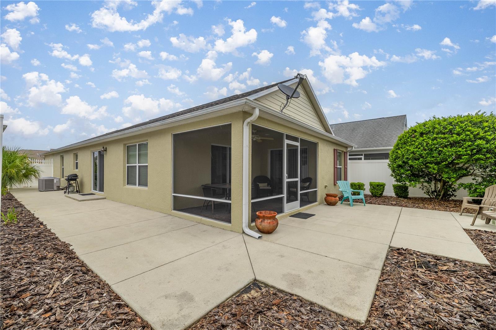 Welcome Home to the Heart of Lake Sumter Landing! Located in the highly sought-after Edgewater Bungalows of The Villages, this charming 3-bedroom, 2-bath villa offers the perfect blend of convenience, comfort, and community. Just steps from all the shops, dining, entertainment, and medical offices that make Lake Sumter Landing the vibrant hub of "Florida's Friendliest Hometown," you'll love being in the center of it all. Featuring a desirable open concept layout with a split floor plan, this home is move-in ready and can be sold fully furnished and turnkey for your ultimate convenience. Enjoy Florida living at its best with a private courtyard, screened-in porch, and low-maintenance outdoor space ideal for relaxing or entertaining. Whether you're looking for a seasonal getaway, investment opportunity, or full-time home, this villa checks all the boxes. The Bond Balance is currently $5925. Don’t miss your chance to own a piece of paradise in one of the most walkable and welcoming neighborhoods in The Villages!