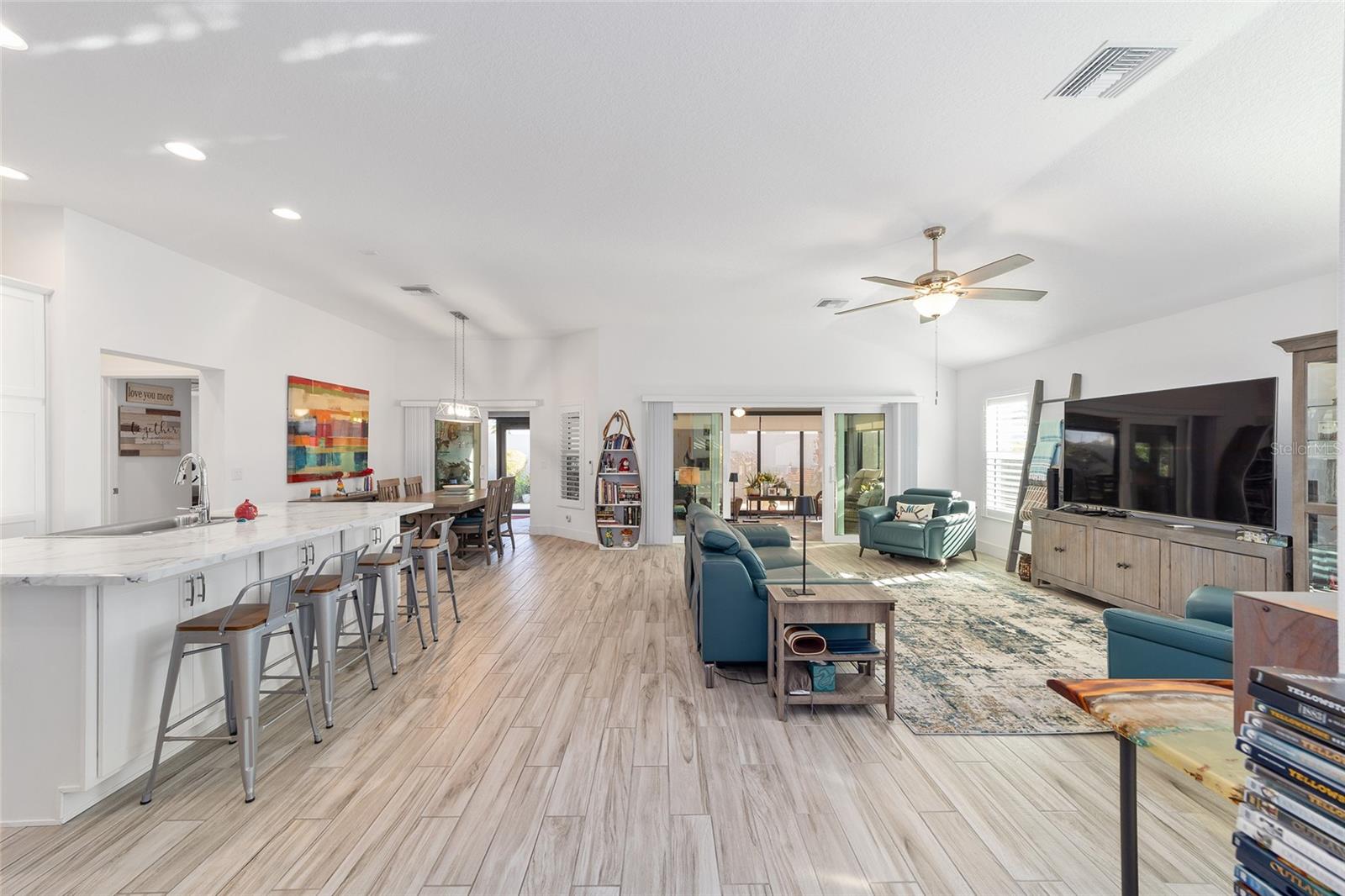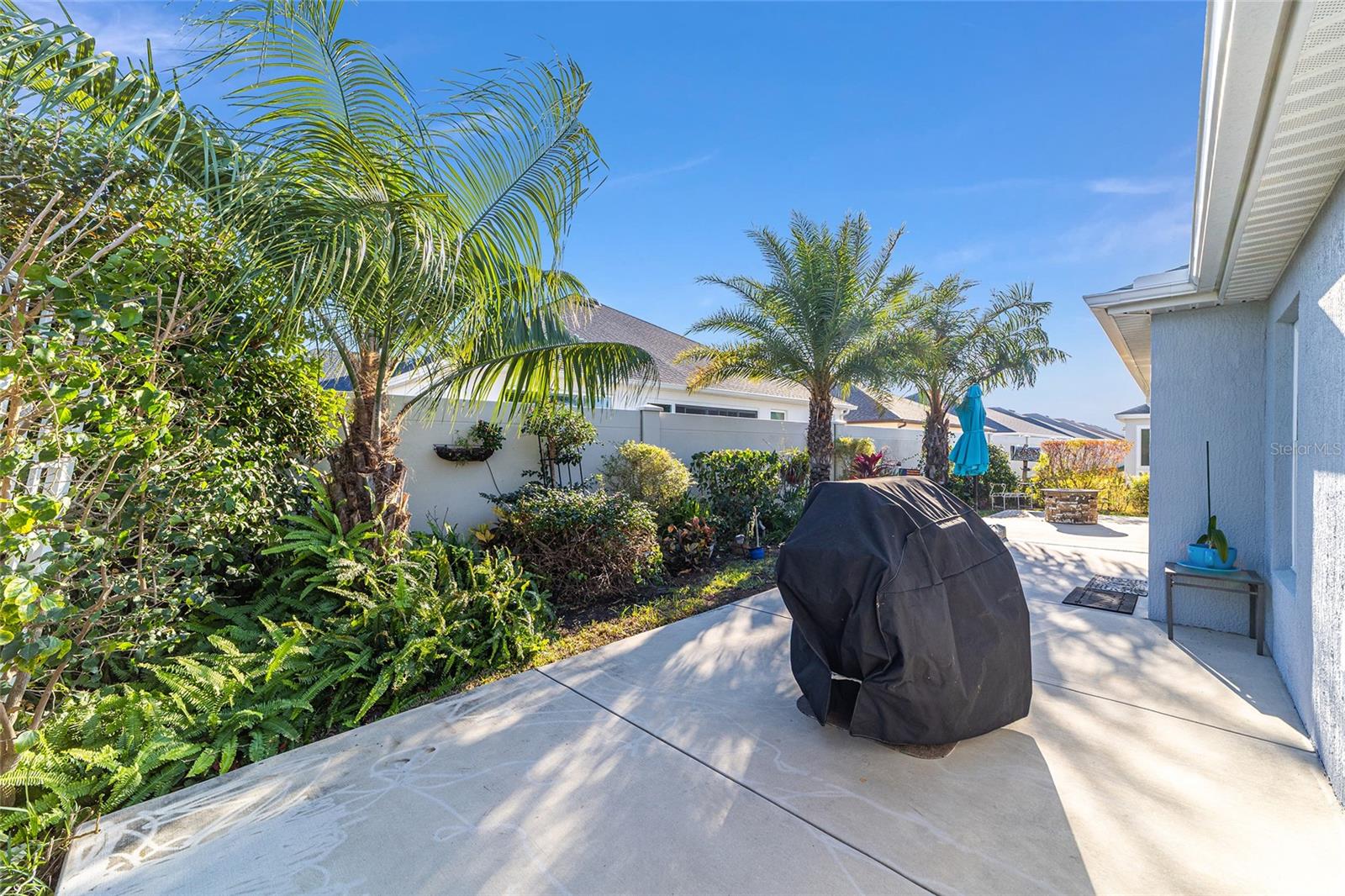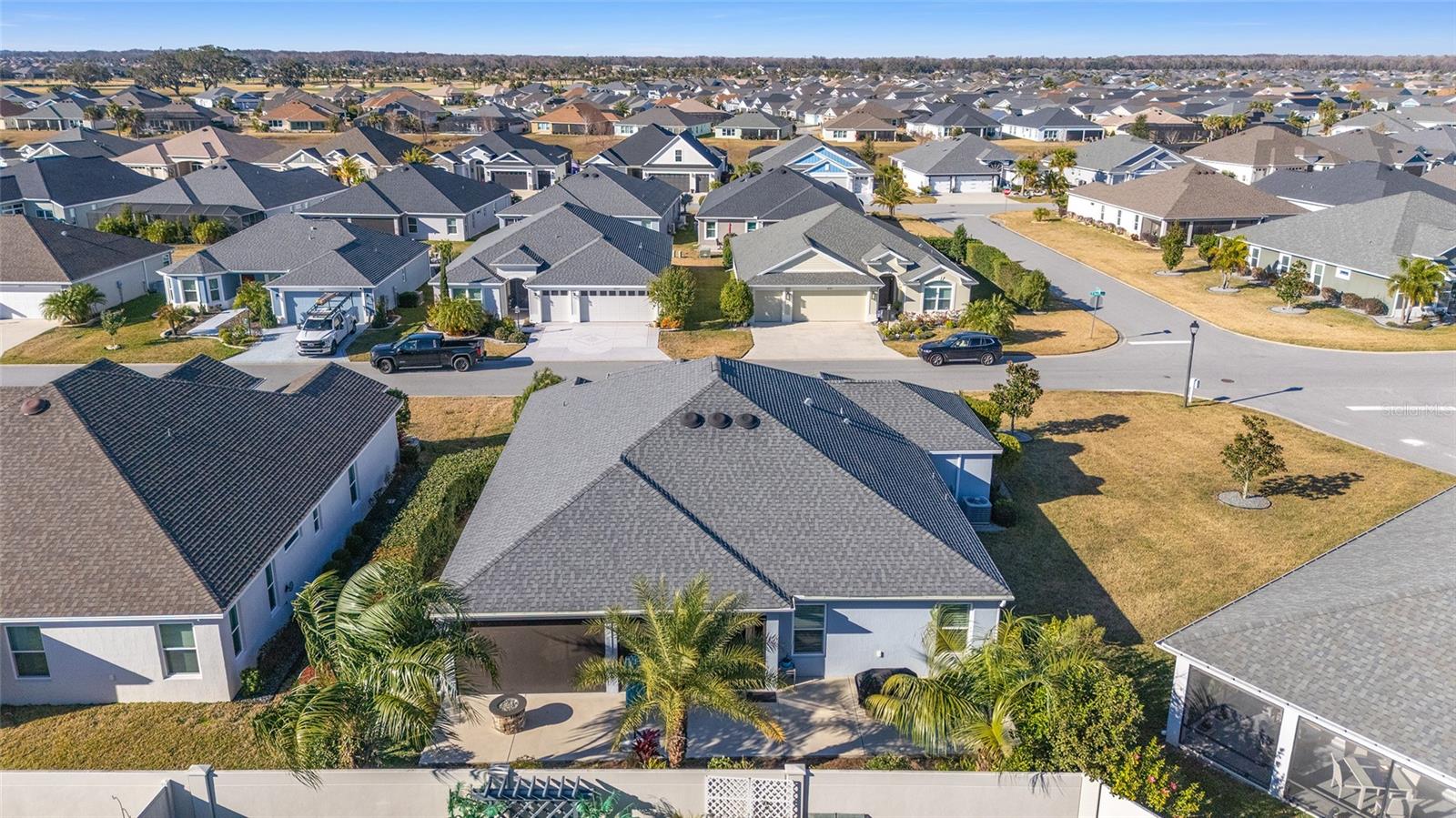 Beautiful move-in ready Designer home (Aspen) in the highly desirable Citrus Grove area, offering an OPEN-CONCEPT layout and a SPLIT-FLOOR PLAN with NO CARPET and ELEGANT PLANTATION SHUTTERS throughout. Enjoy added PRIVACY as the home backs to a wall, along with a spacious EXPANDED BACK PATIO and a GLASS-ENCLOSED LANAI with SLIDING GLASS WINDOWS, a MINI-SPLIT SYSTEM, and shades, making it ideal for comfortable, year-round relaxing or entertaining. The kitchen is a true highlight, featuring 42" CABINETRY, TILE BACKSPLASH, a LARGE CENTER ISLAND WITH STORAGE, STAINLESS STEEL APPLIANCES includes a GAS STOVE, and a stylish BUILT-IN WINE BAR—perfect for hosting. Additional upgrades include a WATER FILTRATION SYSTEM, GAS TANKLESS WATER HEATER, GUTTERS, PAINTED DRIVEWAY, WALKWAY and LANAI, and ENDHANCED LANDSCAPING. This home offers OVER $29,000 IN UPGRADES. The SPACIOUS GARAGE includes a GOLF CAR GARAGE and an ATTIC LIFT SYSTEM for easy attic storage access, providing EXCEPTIONAL STORAGE and convenience. Excellent location just minutes to recreation centers, pools, dog park, pickleball courts, restaurants, and Sawgrass Grove for nightly entertainment...and the soon to open new town square EASTPORT!