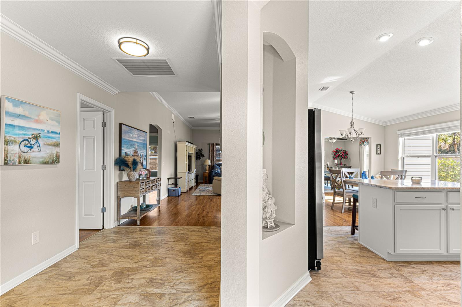 * NEW ROOF ON IT'S WAY * NEW HVAC 5/2023 *OVER 1800 SQUARE FT ! * LOW BOND BALANCE * CROWN * STONE COUNTERTOPS * 208 SQ FT ENCLOSED ADDITION * COMPLETE PRIVACY/ CORNER HOMESITE *FRONT & REAR SCREENED PATIO * OUTSTANDING LOCATION BEWEENT THE 466/466A * SAFE FOR PETS Nestled in the vibrant and world-renowned community of The Villages, Florida, this stunning Belmore Courtyard Villa offers a lifestyle of unparalleled luxury and endless possibilities. With 1,802 square feet of living space under air, this thoughtfully designed home has been enhanced with an expanded and enclosed lanai, seamlessly transformed into a formal dining area. Perfect for entertaining, this addition creates an open and inviting flow that is sure to impress guests and residents alike. Privacy and serenity are hallmarks of this villa, making it a true retreat within the dynamic Villages setting. The property’s premium upgrades elevate its charm and functionality including , mechanical screen garage door, murphy bed, built in office desk, solar tube, gleaming granite countertops, elegant crown molding, and custom paint that adds a touch of sophistication. Every detail has been meticulously chosen to enhance the aesthetic appeal and comfort of the home. Located in a prime spot, this villa offers both convenience and exclusivity. The Villages is famed for its unparalleled lifestyle, catering to a wide range of interests and activities. Whether you are drawn to its world-class golf courses, vibrant town squares, or an array of recreational and social opportunities, there is truly something for everyone. This Belmore Courtyard Villa is not just a home; it is an invitation to embrace a one-of-a-kind community and enjoy the Florida lifestyle at its finest. Don't miss the opportunity to make this exceptional property your own and start living the life you've always dreamed of. *BOND BALANCE ONLY $9,683 * YEARLY BOND PAYMENT $904 * YEARLY MAINTENANCE $399 * YEARLY FIRE ASSESS $320 - BUYERS AGENT TO VERIFY