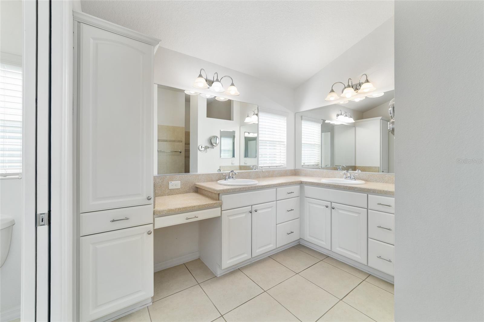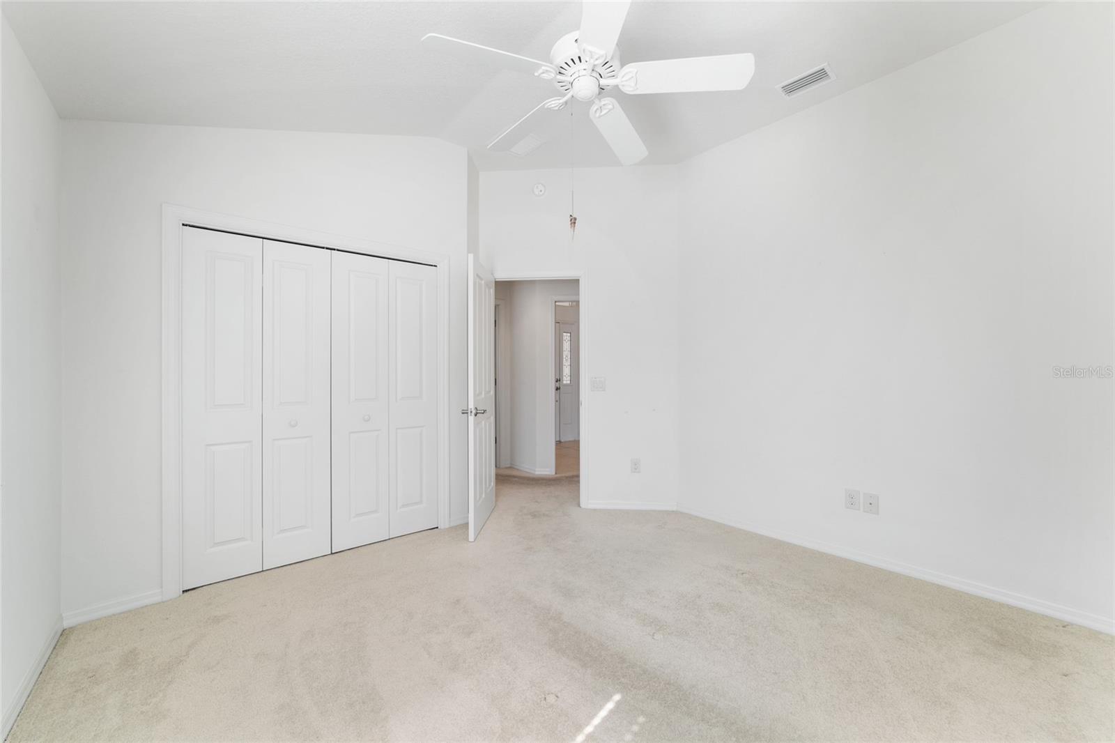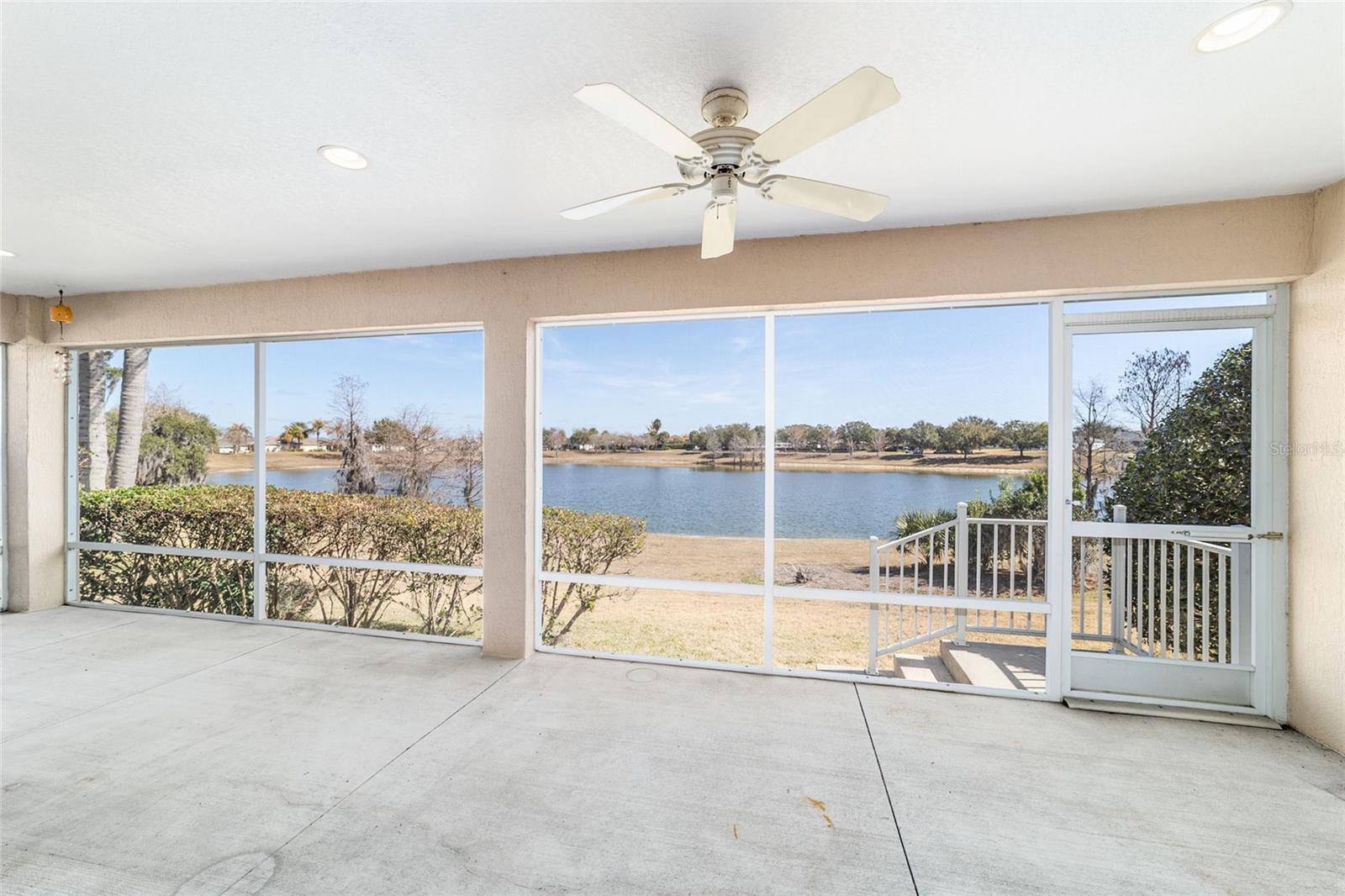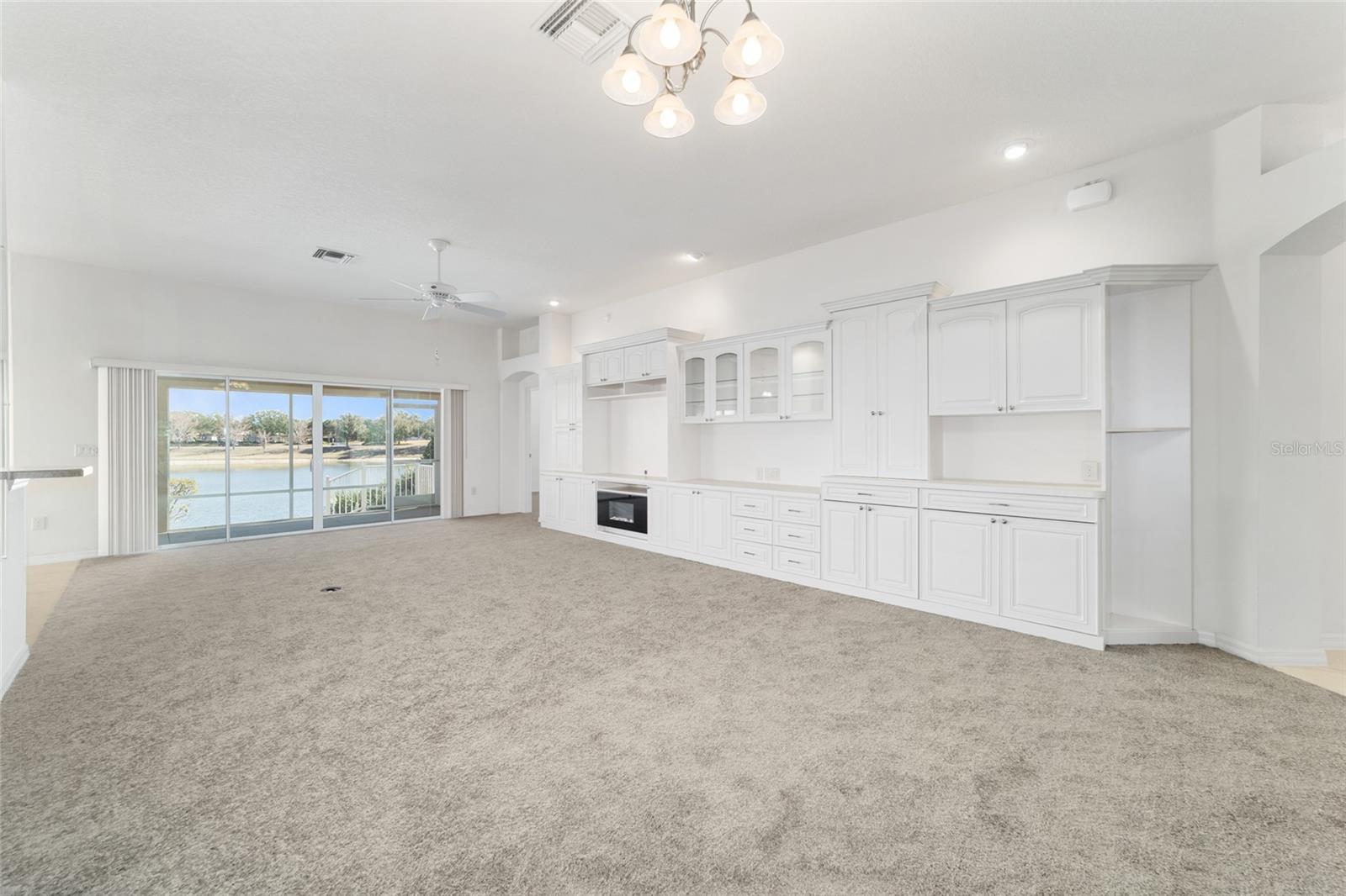 WATER VIEW and sought after LOCATION in the heart of The Villages! This designer Iris in the Village of Bonita offers 1965 living square feet with volume ceilings, generously sized bedrooms and a 2 CAR PLUS GOLF CART garage. Welcome in to a SHOW-STOPPING peaceful view of the pond out back. Home is WEST FACING giving you perfect morning sun on the screened lanai and cooler afternoons and evenings. This floor plan provides a large living/dining room that's open to the kitchen, both with sliders to the outdoors providing a LIGHT & BRIGHT feeling. Kitchen features WHITE cabinetry and appliances, NEUTRAL countertops and a closet pantry. Wake up to that VIEW again in the primary bedroom offering tray ceiling, an ensuite bath with tiled Roman shower, dual sink vanity and a CUSTOM walk-in closet you will LOVE! Two roomy additional bedrooms, linen closet and convenient bath are located behind a pocket door for guest privacy. The laundry room includes washer/dryer, utility sink, cabinetry and a BONUS AREA with room for a desk/office (or make it a walk-in pantry). Shelving in the garage for all your needs yet plenty of room for all your toys! Multiple close by opportunities to visit the community pools, recreation facilities and golf courses. Shopping, restaurants and medical offices are very convenient to this home's location btwn 466 and 466A. ROOF and HVAC are original HWH 2018