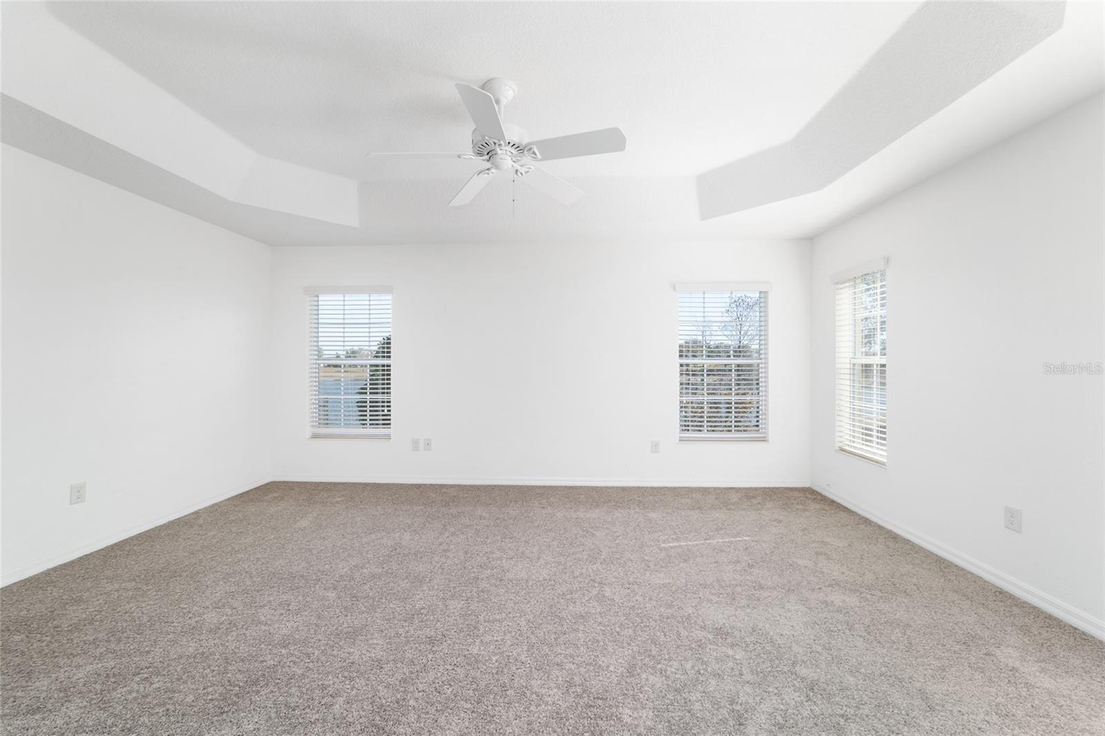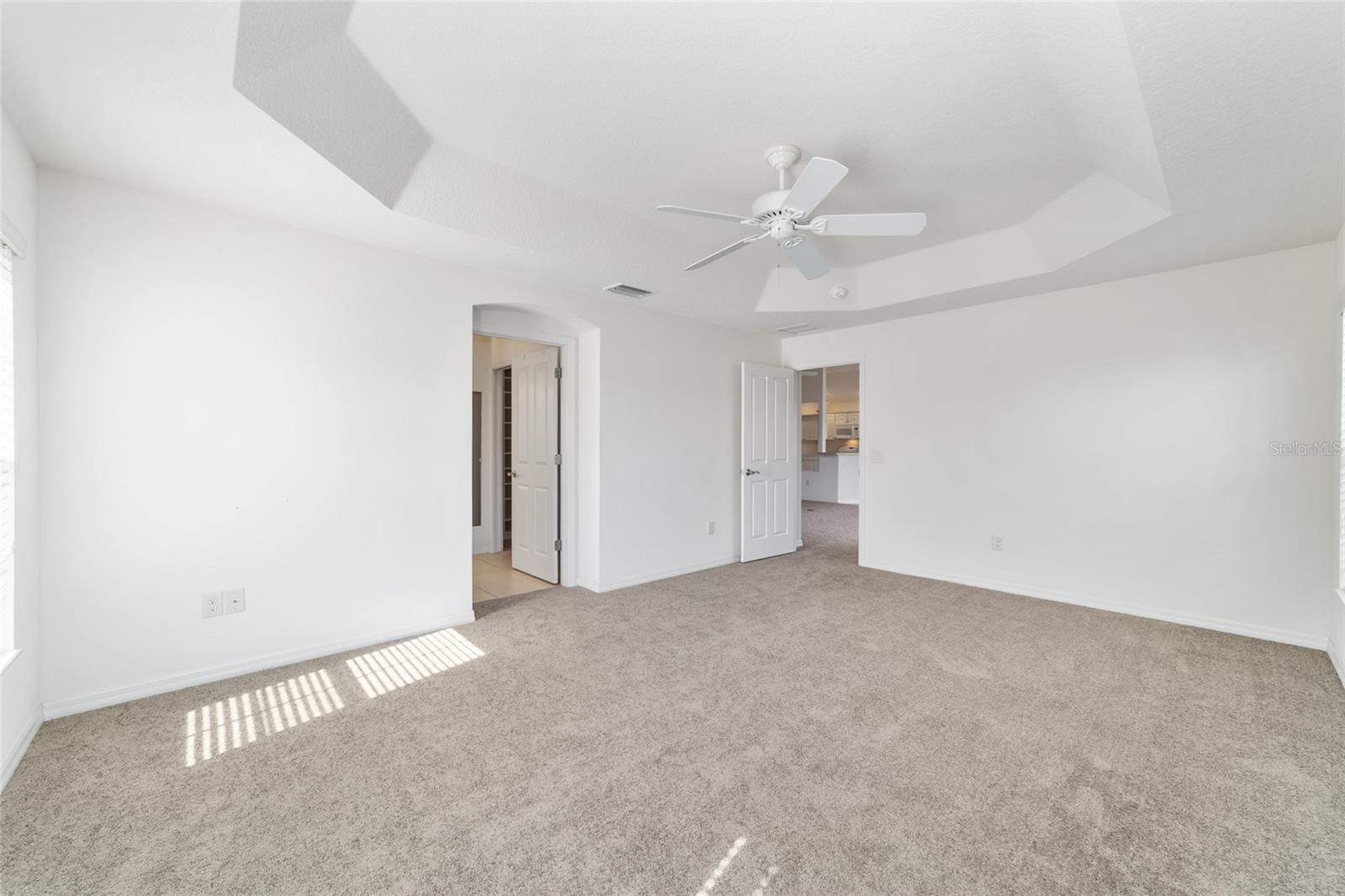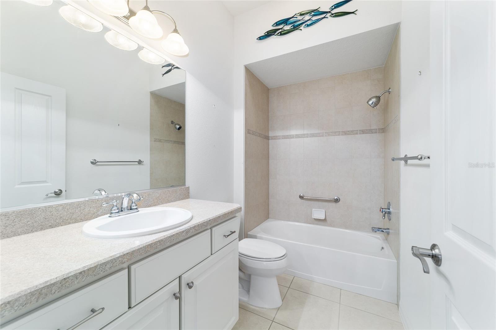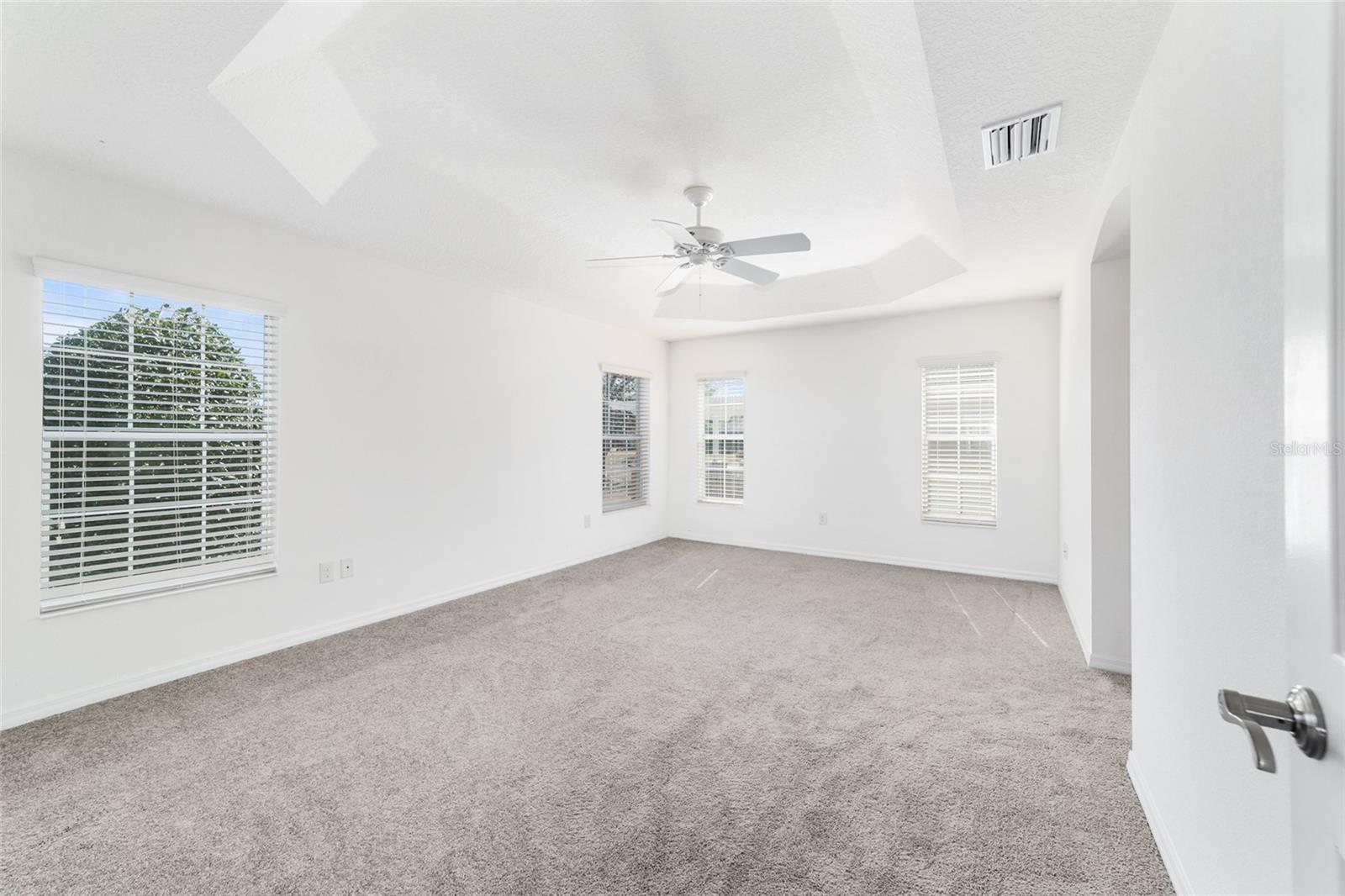 WATER VIEW and sought after LOCATION in the heart of The Villages! This designer Iris in the Village of Bonita offers 1965 living square feet with volume ceilings, generously sized bedrooms and a 2 CAR PLUS GOLF CART garage. Welcome in to a SHOW-STOPPING peaceful view of the pond out back. Home is WEST FACING giving you perfect morning sun on the screened lanai and cooler afternoons and evenings. This floor plan provides a large living/dining room that's open to the kitchen, both with sliders to the outdoors providing a LIGHT & BRIGHT feeling. Kitchen features WHITE cabinetry and appliances, NEUTRAL countertops and a closet pantry. Wake up to that VIEW again in the primary bedroom offering tray ceiling, an ensuite bath with tiled Roman shower, dual sink vanity and a CUSTOM walk-in closet you will LOVE! Two roomy additional bedrooms, linen closet and convenient bath are located behind a pocket door for guest privacy. The laundry room includes washer/dryer, utility sink, cabinetry and a BONUS AREA with room for a desk/office (or make it a walk-in pantry). Shelving in the garage for all your needs yet plenty of room for all your toys! Multiple close by opportunities to visit the community pools, recreation facilities and golf courses. Shopping, restaurants and medical offices are very convenient to this home's location btwn 466 and 466A. ROOF and HVAC are original HWH 2018