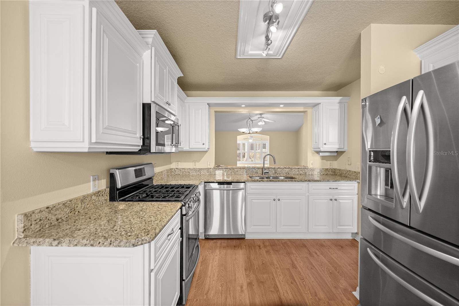 Welcome to this lovely move in ready home in Polo Ridge of the Villages. Features 3 bedrooms, 2 baths, 2 car garage and 1662 living sq ft. Roof replaced in 2019 with Owens Corning Duration Shingles. Great curb appeal greets you. An open floor plan with split bedrooms and laminate flooring throughout as well as plantation shutters. Updated eat in kitchen with granite countertops and gas oven. Natural gas powers the oven, heat and water heater. Laundry room opens to both the garage and primary walk in closet for convenience. Enclosed Florida room on the back with a screened lanai off of it. Gated community with garbage included with dues. Enjoy the endless nearby amenities offered. Activities include polo fields, softball, pickleball, tennis, pools, rec center and fitness. Take a look at this lovely next chapter!